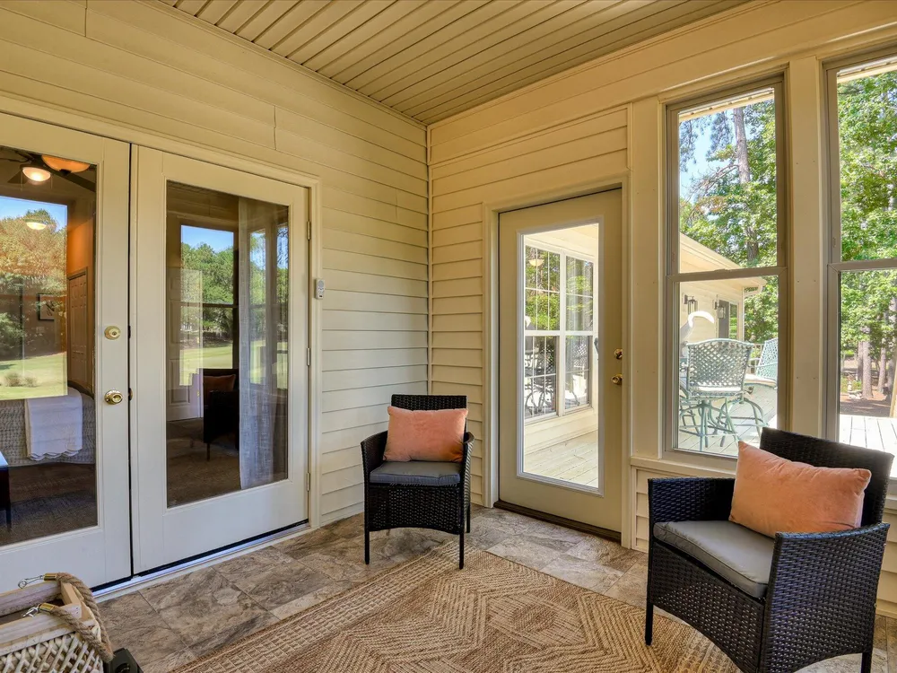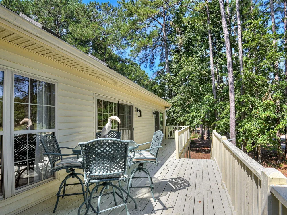 Move right into this turnkey home, offering exceptional convenience with most furnishings included. Simply turn the key and start living in your ready-to-go home. Don't miss out seeing this beautiful 3 bedroom, 2 bath golf course home in the desirable Magnolia Community in Savannah Lakes Village. It is situated on a .32 acre lot with spectacular views of the 13th hole on Tara Golf Course. You enter the home on shiny wood floors which lead into a large living and dining area with vaulted ceilings and skylights which allows for an abundance of natural light. The kitchen is very spacious with abundant cabinet space and a sizable adjacent pantry. The master suite is large with a walk in closet and an attached en-suite bathroom with a custom tile shower and a Jacuzzi tub. Off the master bedroom you enter a well lighted three season room again with incredible views of the golf course and natural wooded area. From the 3 seasons room you enter a large 320 sq. ft deck, both overlooking the golf course. The two guest bedrooms are spacious with large closet space and one of the bedrooms has a six foot slider which leads to the back deck. There is ample storage under the house as it contains a walk in crawl space. The garage is extra deep which easily fits a pick-up truck. Upgrades include a new HVAC system heat pump and a new roof installed in 2017.