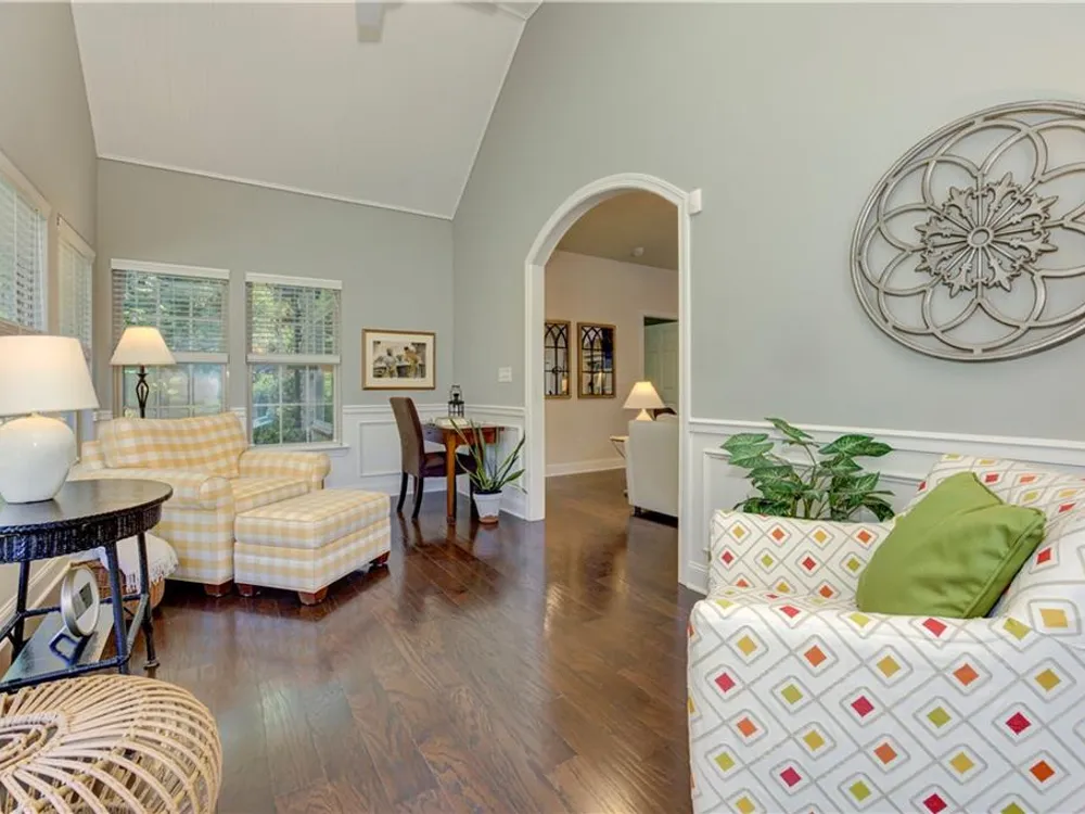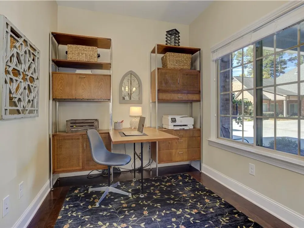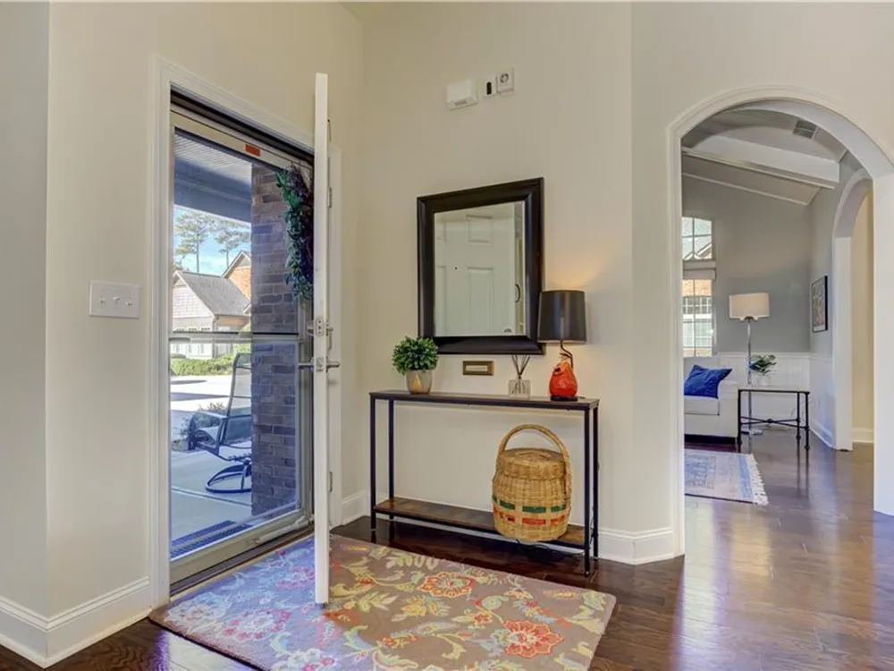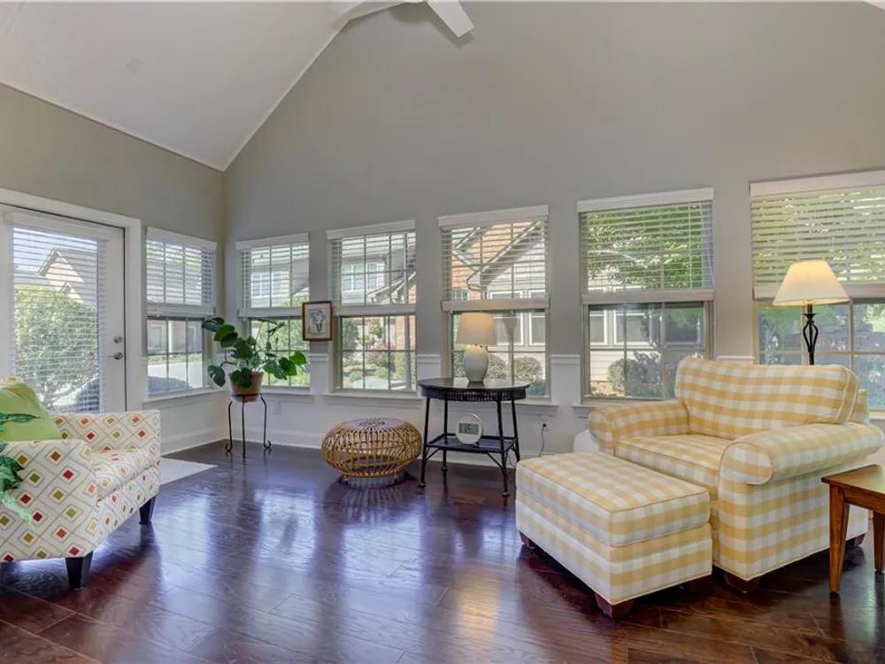 Classy and distinctive yet youthful with a touch of sassy perfectly describes this singular condo offering in the Brookhaven of East Cobb active adult community (55+). Located in the youngest building phase of Brookhaven, this sparkling residence offers discerning buyers a premium lot location, backing a wide expanse of trees, away from the bustle of the main thoroughfares. Enhanced finishes include hardwood floors throughout the main level, soft ivory kitchen cabinetry, fully tiled baths, and additional square footage with the integration of the original porch area into finished living space. This sought after ‘Super Master’ model is noted for its expansive primary bath including an oversized shower with dual shower heads and bench seating, as well as an impressive walk-in closet offering built-in drawers and shelving. A second bedroom with nearby full bath (tub/shower) offers additional private space for family and friends. Many universal design features are incorporated in this floor plan, including lever handle door hardware, wider doorways, and gently flowing transitions from room to room in the main level living areas. This timeless layout is enhanced with the additional space on the 2nd level, humorously called the FROG (Finished Room Over the Garage). It’s a perfect ‘at home’ getaway, a memorable guest suite, or a bonus space for indulging in hobbies or workouts. A third full bath (with shower) and expanded storage closet rounds out the amenities on this level. The vibrant Brookhaven of East Cobb community is anchored around the activities hosted in the stunning clubhouse and adjoining saltwater heated pool. Meet your neighbors for regular games of Mahjong, Hand & Foot, bridge, poker, Game Night, wine tasting, Romeo and Juliet luncheons for gents and ladies, seasonal celebrations including monthly birthday parties, and a host of additional social gatherings. The Clubhouse also houses a workout room and a ‘share a book’ library. Brookhaven of East Cobb offers superb access to 575 and 75, as well a multitude of shopping and restaurant venues in the Kennesaw/Marietta corridor. A refreshing and enlivening new lifestyle awaits you in this distinctive residence and community.