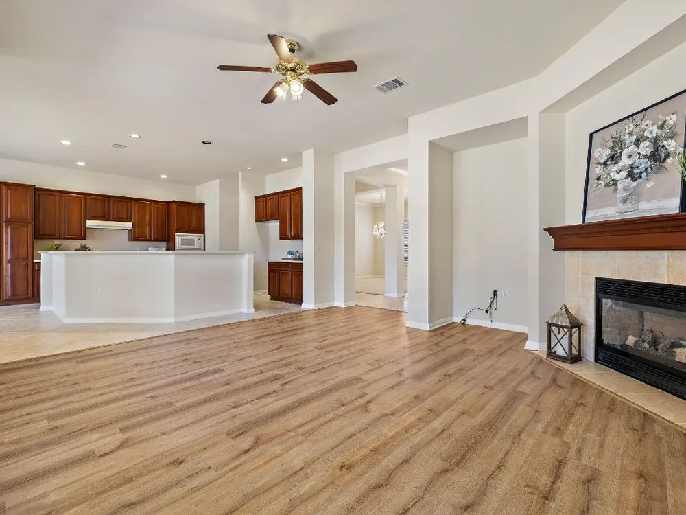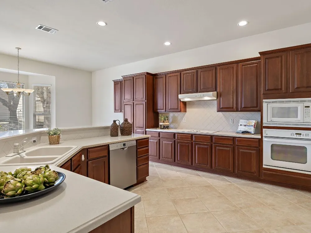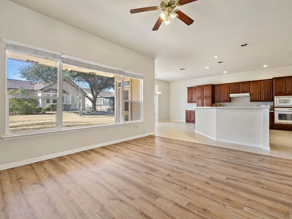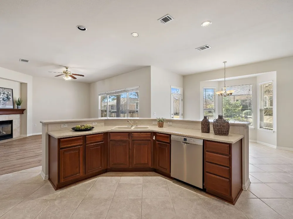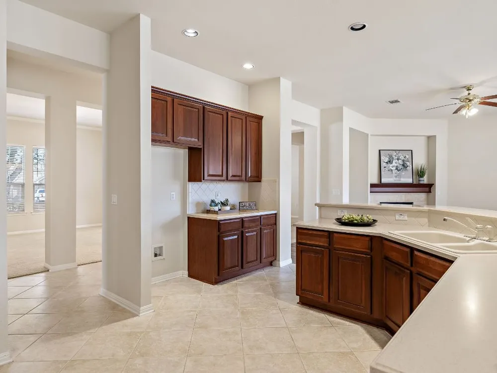 Fantastic and move-in ready, this charming home in Sun City offers a spacious open floorplan with high ceilings, a vaulted living room, and an abundance of natural light. The kitchen seamlessly opens to the living area, creating an inviting space for entertaining or relaxing. The oversized master suite provides a private retreat, while the covered patio allows for peaceful outdoor enjoyment in this quiet and well-established community. Located in Georgetown, this home is perfect for those looking to enjoy the comfort and convenience of Sun City living. Ready for your updates, it’s a wonderful opportunity to make it your own!