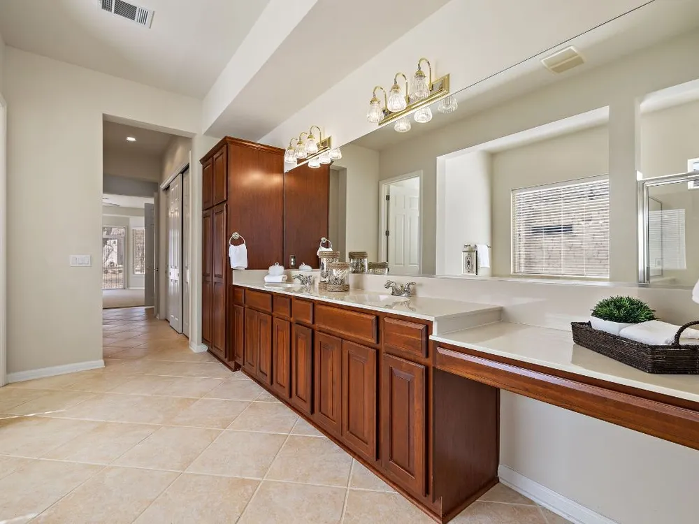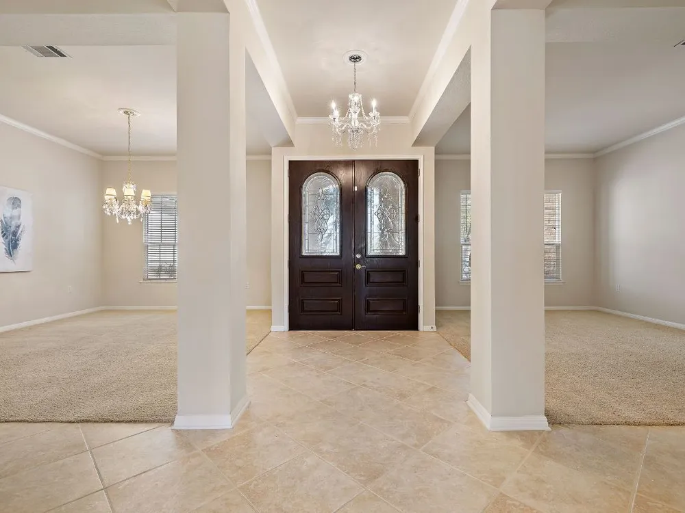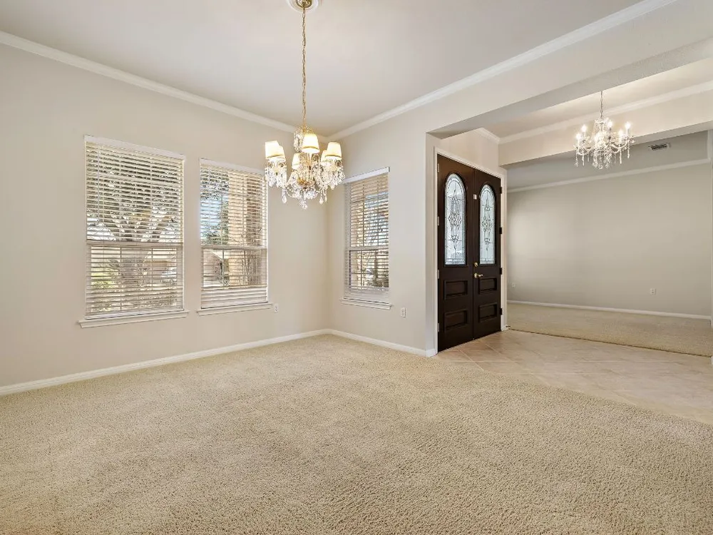 - Breakfast Bar, Ceiling Fan(s), Chandelier, Crown Molding, Double Vanity, Eat-in Kitchen, French Door(s)/Atrium Door(s), Main Level Primary, Open Floorplan, Recessed Lighting, Walk-In Closet(s)