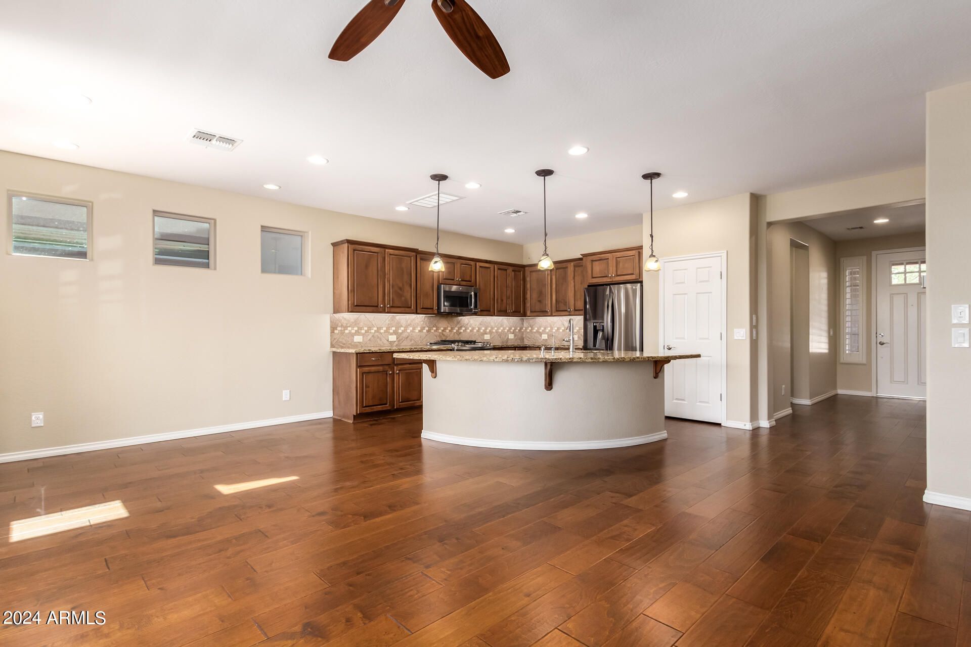 Motivated Seller! Seller offering to pay one full year of HOA dues at closing with acceptable offer. Seller Financing!! Welcome to your dream home in the resort-style community of Encanterra! This beautifully upgraded residence offers both comfort and elegance, with thoughtfully designed spaces and upscale finishes throughout.The gourmet kitchen is a true showstopper, featuring rich cabinetry with brushed nickel hardware, upgraded granite countertops, a stylish tile backsplash, and stainless-steel appliances--including a gas slide-in range, microwave, and refrigerator. You'll also find under-cabinet lighting, pendant lights over the island, and a walk-in pantry for extra storage. The open-concept great room flows seamlessly into the kitchen and dining area, creating the perfect space for entertaining or relaxing. The spacious primary suite offers a walk-in closet and a luxurious en-suite bath with a granite double vanity, nickel fixtures, an oversized tile walk-in shower, and a private water closet. A secondary bedroom and full bathroom are located at the front of the home, ideal for guests or a home office setup. The laundry room is fully equipped with upper cabinets, washer, and dryer. The garage is just as impressive, featuring a durable epoxy floor, a convenient side yard door, soft water system, and overhead storage racks. Step outside to your private backyard oasis with a covered patio, extended paver patio, and mature landscaping perfect for outdoor dining and enjoying Arizona's beautiful weather. Additional upgrades include plantation shutters, engineered wooden flooring, and gutters for added convenience and curb appeal. Living in Encanterra means enjoying world-class amenities, including a championship golf course, a 60,000 sq. ft. clubhouse with fine dining, fitness center, tennis and pickleball courts, multiple resort-style pools, a full-service spa, and a state-of-the-art athletic club. This home offers the perfect blend of luxury, lifestyle, and location don't miss your chance to make it yours!
