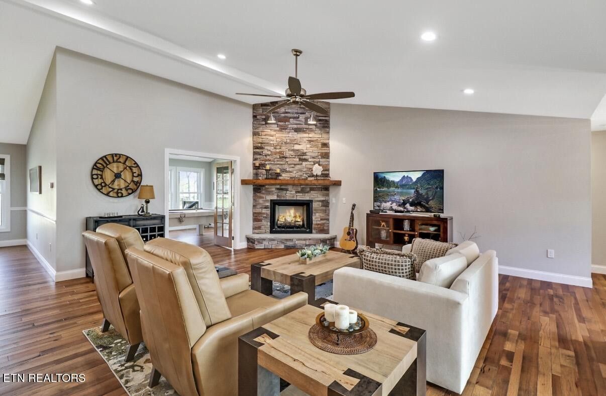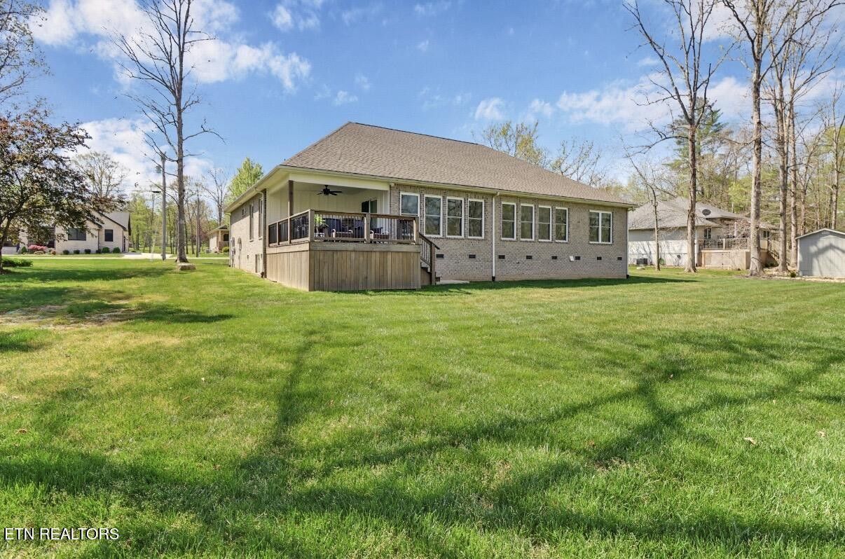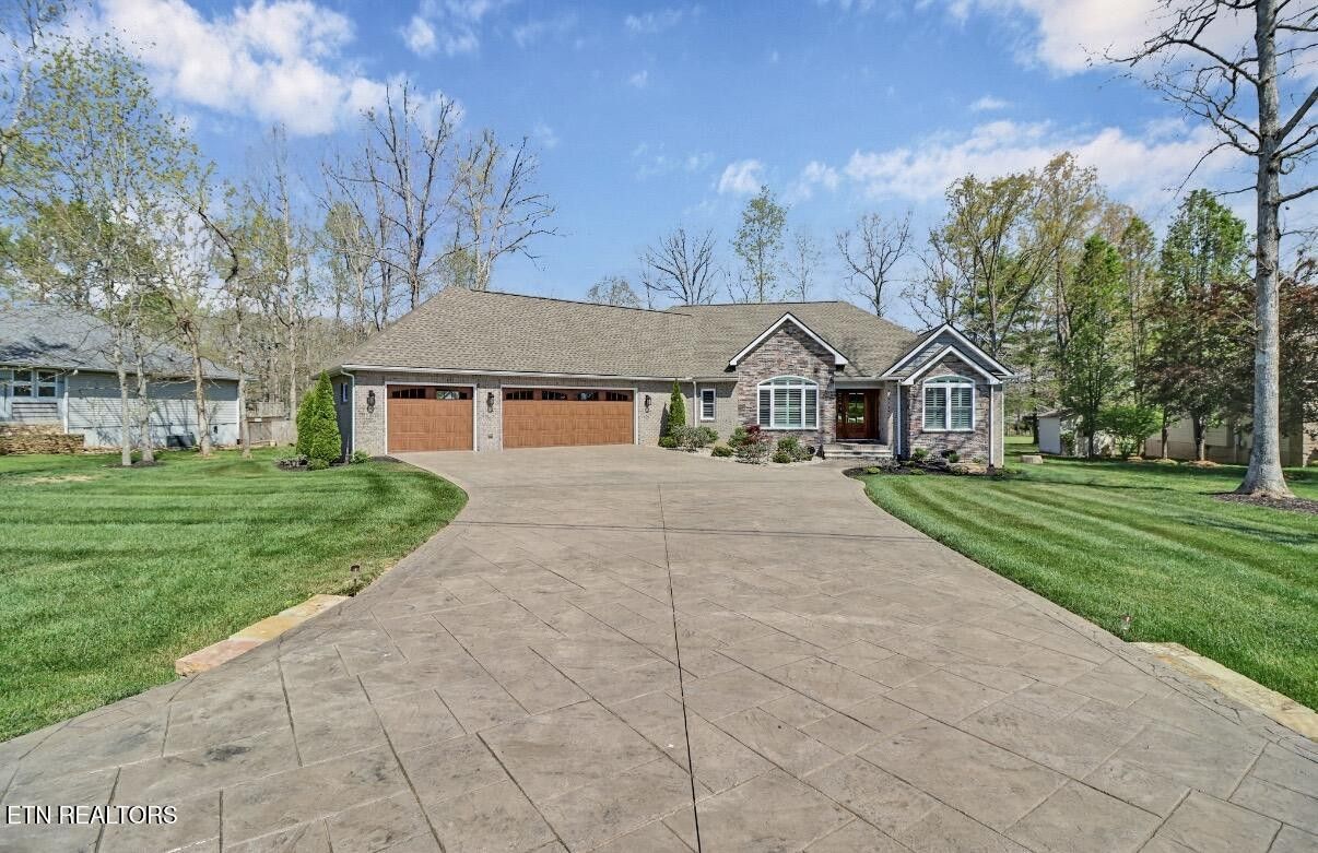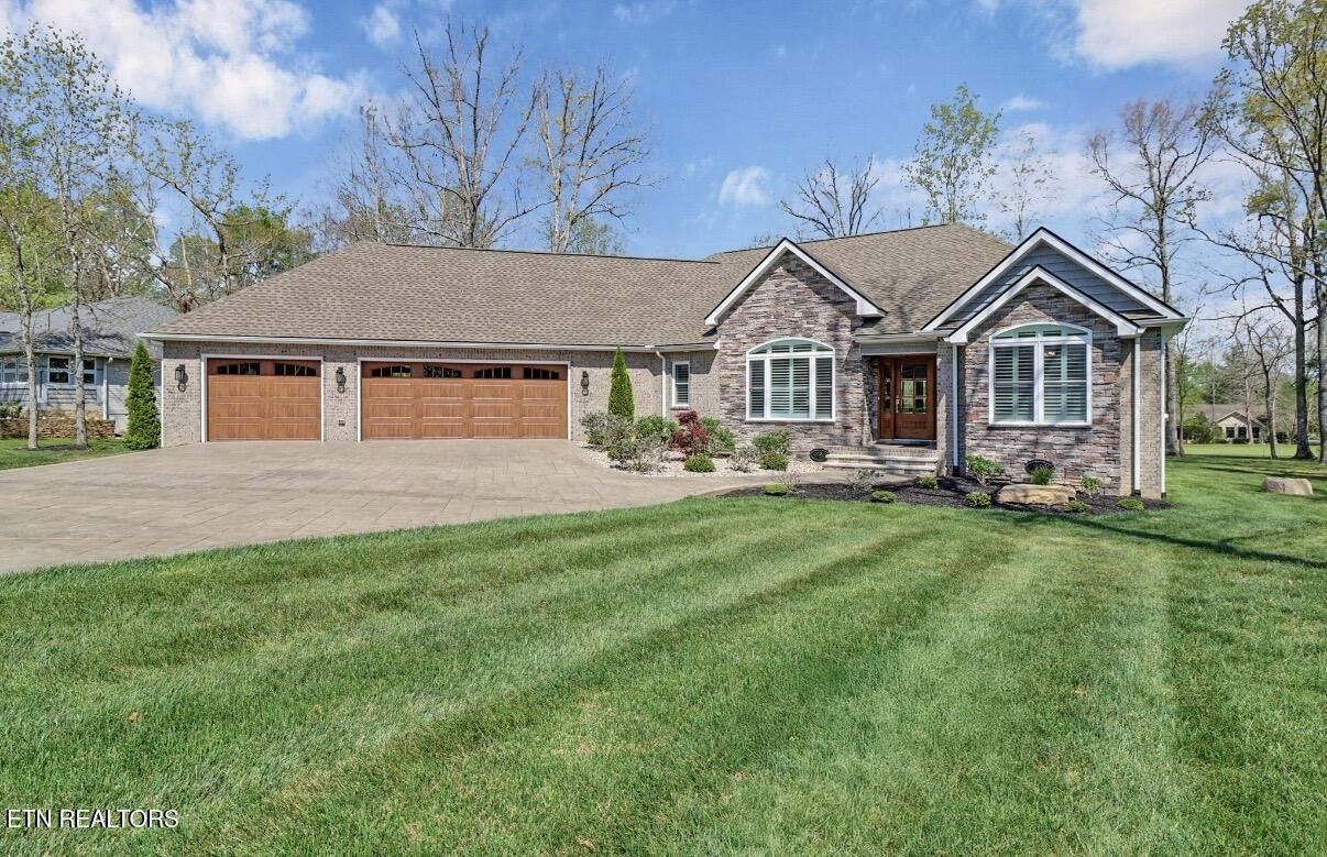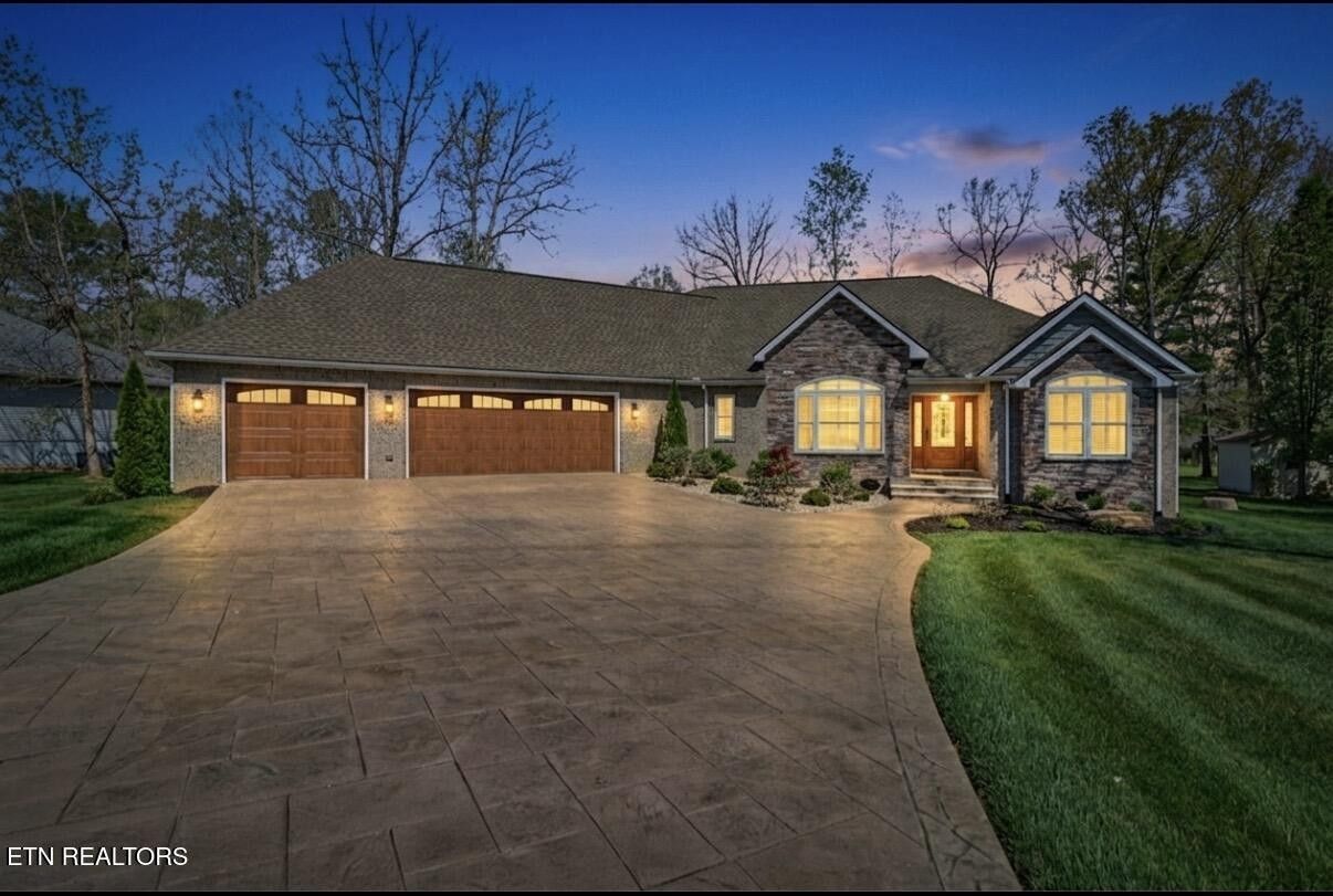 Impressive 3-Car Garage Home on Golf Course in Fairfield Glade! Located on 0.48 acres with beautiful views of the Heatherhurst Golf Course, this 2,465 sq. ft. home offers convenient all-main-level living. The spacious floor plan features 3 bedrooms, 2 full bathrooms, a half bathroom, plus an office and a sunroom. A standout feature is the 3-car garage, offering ample storage and parking space, with plenty of room for a workshop or additional projects. Inside, the home boasts a large, open-concept kitchen with quartz countertops, a generous island, a walk-in pantry, and hardwood oak floors throughout the main living areas. Enjoy the expansive golf course views throughout the home. The primary suite is a retreat with a tray ceiling, a large walk-in closet with his-and-her sides, and an ensuite bath with quartz finishes. Additional features include wide doorways, a drop zone bench near the garage entry, and a laundry room with convenient access from the master closet. The home's level driveway and only three small steps into the home ensure easy access. Outside, relax on the covered porch with a ceiling fan, or unwind on the spacious deck overlooking the course. The stamped concrete driveway and walkway add a touch of elegance to the exterior. This home combines modern comfort and serene golf course views in the desirable Fairfield Glade community. With its thoughtful design, ample storage, and prime location, it offers the perfect blend of relaxation and luxury. Make this dream home yours today!