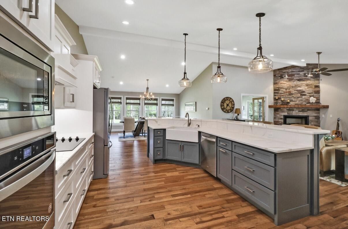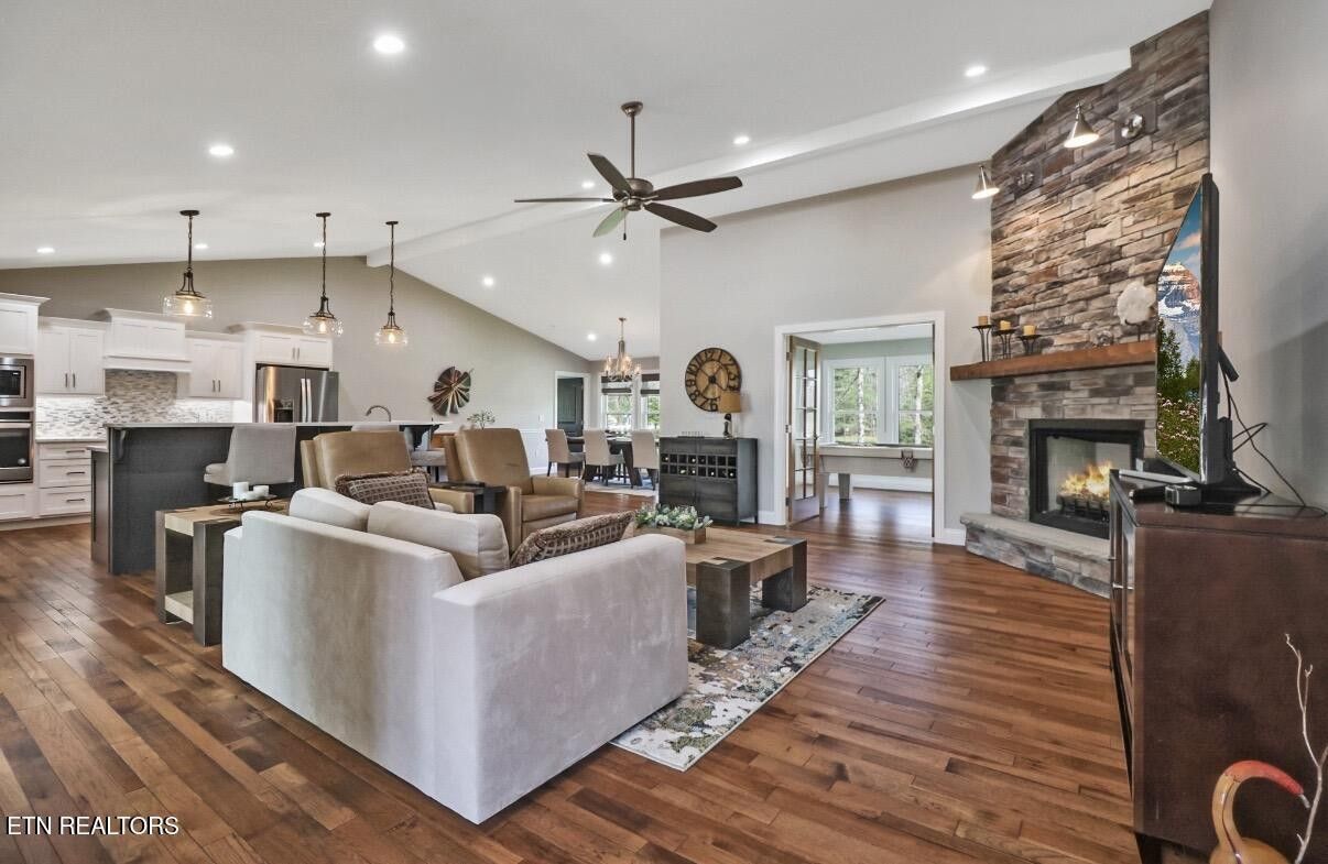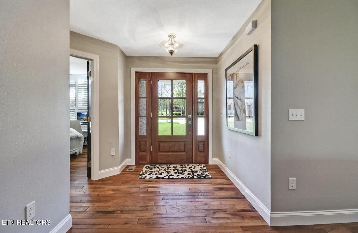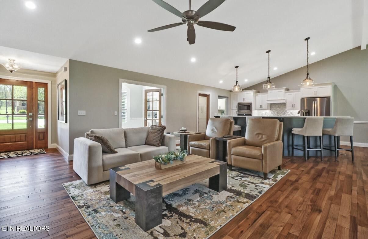 Impressive 3-Car Garage Home on Golf Course in Fairfield Glade! Located on 0.48 acres with beautiful views of the Heatherhurst Golf Course, this 2,465 sq. ft. home offers convenient all-main-level living. The spacious floor plan features 3 bedrooms, 2 full bathrooms, a half bathroom, plus an office and a sunroom. A standout feature is the 3-car garage, offering ample storage and parking space, with plenty of room for a workshop or additional projects. Inside, the home boasts a large, open-concept kitchen with quartz countertops, a generous island, a walk-in pantry, and hardwood oak floors throughout the main living areas. Enjoy the expansive golf course views throughout the home. The primary suite is a retreat with a tray ceiling, a large walk-in closet with his-and-her sides, and an ensuite bath with quartz finishes. Additional features include wide doorways, a drop zone bench near the garage entry, and a laundry room with convenient access from the master closet. The home's level driveway and only three small steps into the home ensure easy access. Outside, relax on the covered porch with a ceiling fan, or unwind on the spacious deck overlooking the course. The stamped concrete driveway and walkway add a touch of elegance to the exterior. This home combines modern comfort and serene golf course views in the desirable Fairfield Glade community. With its thoughtful design, ample storage, and prime location, it offers the perfect blend of relaxation and luxury. Make this dream home yours today!