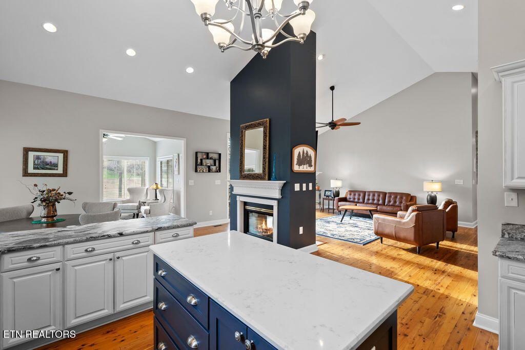 Elevated Golf Front Living on Toqua's 11th Fairway Set along the 11th fairway of Toqua Golf Course, this beautifully updated home offers a rare blend of refined design, peaceful surroundings, and effortless indoor-outdoor living. Tucked away on a quiet street, the home welcomes you with soaring ceilings, expansive windows, and a light-filled open layout designed for both everyday comfort and exceptional entertaining. At the center of the home, the thoughtfully designed kitchen pairs style and function with striking two-tone cabinetry, leathered quartz countertops, and a spacious island for additional prep space. A bright breakfast nook and inviting sunroom provide the ideal backdrop for morning coffee or unwinding at the end of the day--all framed by sweeping golf course views. The main living area is both impressive and inviting, anchored by a dramatic double-sided fireplace and a wall of windows that brings the outdoors in. A dedicated dining space offers an elegant setting for hosting. The main-level primary suite is a true retreat, featuring rich wood flooring, a trey ceiling, and a bay window overlooking the fairway. Dual walk-in closets provide ample storage, while the spa-inspired bath showcases separate vanities, quartz surfaces, an oversized tiled walk-in shower, and a private water closet. The walkout lower level is perfectly suited for guests, or multi-generational living, offering two spacious bedrooms--each with its own full bath--along with a comfortable living area and wet bar. Glass French door leads to a covered patio and direct access to the backyard and golf course, creating a seamless extension of the living space. Additional highlights include generous walk-in storage, a dedicated golf cart garage, and workshop space--ideal for both hobbies and convenience. Located in Tellico Village, residents enjoy an unmatched lifestyle with three championship golf courses, a state-of-the-art Wellness Center, Yacht Club, marinas, dining, private beach access, and a vibrant social scene with over 200 clubs and activities. This is more than a home--it's a lifestyle. Schedule your private showing today.