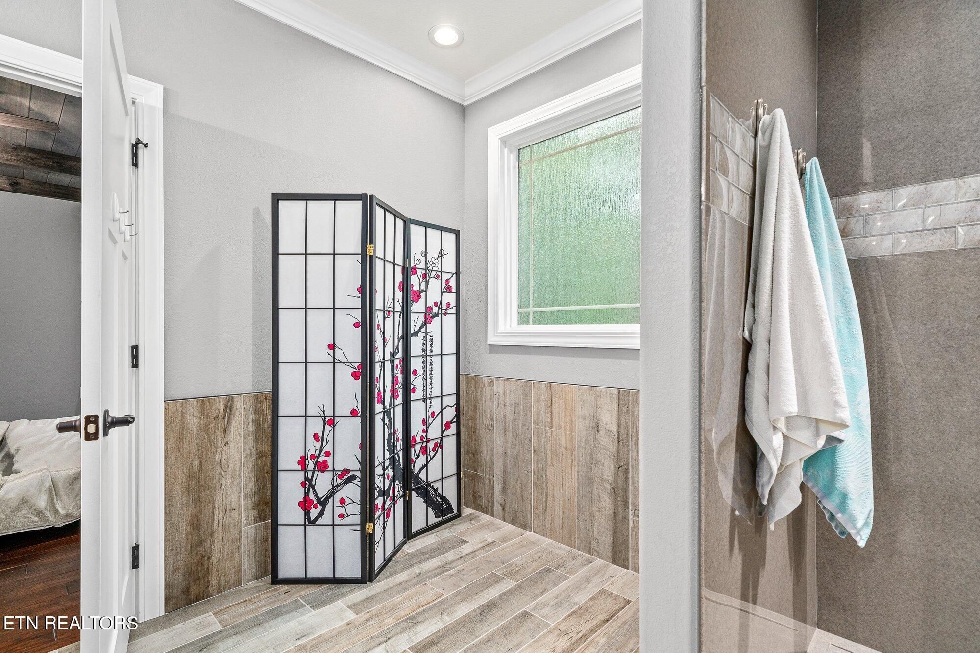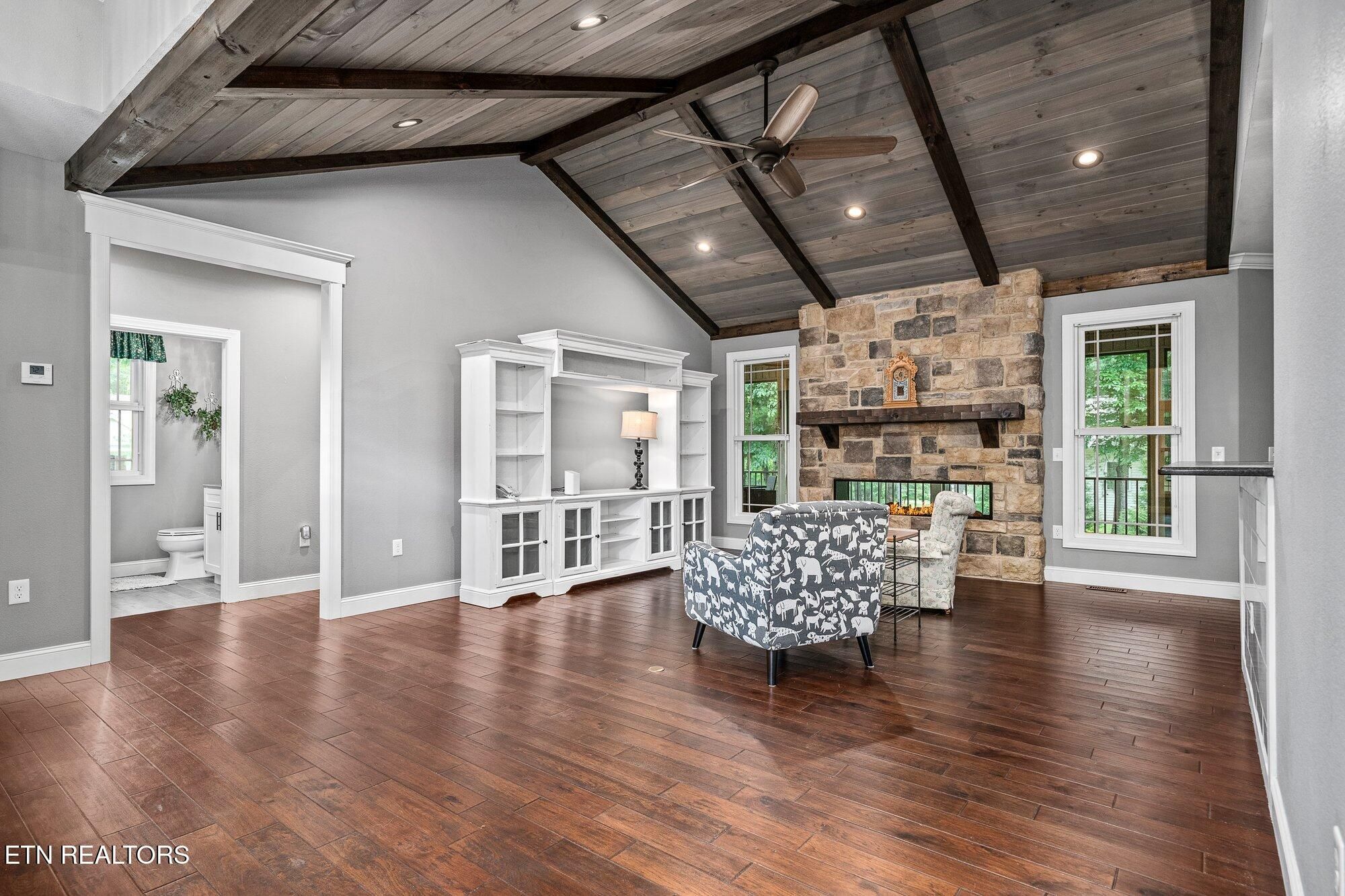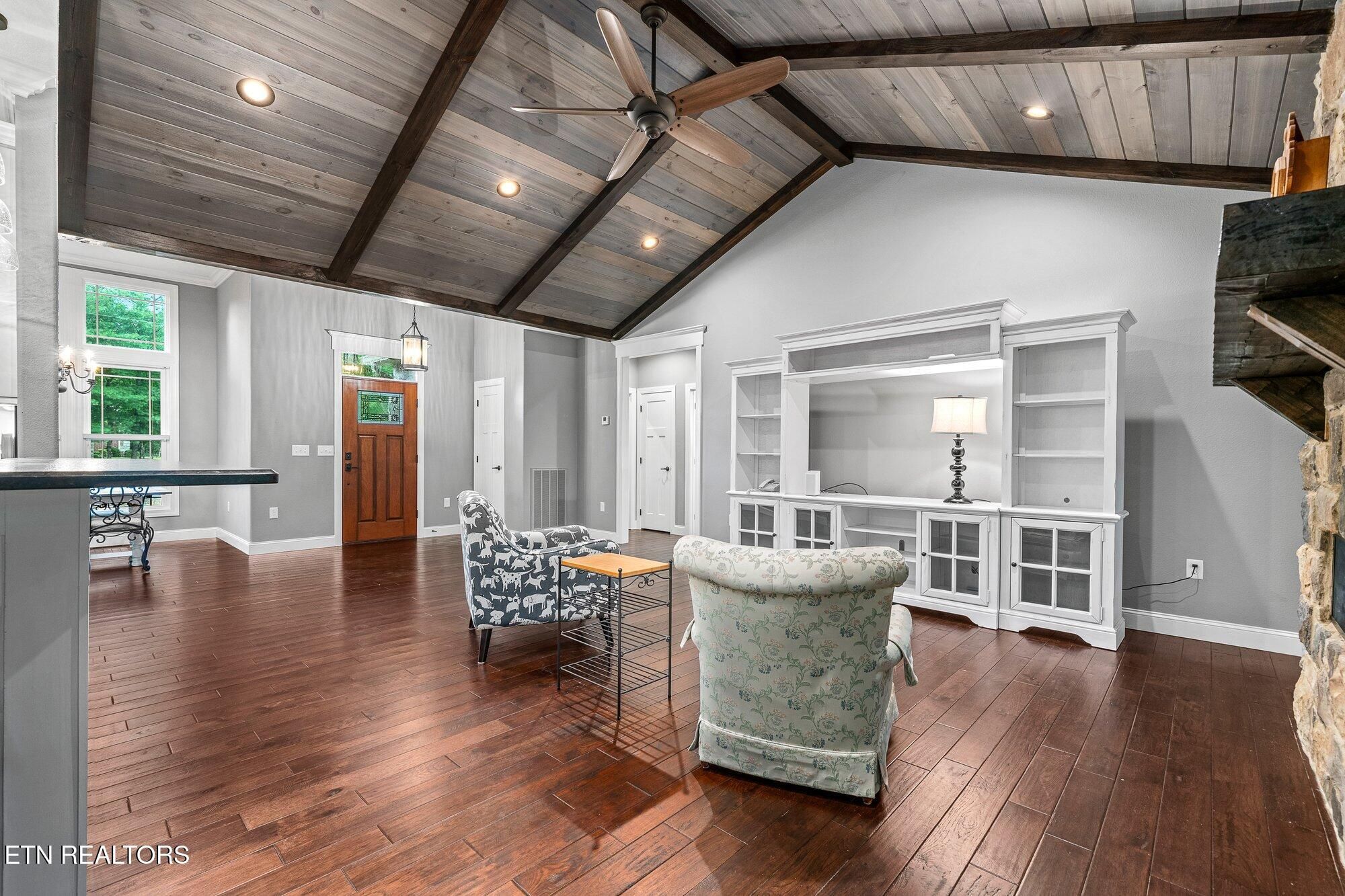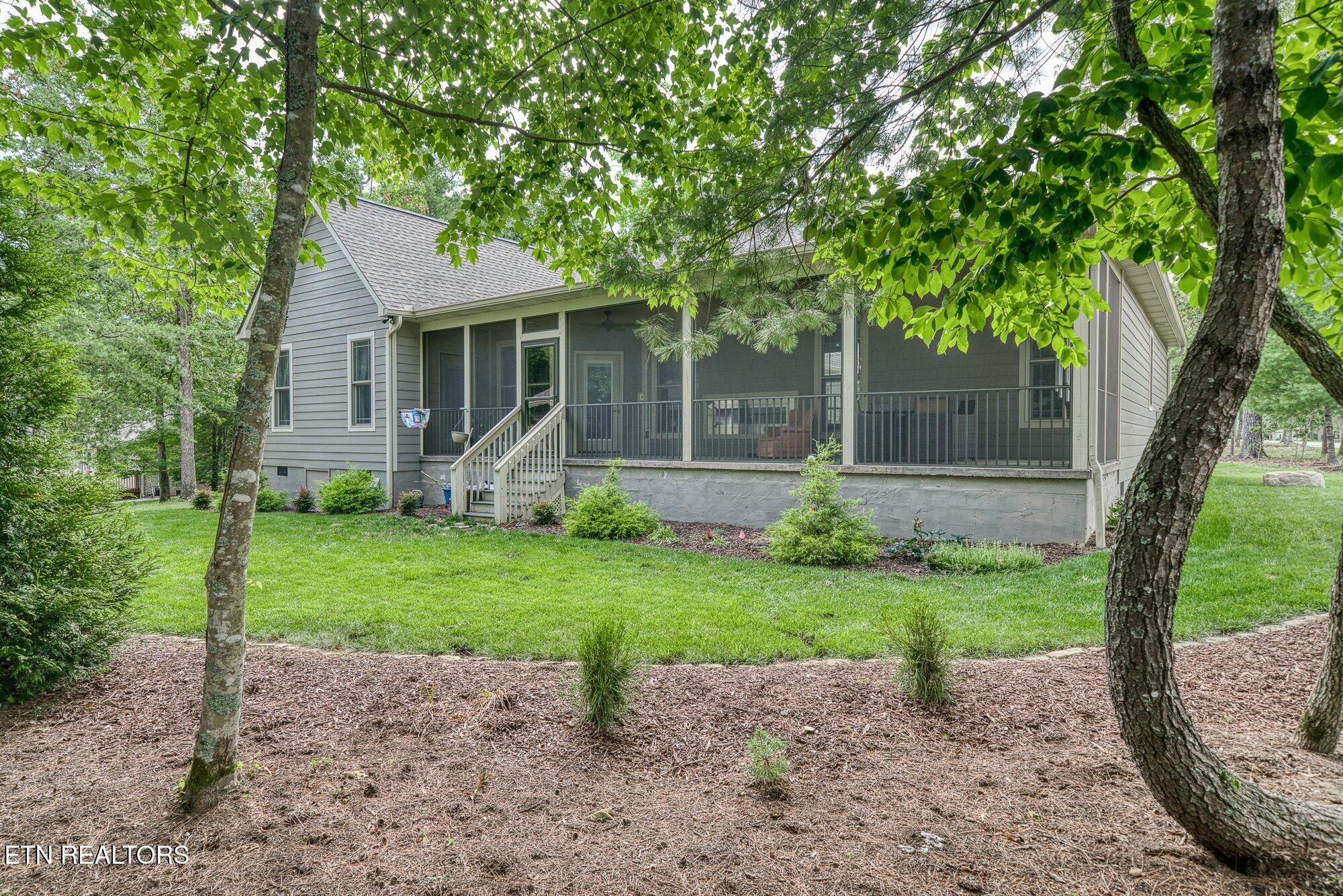 Modern Comfort Meets Mountain Elegance! Discover the perfect blend of craftsmanship and comfort in this beautifully designed 3-bedroom, 2.5-bath home located in the sought-after Fairfield Glade community. Built in 2020 with over 2,400 sq. ft., this home is packed with upscale features and thoughtful upgrades to suit today's lifestyle. From the moment you enter, you'll be captivated by the dramatic cathedral ceiling with stained wood planks and timber beams, framing a stunning floor-to-ceiling native stone, dual-sided linear fireplace. The open-concept living space flows into a gourmet kitchen complete with leathered granite counters, lighted glass cabinets, stainless steel appliances, and a large walk-in butler's pantry—perfect for entertaining or everyday living. The spacious primary suite offers a peaceful escape, featuring a stained wood plank tray ceiling, luxurious Roman shower with dual water features, and a custom walk-in closet by Cre8 Your Space. Need more room? Enjoy a versatile bonus room and additional half bath, ideal for a home office, hobby space, or guest overflow. Enjoy your mornings on the screened-in porch with built-in Bluetooth, or relax in the beautifully landscaped yard with new sod, installed in 2023. Additional highlights include a mini-split system in the garage, irrigation system, and a double-door shed with electricity and fiber cement board siding. Located in Fairfield Glade, one of Tennessee's premier active lifestyle communities, you'll enjoy access to golf courses, lakes, trails, fitness centers, and more—right outside your door. This home truly has it all—style, space, and the best of community living. Come see for yourself!