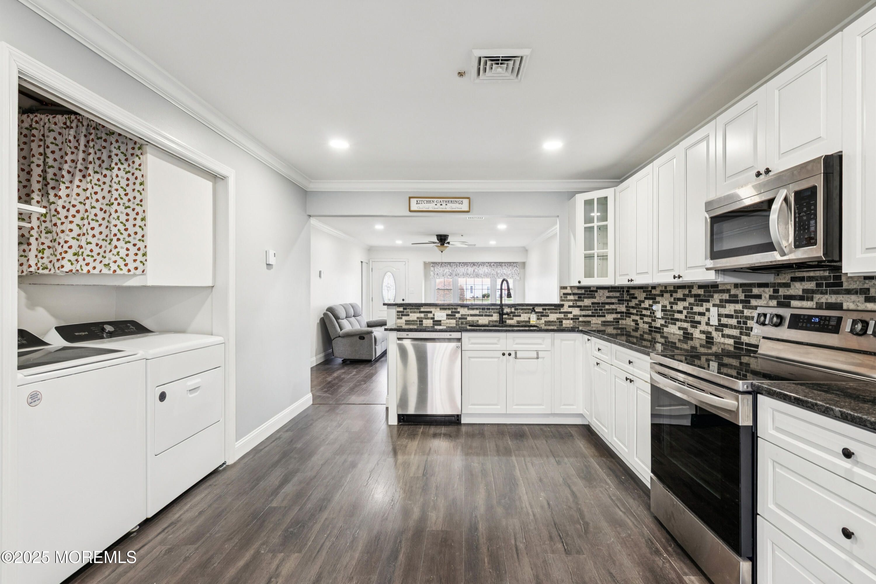 Welcome Home to Easy Living in Freehold's Villages Community! Discover comfort & convenience in this beautifully fully updated 2 bed-1bath home. Perfectly designed for low-maintenance living, this charming home offers modern updates & access to fantastic community amenities. Close to shopping. Features You'll Love are wood laminate flooring throughout, 2 spacious bedrooms w/ generous closet space. Updated bathroom w/ stylish finishes. Bright, modern kitchen featuring newer SS appliances, cabinetry, & granite countertops. Open-concept living & dining area with plenty of natural light including recessed lighting & crown molding through out. Newer hvac. Love the bonus room to access a paver walkway and patio in the backyard. Don't miss this beauty make an appointment today!