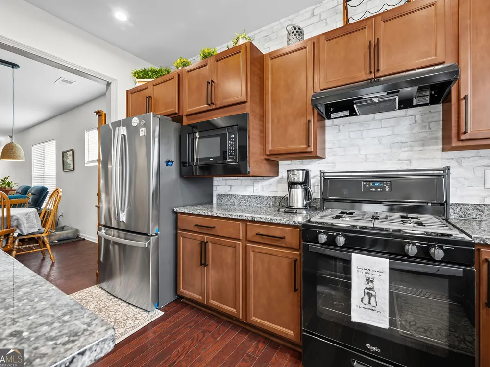 - Dishwasher, Disposal, Dryer, Gas Water Heater, Microwave, Range, Refrigerator, Stainless Steel Appliance(s), Washer