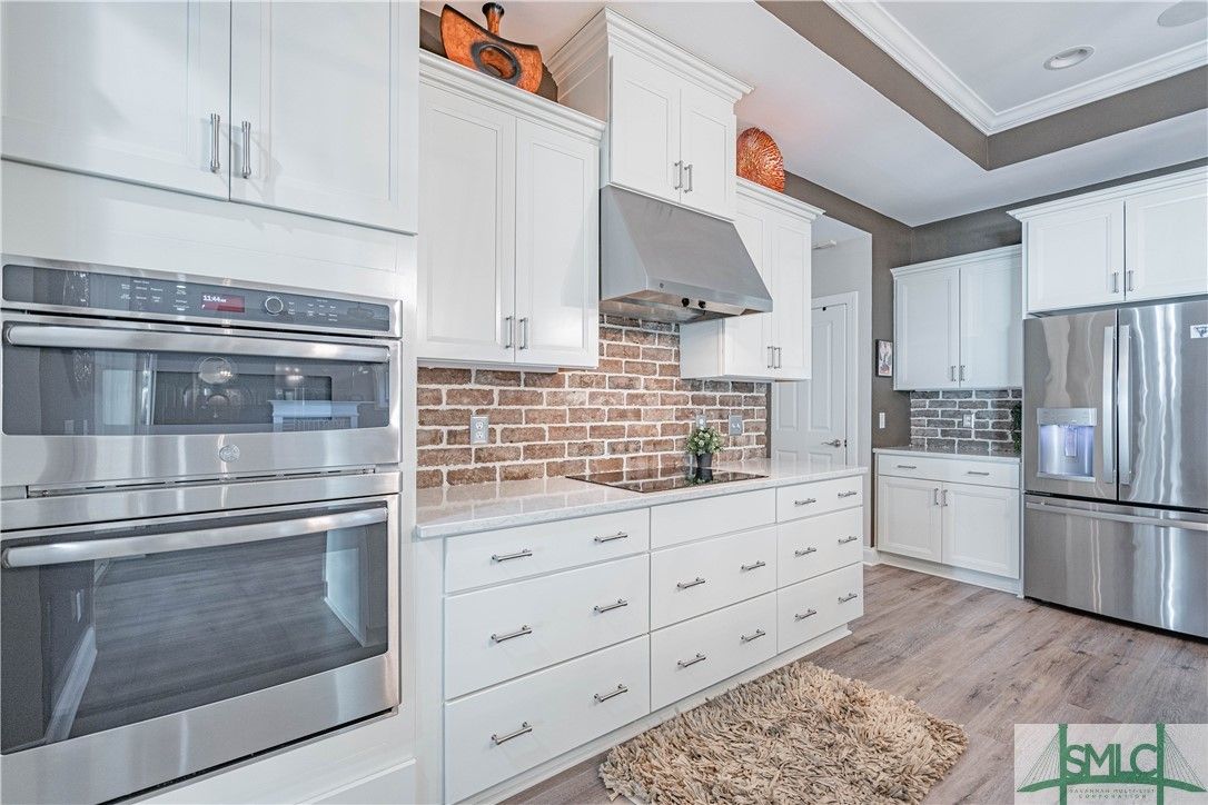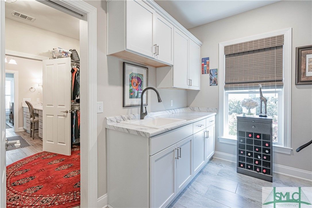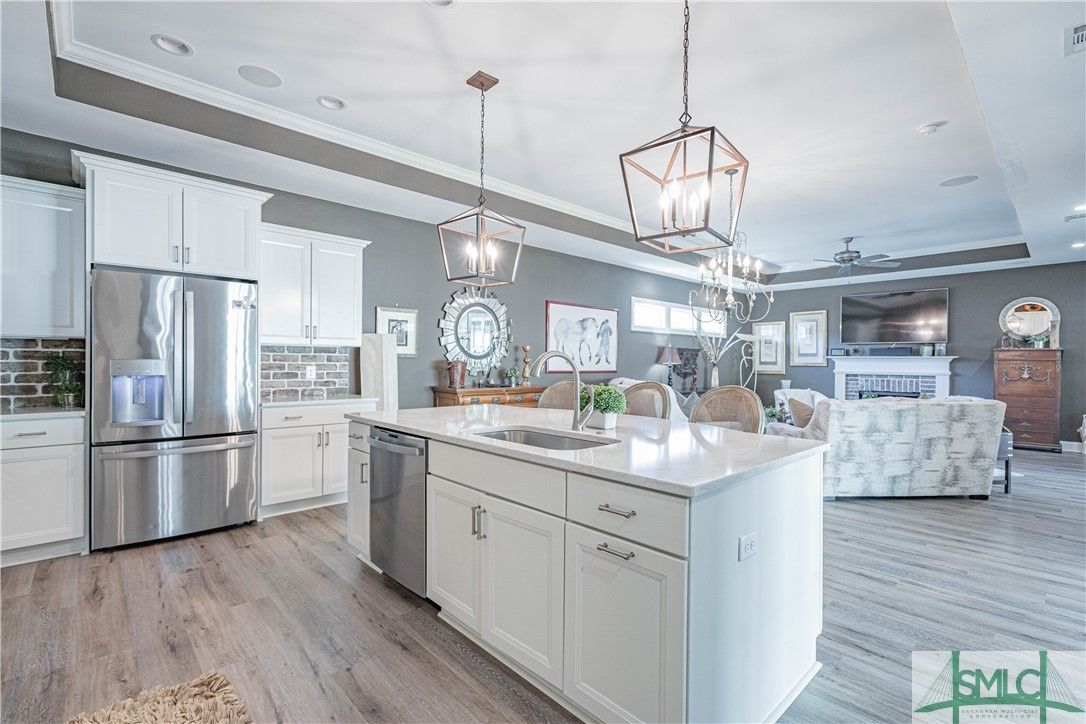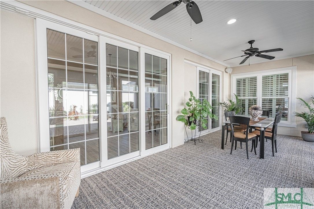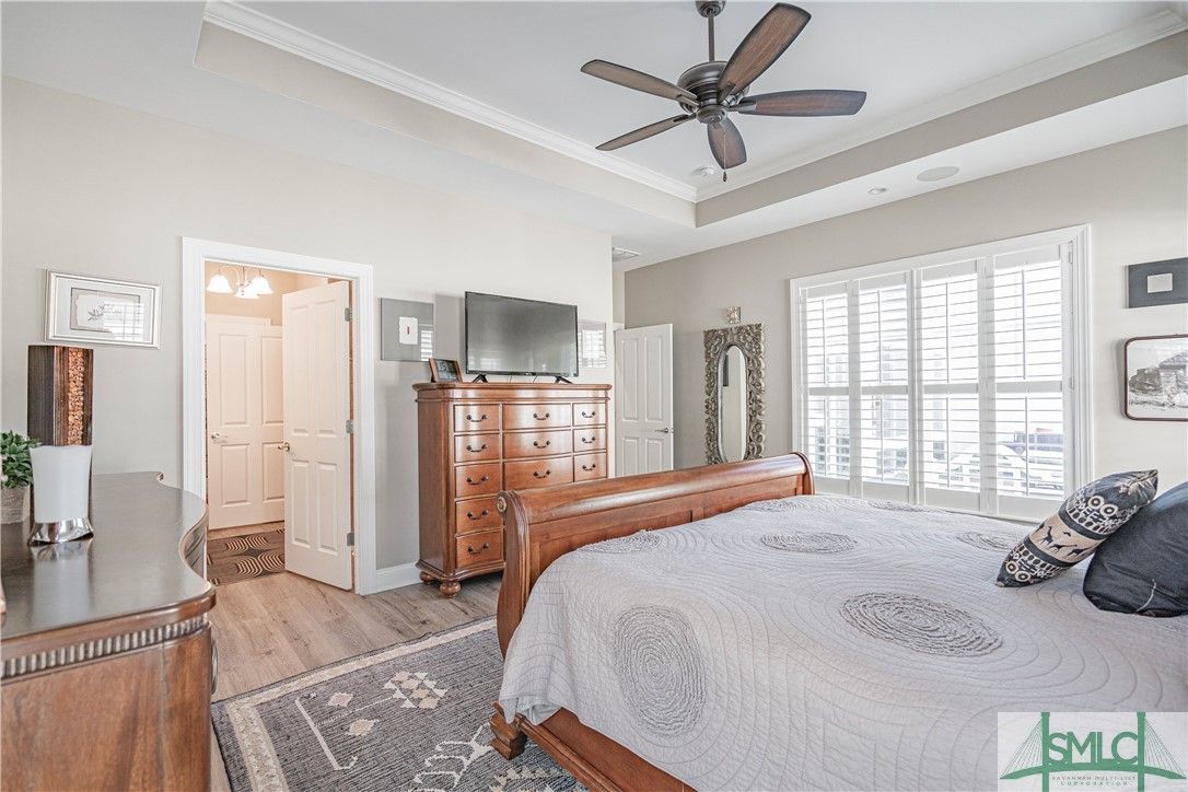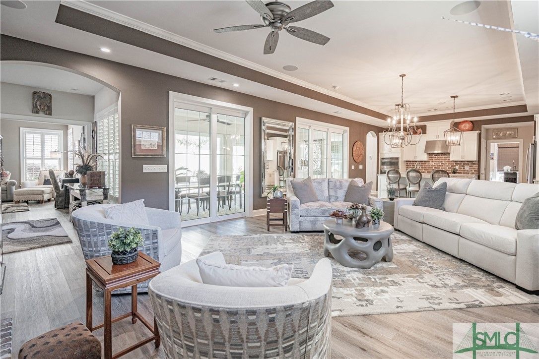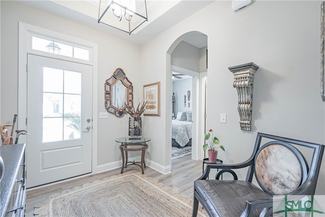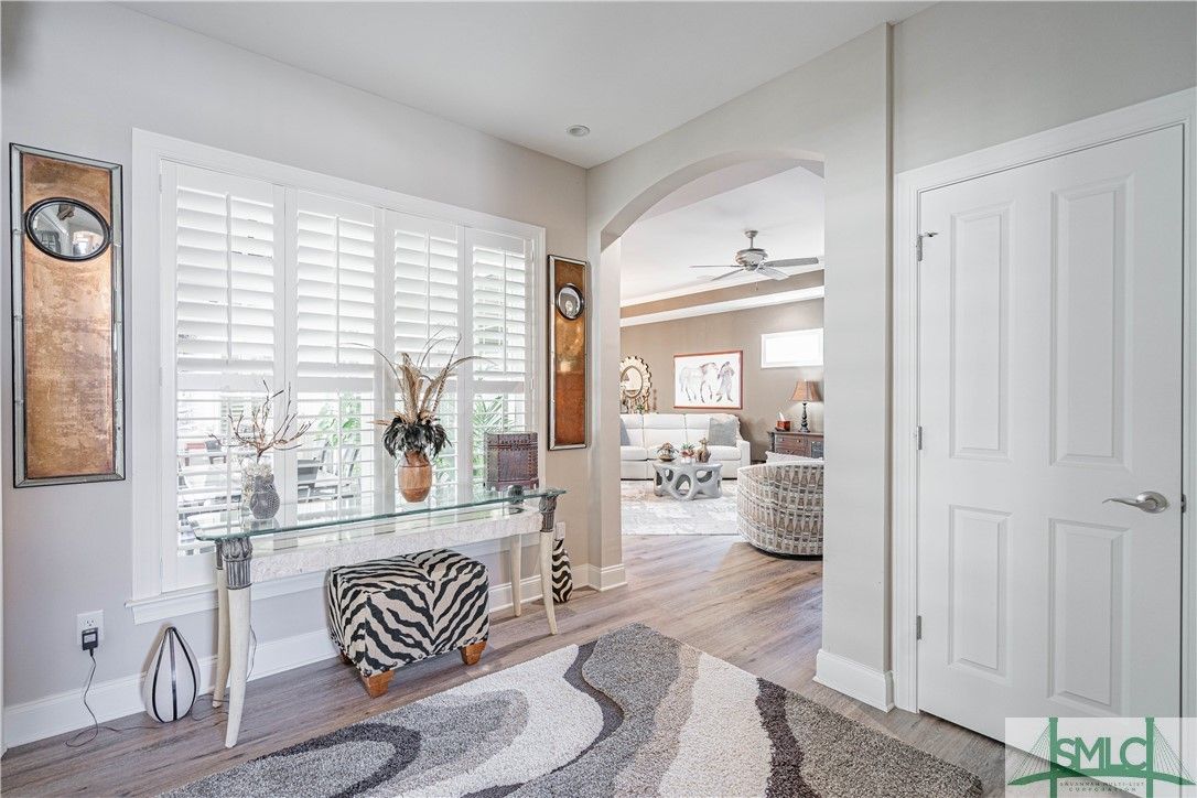 Home Sale Contingency with 48 hour kick-out clause. Outstanding Westbrook Villa with access to Savannah Quarters amenities. This stunning, maintenance-free unattached villa (zero entry) offers elegance and convenience in every detail. Step into the inviting foyer, where layered lighting and luxury plank flooring set the tone. A versatile guest suite with a separate bath, plus a study or optional 3rd bedroom with custom built-ins, provides flexible living spaces. The great room boasts a 10' tray ceiling, while the chef’s kitchen features custom cabinetry, a brick backsplash, and 8' quartz island. The owner’s suite is bathed in natural light, with a spa-like bath showcasing quartz countertops, a doorless shower, bidet, and a spacious closet with direct laundry access. A 250 sq. ft. sunroom, perfect for dining, overlooks a brick paver lanai and a beautifully landscaped, fenced yard! Whole-home surround sound and smart wiring enhance modern living. Upstairs, a bonus room with dedicated A/C is ideal for hobbies or work-from-home needs!