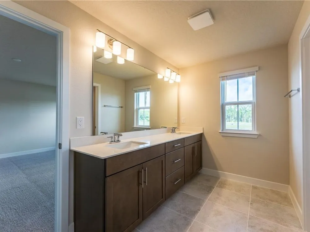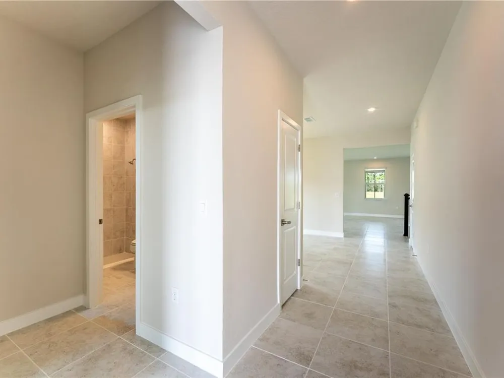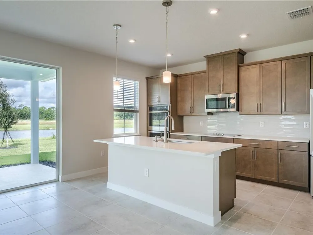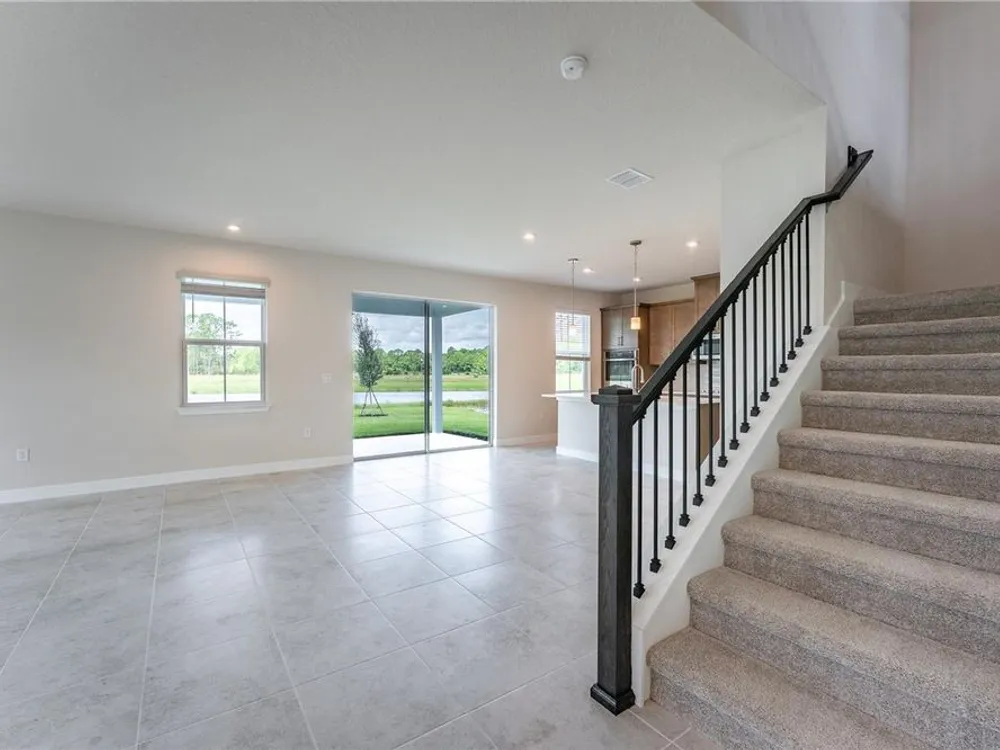 The Palms at Venetian Bay! Located in New Smyrna Beach, Florida known for its 17 miles of pristine beaches. Within The Palms, you will find a fishing dock and a meditation gazebo. But the master-planned amenities include a town center with shops, restaurants, and planned entertainment, over 20 miles of paved walking or biking trails, and the championship golf course, The Club at Venetian Bay. The Rochelle single-family home has so much style. Park in your spacious 2-car garage and step into a gourmet kitchen where new memories and meals will be made. Gather round the island or relax in the great room with friends and family. Extend the outdoor patio to a lanai for more fresh air fun. A formal dining room leads the way to versatile flex space. Upstairs, a bonus room. In your luxurious owner’s suite, a double vanity bath and a huge walk-in closet never cease to amaze. The Rochelle does everything right. All Ryan Homes now include WIFI-enabled garage opener and Ecobee thermostat. **Closing cost assistance is available with use of Builder’s affiliated lender**. DISCLAIMER: Prices, financing, promotion, and offers subject to change without notice. Offer valid on new sales only. See Community Sales and Marketing Representative for details. Promotions cannot be combined with any other offer. All uploaded photos are stock photos of this floor plan. Actual home may differ from photos.