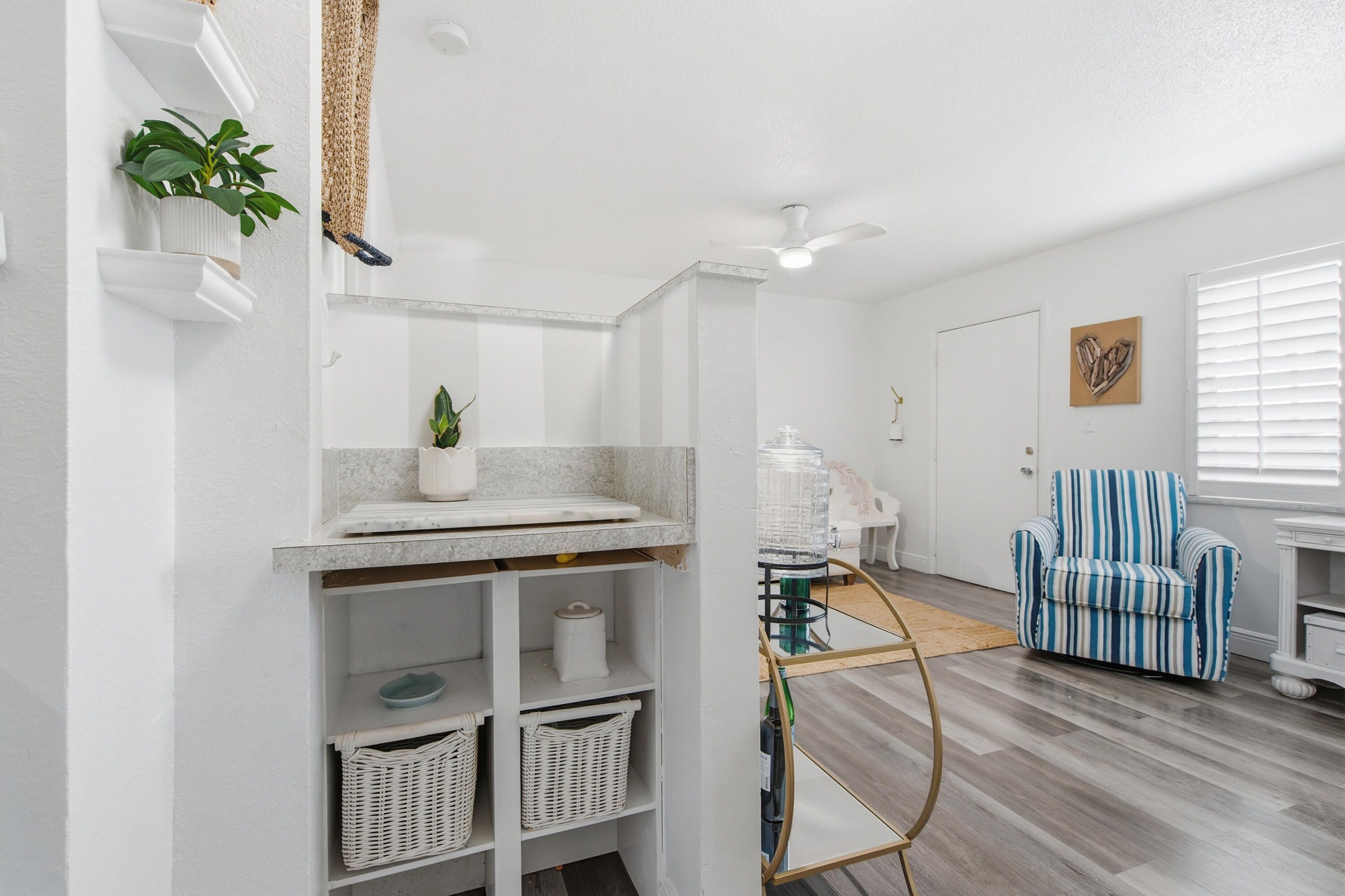 Priced to sell and absolutely charming! Don't miss this beautifully updated first floor unit, 1 bed, 1 bath with sunroom, just steps from the water. Featuring gorgeous flooring throughout, a coastal white kitchen, an in-unit washer & dryer, this home is truly move-in ready.The fully renovated bathroom is thoughtfully designed and wheelchair accessible, offering both style and functionality. The community amenities are exceptional and include a brand-new pool, fitness center, sauna, library, tennis courts, and pickleball courts. When you're ready to relax, simply walk across the street and enjoy the Florida sunshine by the water or take a short stroll to the beach, restaurants, and shopping. This is low-maintenance coastal living at its best. Cute, convenient, and priced for a quick sale