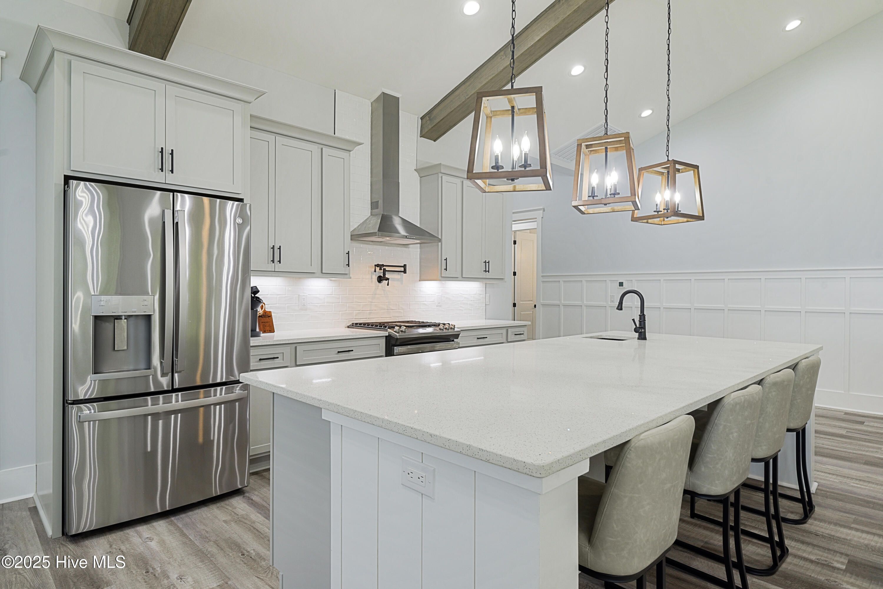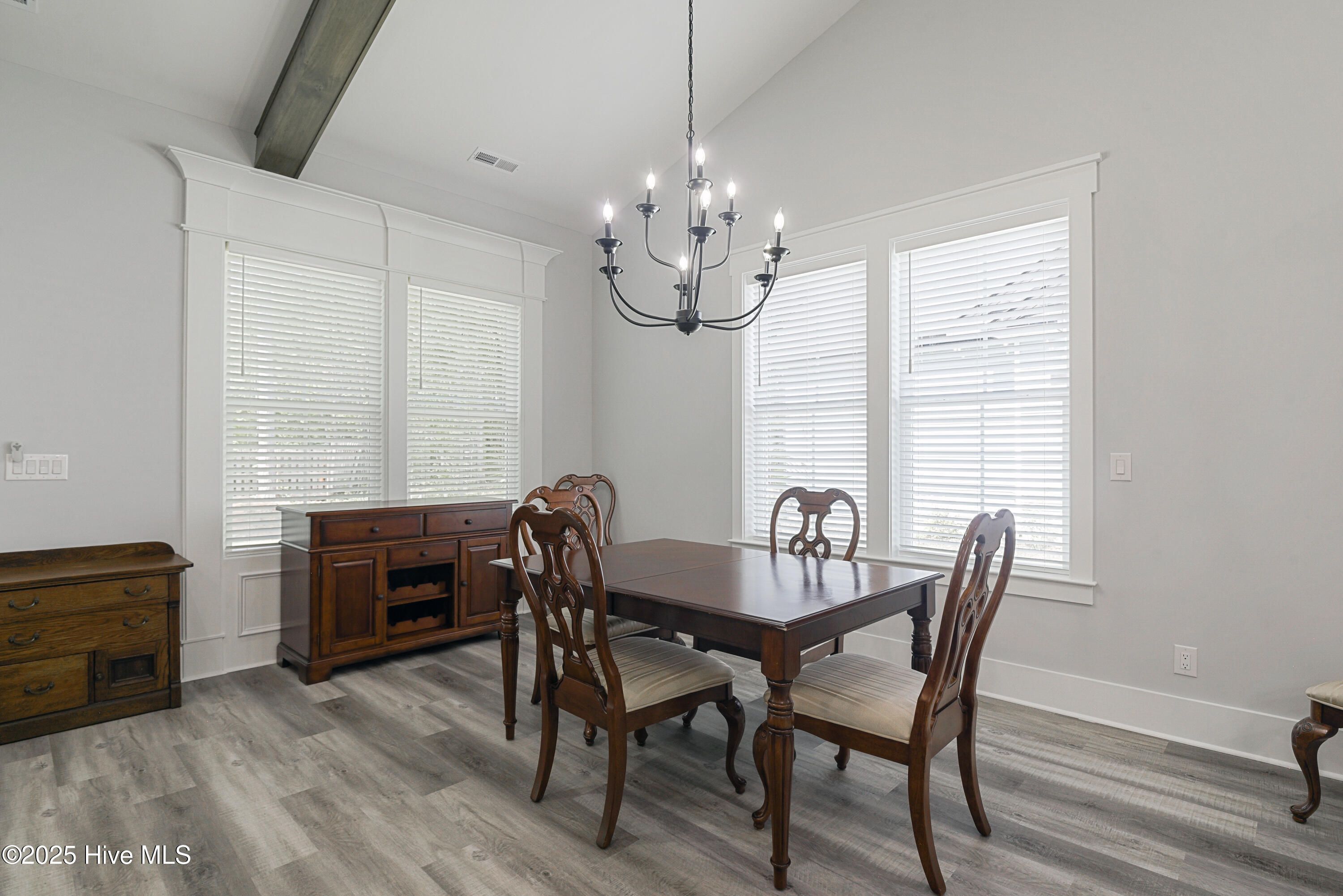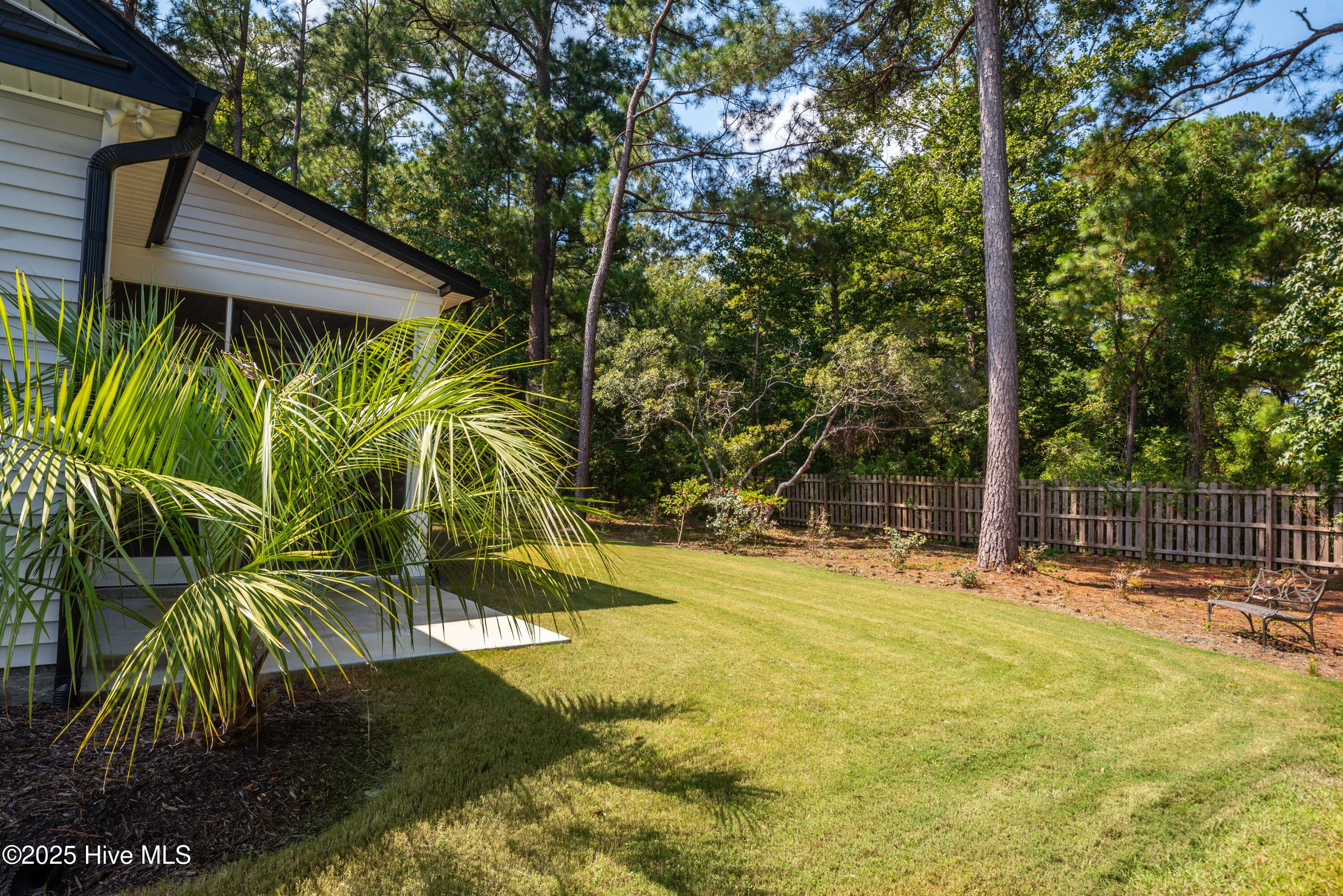 Step into this nearly new home where thoughtful design and luxurious finishes set the tone. From the moment you enter, details like a trey ceiling and wainscotting in the foyer welcome you into an open, light-filled floorplan perfect for everyday living and entertaining. The heart of the home is the vaulted great room, enhanced with striking faux beams and a stone gas fireplace. Oversized sliding glass doors extend the living space onto a screened patio, where you can relax while enjoying a wooded backdrop and complemented by a neighboring lot that is not currently scheduled for future residential construction. The chef's kitchen is a showstopper with a large island with seating, a built-in microwave drawer, prep sink, quartz counters, tiled backsplash, and a farmhouse sink. A gas range with stainless steel hood and a pot filler make cooking effortless, while the walk-in pantry with custom shelving keeps everything organized. A formal dining area just off the kitchen provides the perfect space for gatherings. The main-level primary suite features a trey ceiling, a custom walk-in closet, and en-suite bath with a walk-in tiled shower and double-sink vanity. Guest bedrooms enjoy the same high-end finishes, with luxury vinyl plank flooring in the living areas and bedrooms, and durable tile in the baths. Upstairs, the bonus room has its own full bathroom, walk-in closet, and mini-split AC unit—making an ideal guest suite or office. Additional highlights include: an irrigation system, laundry room with cabinets and utility sink, epoxy-coated garage floor, tankless water heater, and hand-selected fixtures and finishes throughout. Homeowners in the gated-golf community of Brunswick Plantation enjoy an active social committee and resort style amenities such as: an indoor pool, hot tub, fitness center, several outdoor pools, along with tennis and pickleball courts. Close to the restaurants and shopping in Calabash, and still only minutes to Sunset Beach.