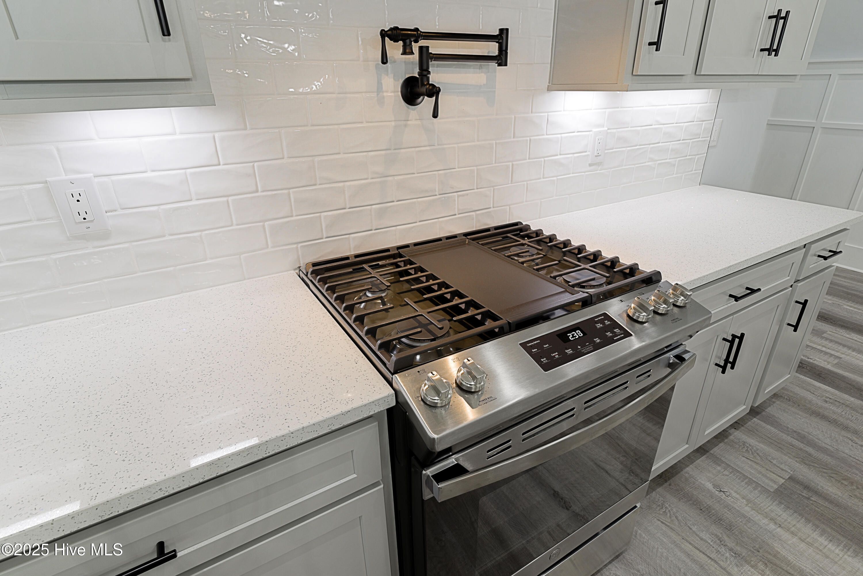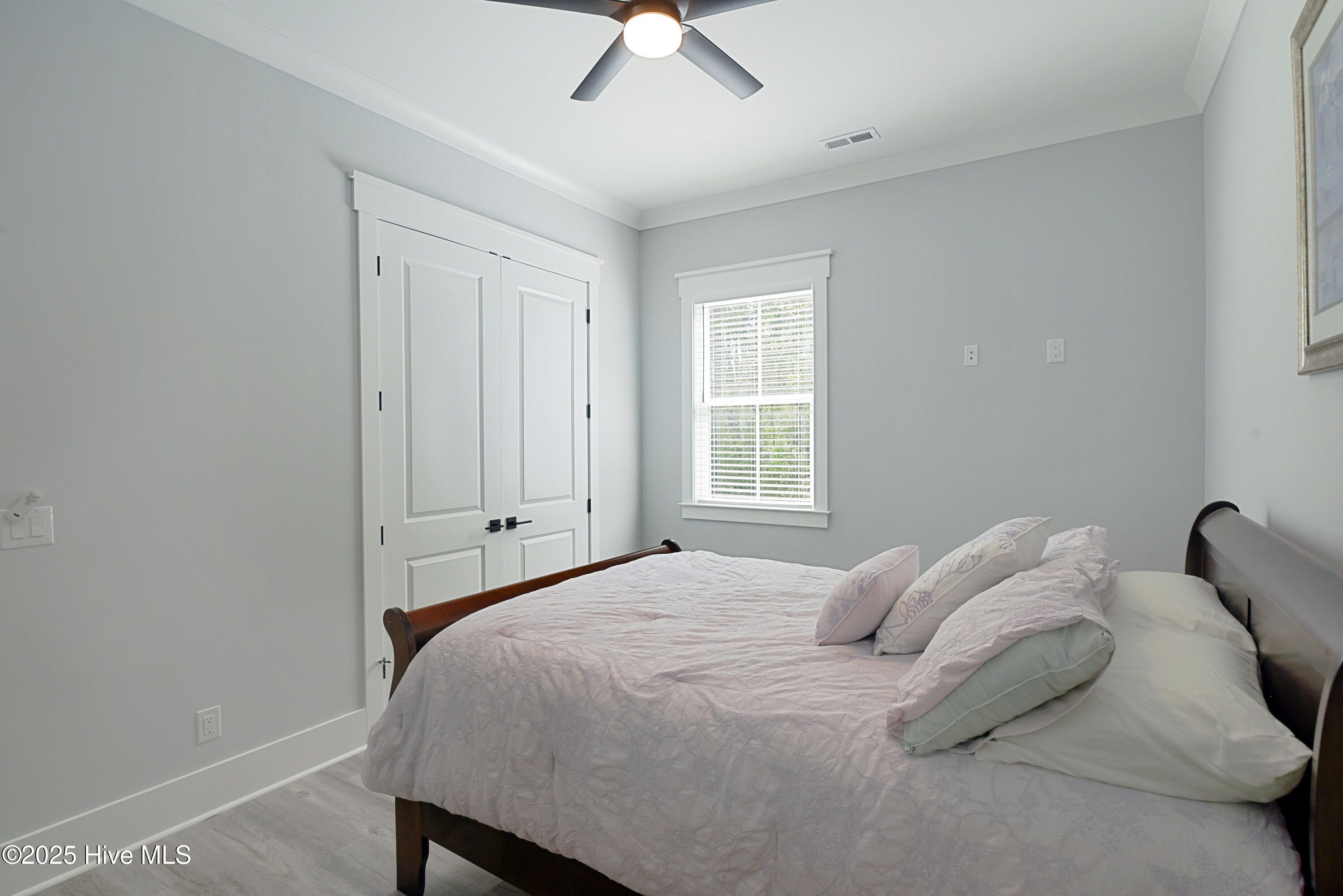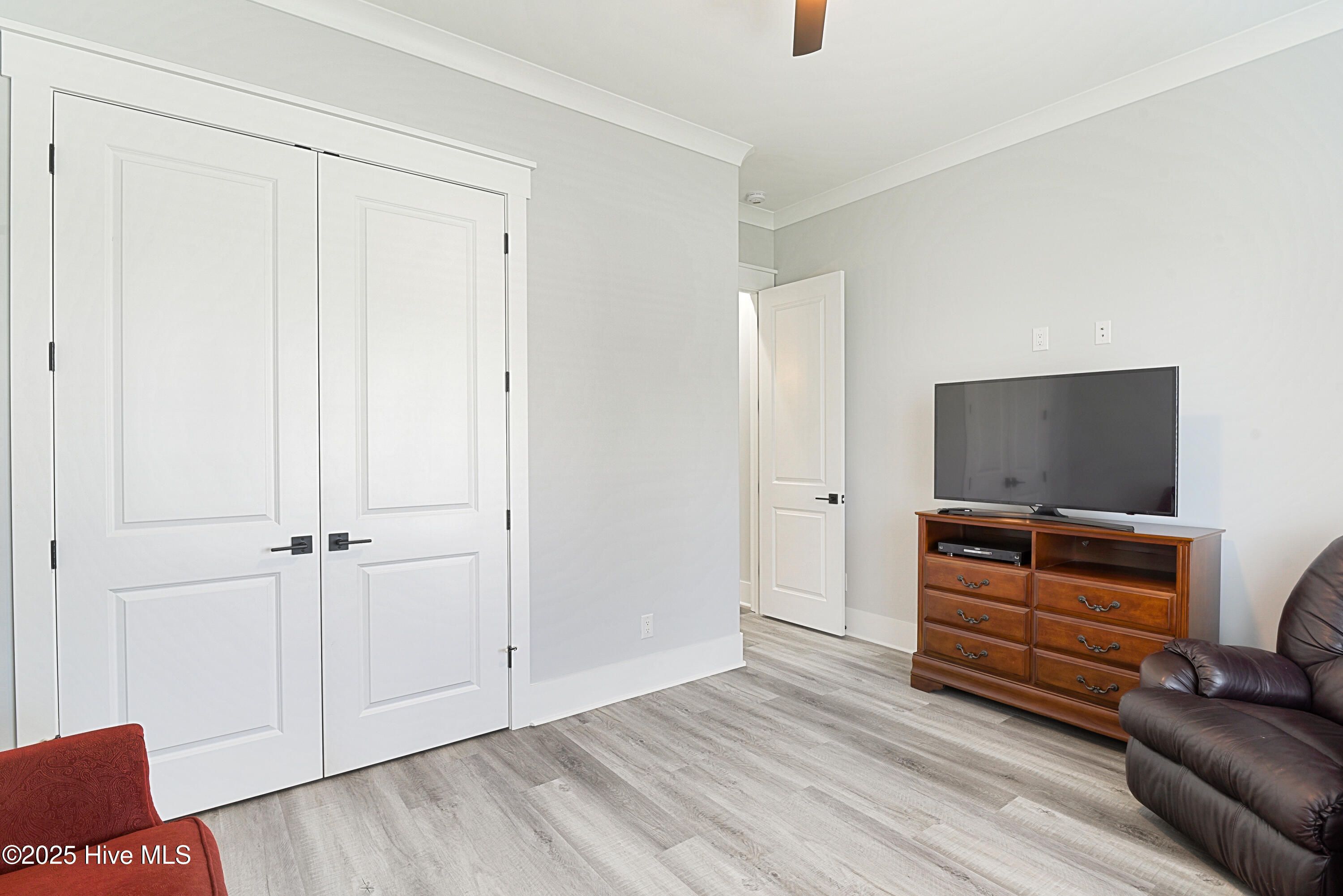 Step into this nearly new home where thoughtful design and luxurious finishes set the tone. From the moment you enter, details like a trey ceiling and wainscotting in the foyer welcome you into an open, light-filled floorplan perfect for everyday living and entertaining. The heart of the home is the vaulted great room, enhanced with striking faux beams and a stone gas fireplace. Oversized sliding glass doors extend the living space onto a screened patio, where you can relax while enjoying a wooded backdrop and complemented by a neighboring lot that is not currently scheduled for future residential construction. The chef's kitchen is a showstopper with a large island with seating, a built-in microwave drawer, prep sink, quartz counters, tiled backsplash, and a farmhouse sink. A gas range with stainless steel hood and a pot filler make cooking effortless, while the walk-in pantry with custom shelving keeps everything organized. A formal dining area just off the kitchen provides the perfect space for gatherings. The main-level primary suite features a trey ceiling, a custom walk-in closet, and en-suite bath with a walk-in tiled shower and double-sink vanity. Guest bedrooms enjoy the same high-end finishes, with luxury vinyl plank flooring in the living areas and bedrooms, and durable tile in the baths. Upstairs, the bonus room has its own full bathroom, walk-in closet, and mini-split AC unit—making an ideal guest suite or office. Additional highlights include: an irrigation system, laundry room with cabinets and utility sink, epoxy-coated garage floor, tankless water heater, and hand-selected fixtures and finishes throughout. Homeowners in the gated-golf community of Brunswick Plantation enjoy an active social committee and resort style amenities such as: an indoor pool, hot tub, fitness center, several outdoor pools, along with tennis and pickleball courts. Close to the restaurants and shopping in Calabash, and still only minutes to Sunset Beach.