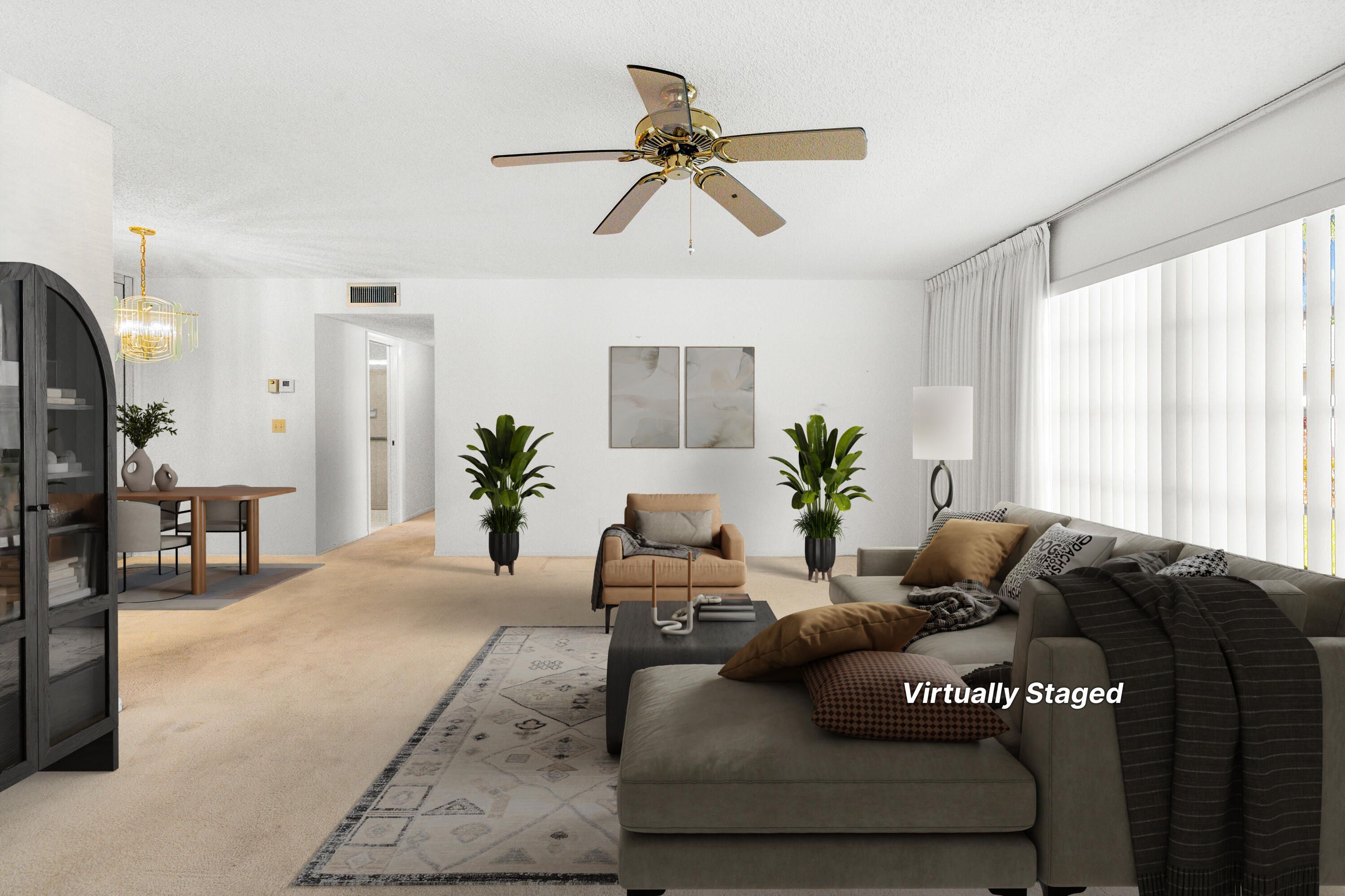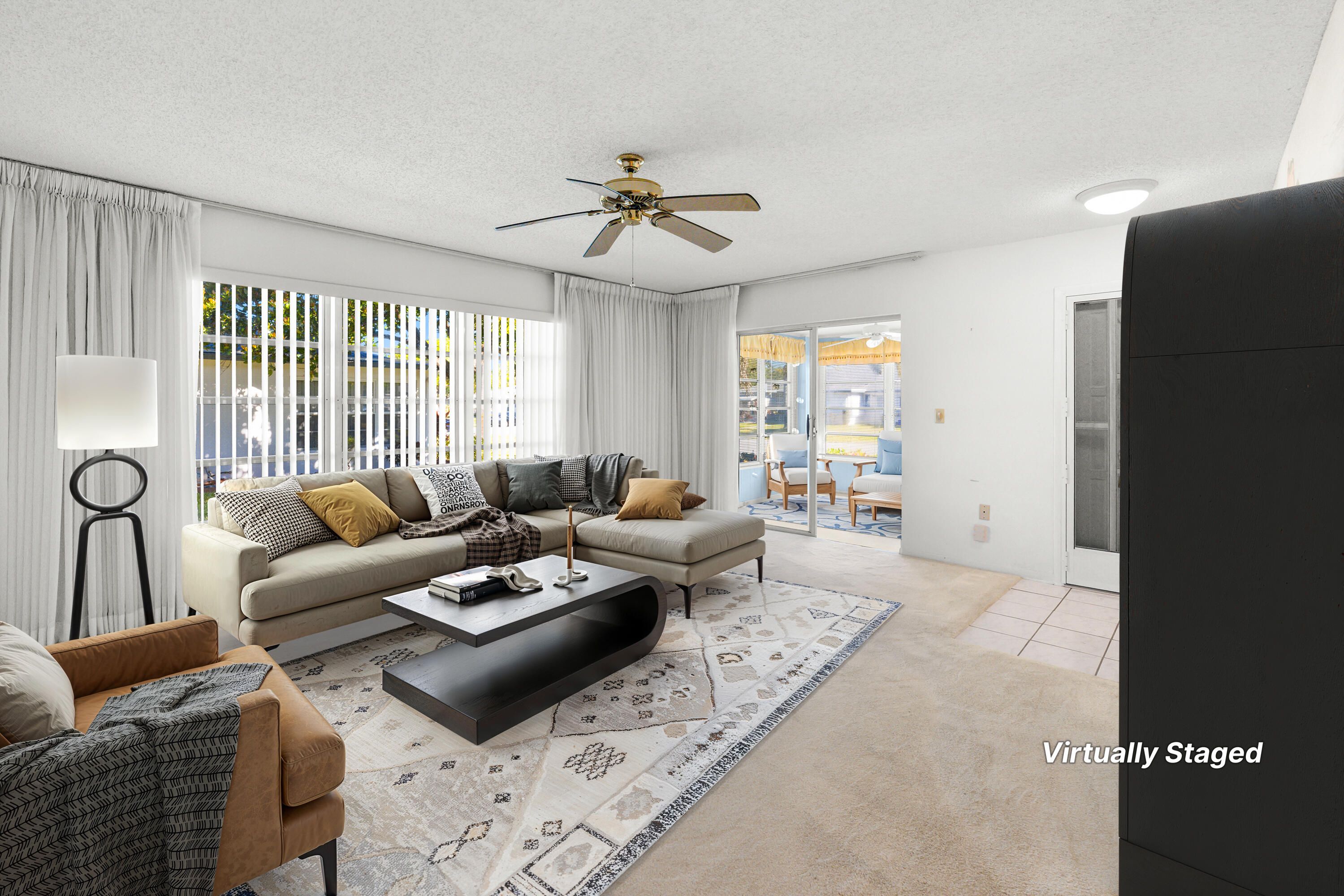 Enjoy desirable one-level living with amenities just minutes away and assigned owner and guest parking conveniently located outside your door. This villa is ideal as a primary residence or second home. Located in the sought-after High Point of Delray community, residents enjoy a heated pool, shuffle board, tennis, and additional amenities that encourage an active, social lifestyle. This 55+ community offers leasing options and features accordion storm shutters, making it easy to secure the home when used seasonally. New A/C. Tile and carpet flooring provide low-maintenance living in the main areas while adding warmth and comfort to the bedrooms. The open floor plan is light, bright, and welcoming.