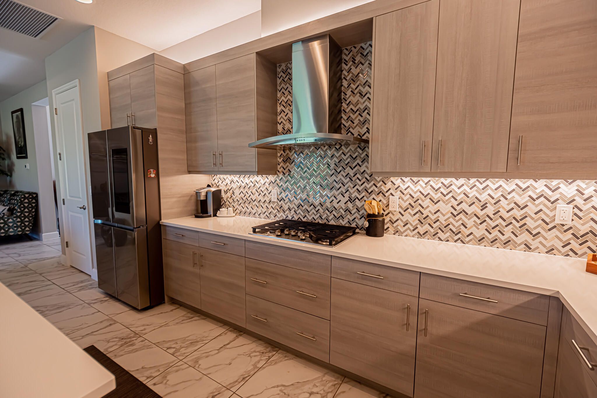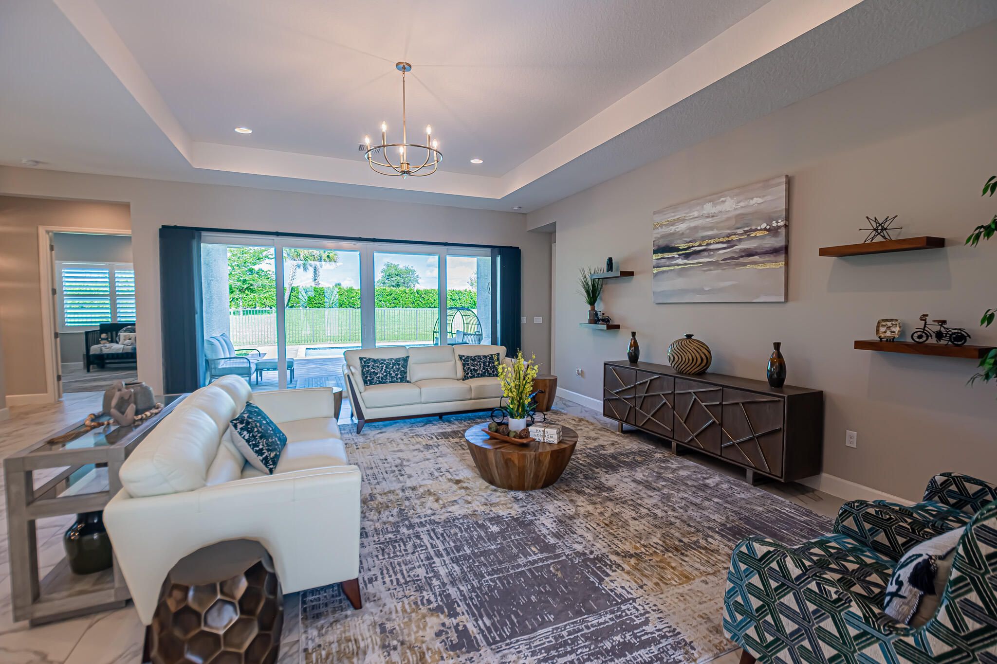 Riverland, Valencia Grove! Live the luxe lifestyle in this stunning Bianca Model featuring 2 bedrooms plus a den & flex room, 3 bathrooms, 2-car garage + dedicated golf cart garage - complete with pool on an oversized lot! High-end finishes shine throughout: plantation shutters, designer fixtures, and elegant tile floors. The gourmet kitchen impresses with quartz counters, vented gas cooktop, wall oven/microwave, touchscreen 4-door fridge, cook island, soft-close cabinets, and huge pantry. Enjoy a built-in speaker system inside and out, 2-zone A/C, and a private fenced yard perfect for entertaining on the spacious lanai. Split bedrooms offer comfort and privacy. Resort-style living awaits--clubhouse, fitness, arts, pickleball, pools & more in this vibrant 55+ community!