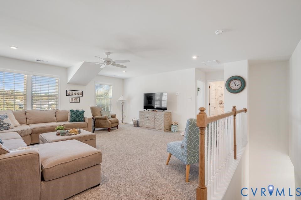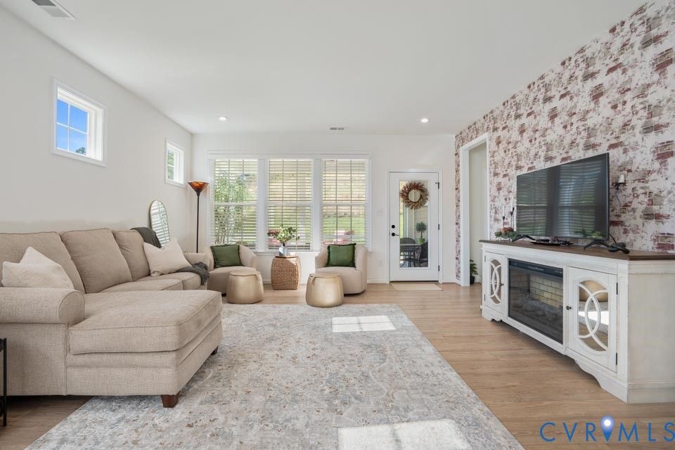 Great end-unit townhome (Sage Floor Plan) with 1st level primary bedroom which is located in the 55+ community of Mosaic @ West Creek. This lovely home has a private rear yard and is loaded with upgrades and being an end-unit, has numerous windows allowing sunlight to fill the house. The kitchen features granite countertops, tile backsplash, beautiful cabinets with large draws, walk-in pantry, a large dining area, and a center island that seats four. The laundry room is just off the kitchen and has a drop zone and washer/dryer hookups. The living room has a faux brick wall and walks out to the screened porch. The primary bedroom has two walk-in closets and a primary bath with double vanities, tile floor and a large tile shower with frosted glass doors. There is also a second 1st level bedroom with a full bath. Upstairs there is a 360 square foot loft and a third bedroom and full bath. There is also a 31'4 x 19'3" walk-in storage area. Other amenities include the screen porch, a large hardscape patio, and an immaculate two-garage garage with auto opener. Mosaic @ West Creek is a 55+ community that features walking trails, club house, pool, pickle ball courts, exercise room and is located just a few miles from Short Pump. All exterior maintenance is provided by the Association including trash/recycling, lawn care, snow removal and more.