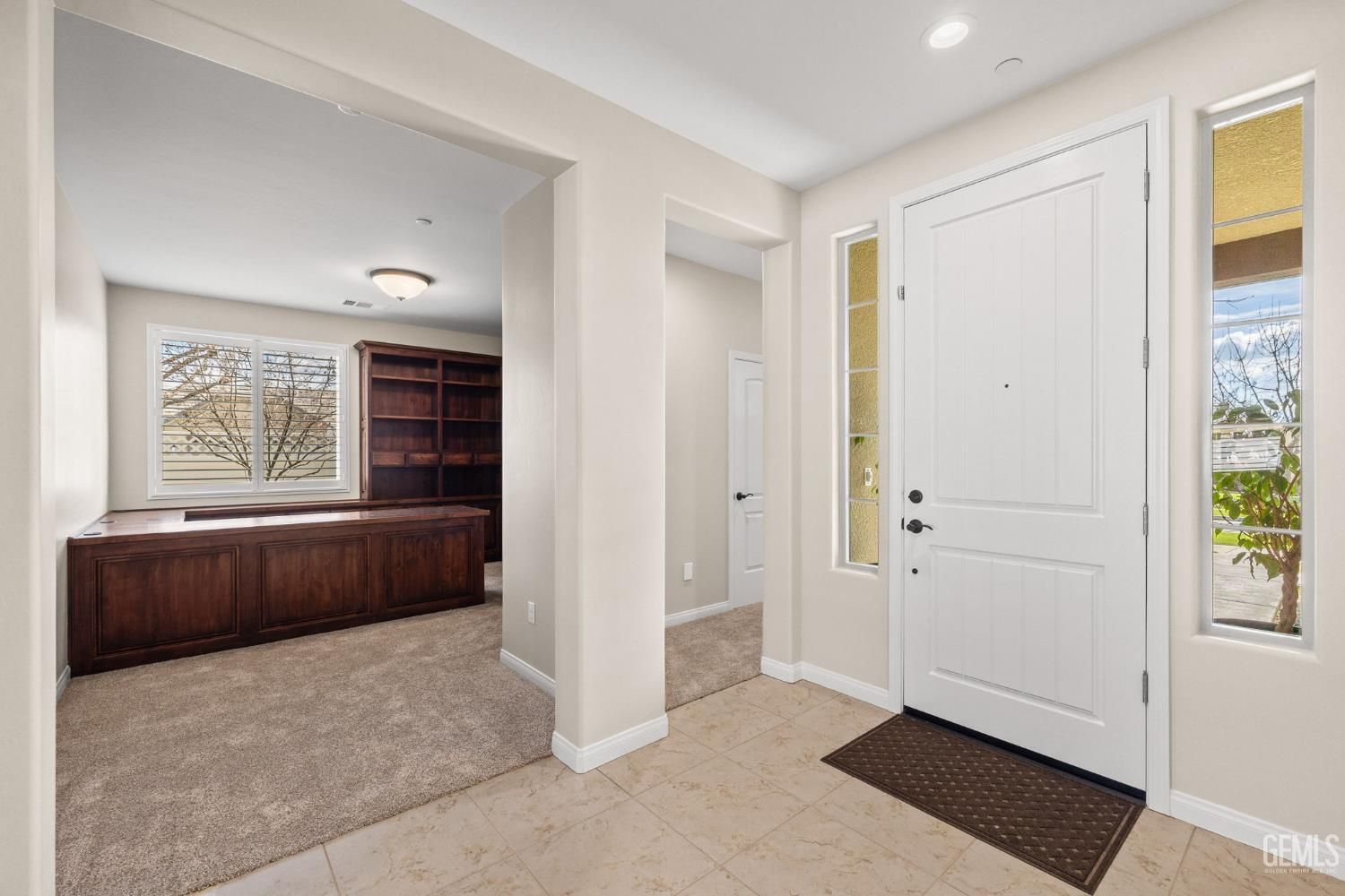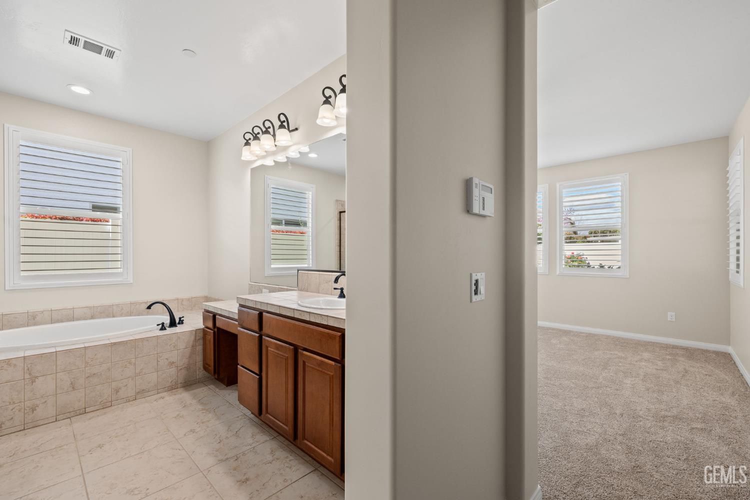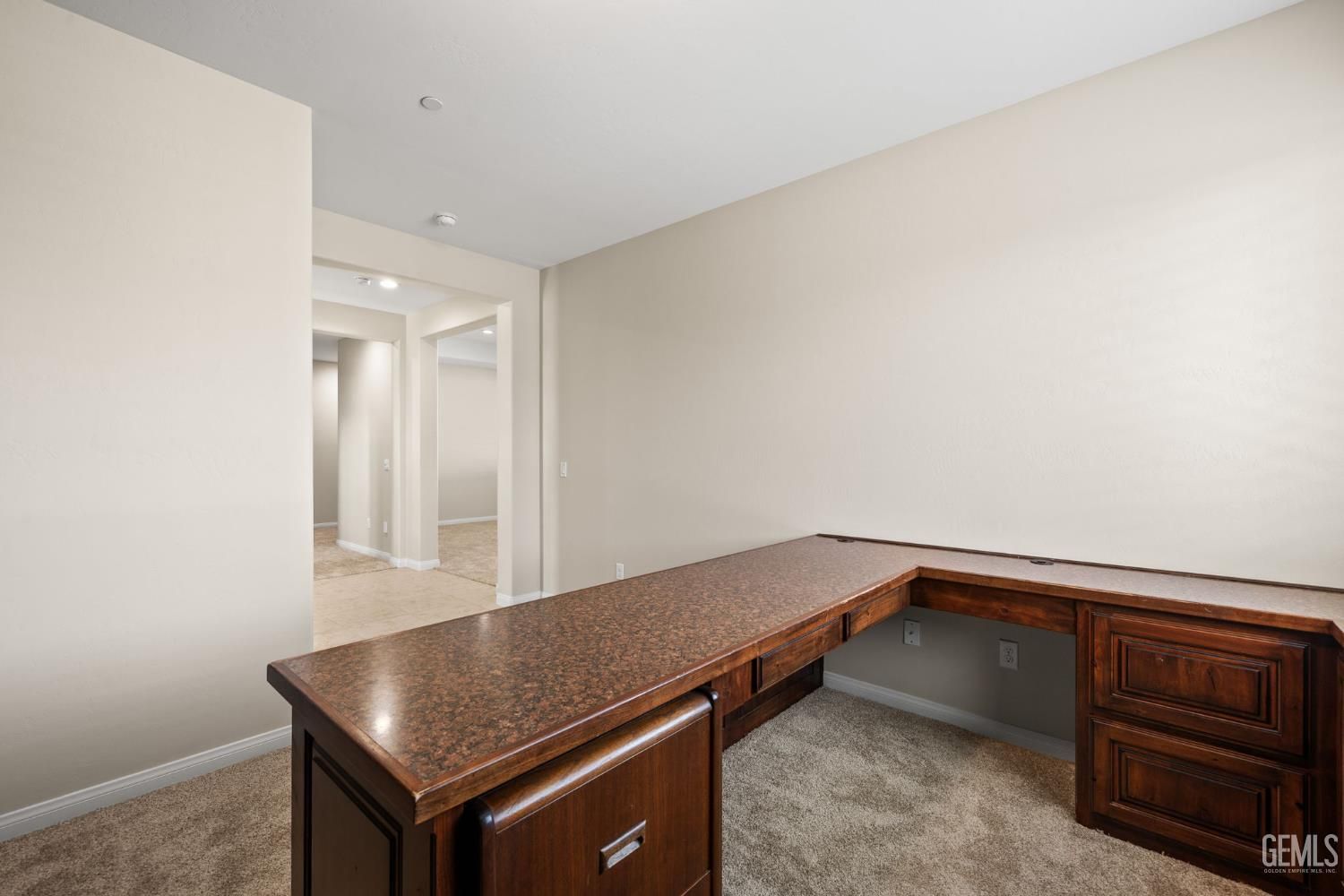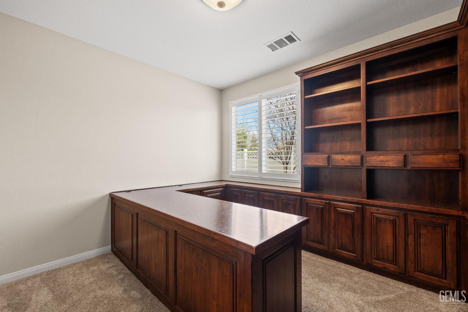 Welcome to the highly desirable adult gated community of Brighton Parks. This beautifully refreshed 2 bedroom, 2 bath home plus office offers fresh interior paint and recently installed plush carpeting. One of the best open floor plans in the community. The spacious open great room overlooks a huge covered patio, ideal for entertaining family and friends. The center island kitchen features stainless steel appliances and abundant cabinetry for generous storage. Retreat to the private primary suite with dual vanities, a large soaking tub, and separate shower. The office includes built-in desk and cabinetry for added functionality. Plantation shutters throughout complete this exceptional home. You will love the large corner lot with low-maintenance backyard, artificial turf and a tranquil water fountain. Just a short stroll to the clubhouse, pool, and community activities.