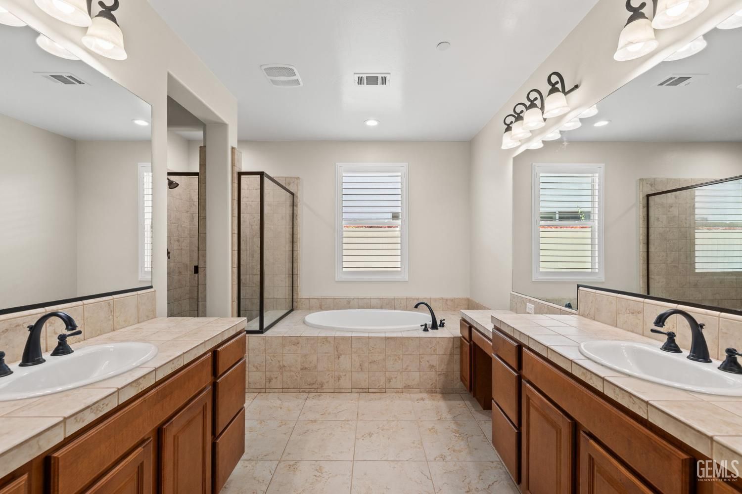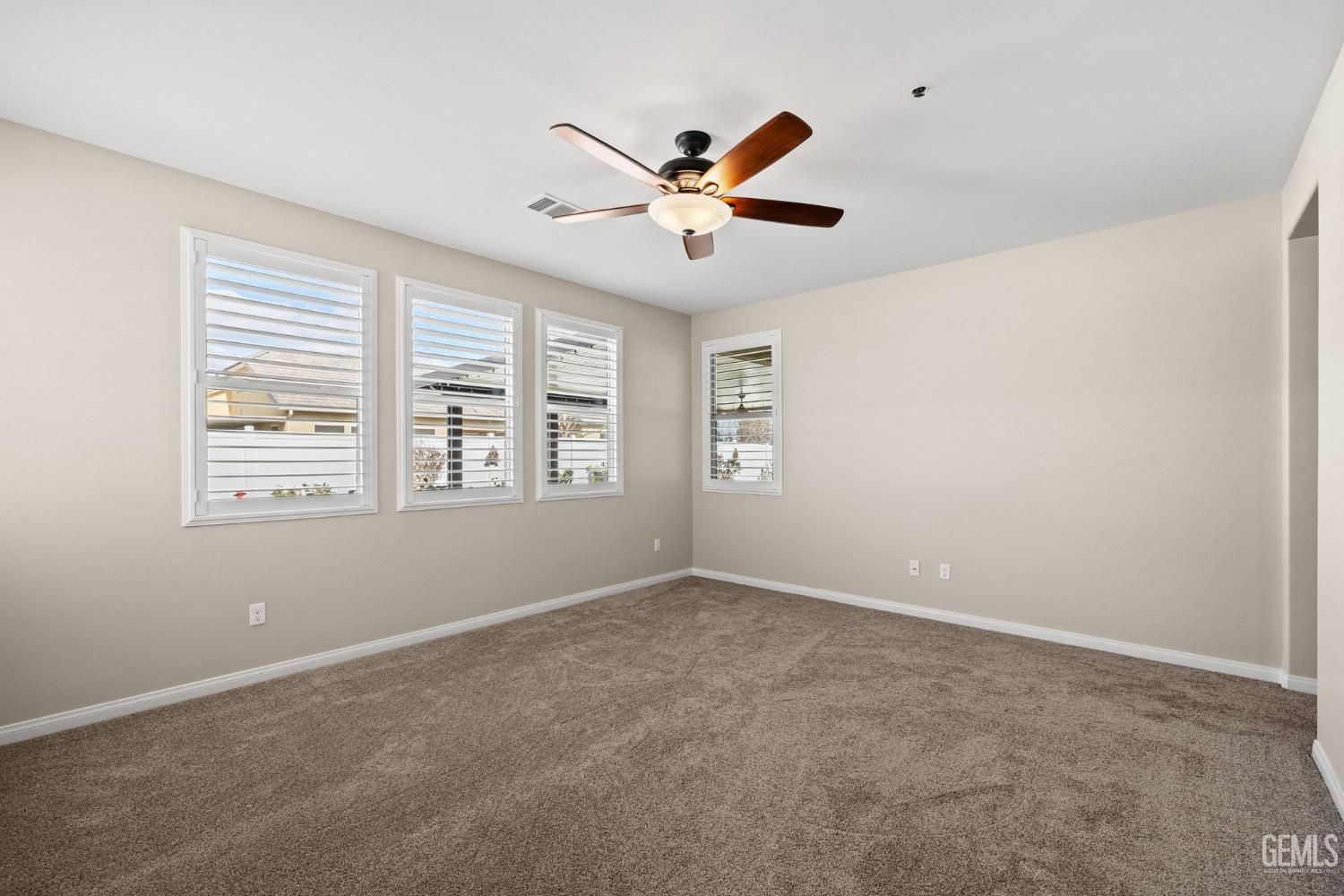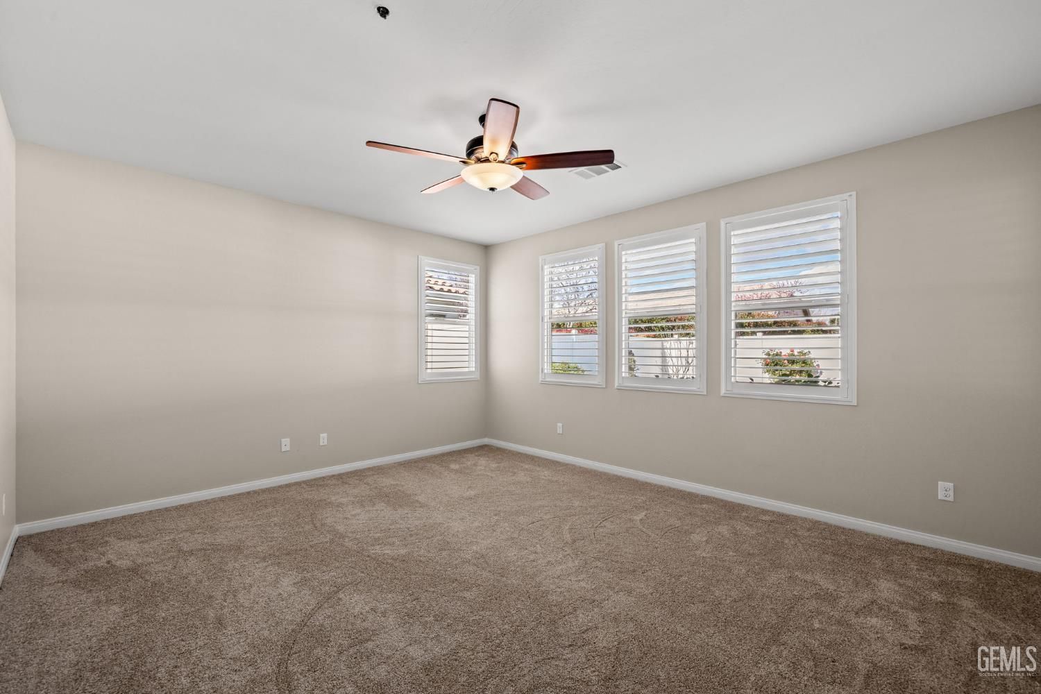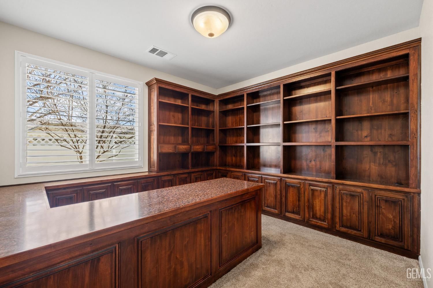 Welcome to the highly desirable adult gated community of Brighton Parks. This beautifully refreshed 2 bedroom, 2 bath home plus office offers fresh interior paint and recently installed plush carpeting. One of the best open floor plans in the community. The spacious open great room overlooks a huge covered patio, ideal for entertaining family and friends. The center island kitchen features stainless steel appliances and abundant cabinetry for generous storage. Retreat to the private primary suite with dual vanities, a large soaking tub, and separate shower. The office includes built-in desk and cabinetry for added functionality. Plantation shutters throughout complete this exceptional home. You will love the large corner lot with low-maintenance backyard, artificial turf and a tranquil water fountain. Just a short stroll to the clubhouse, pool, and community activities.