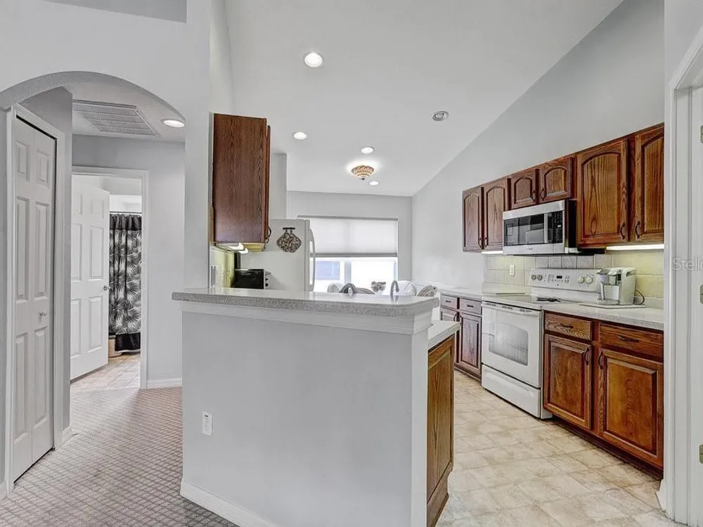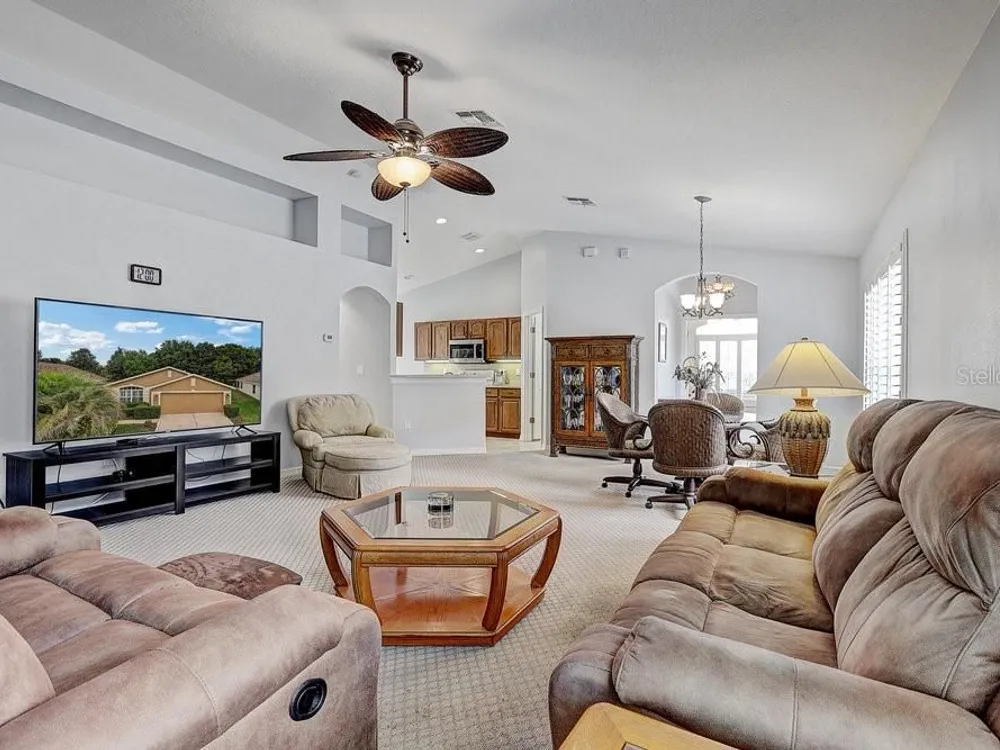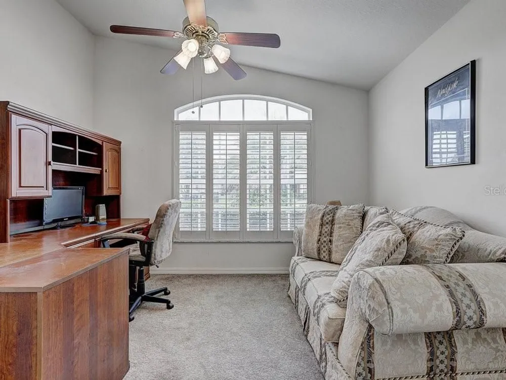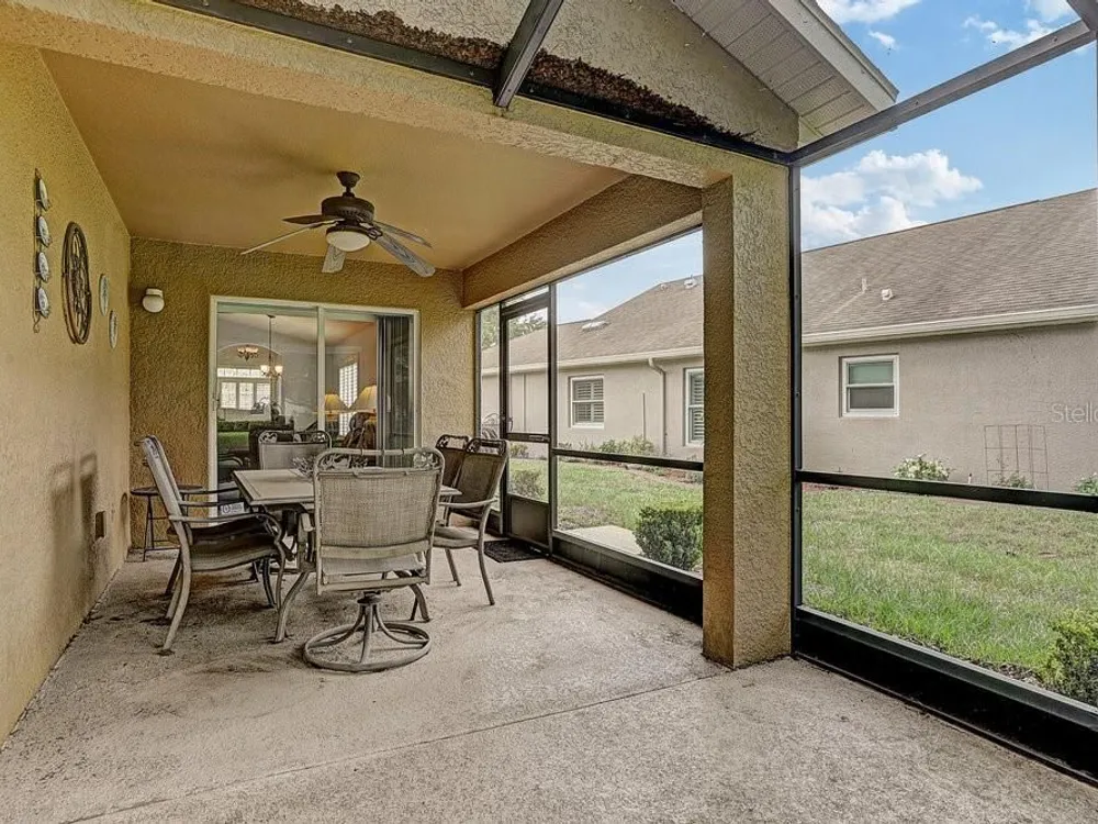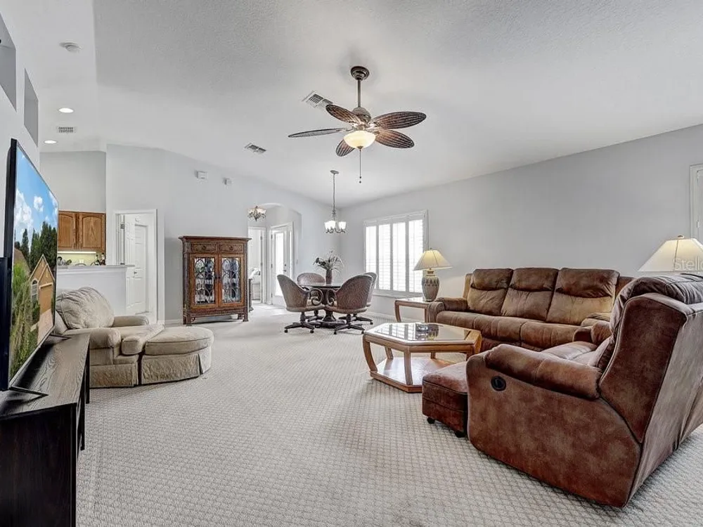 PRICE DECREASE! Welcome to this furnished, turnkey 2-bedroom + den home in the gated, 55+ Wellington at Seven Hills community. As you enter the home, a spacious foyer leads to double doors opening into a versatile Den/Media Room/Office, with a large Great Room/Dining Area featuring vaulted ceilings and architectural arches. The home boasts high ceilings, ceiling fans, plantation shutters, and an oversized lanai. The eat-in kitchen offers abundant cabinetry, under-cabinet lighting, a pantry, and Bosch appliances (microwave and dishwasher less than a year old). The large master suite includes a walk-in closet and master bath with a walk-in shower. The second bedroom, conveniently located near the second bath, is perfect for guests. Additional highlights include a 1998 EZ GO Textron Golf Cart, a laundry room with built-in storage, and a roof replacement scheduled for 2025/2026 by the association. The 18,000 sq. ft. clubhouse features a ballroom, restaurant, billiards, fitness center, library, heated pool, spa, and bocce. Enjoy walking on well-maintained sidewalks through lush landscaping, with HOA fees covering lawn maintenance, exterior painting, sprinkler system, roof replacement (1x), internet, and cable. Located just 15 minutes from the Suncoast, this home is also close to beaches for boating, kayaking, fishing, and nature trails. Move in, unpack, and start living your dream lifestyle today!