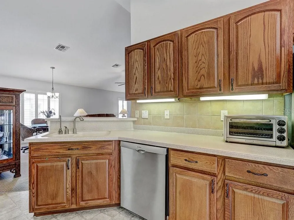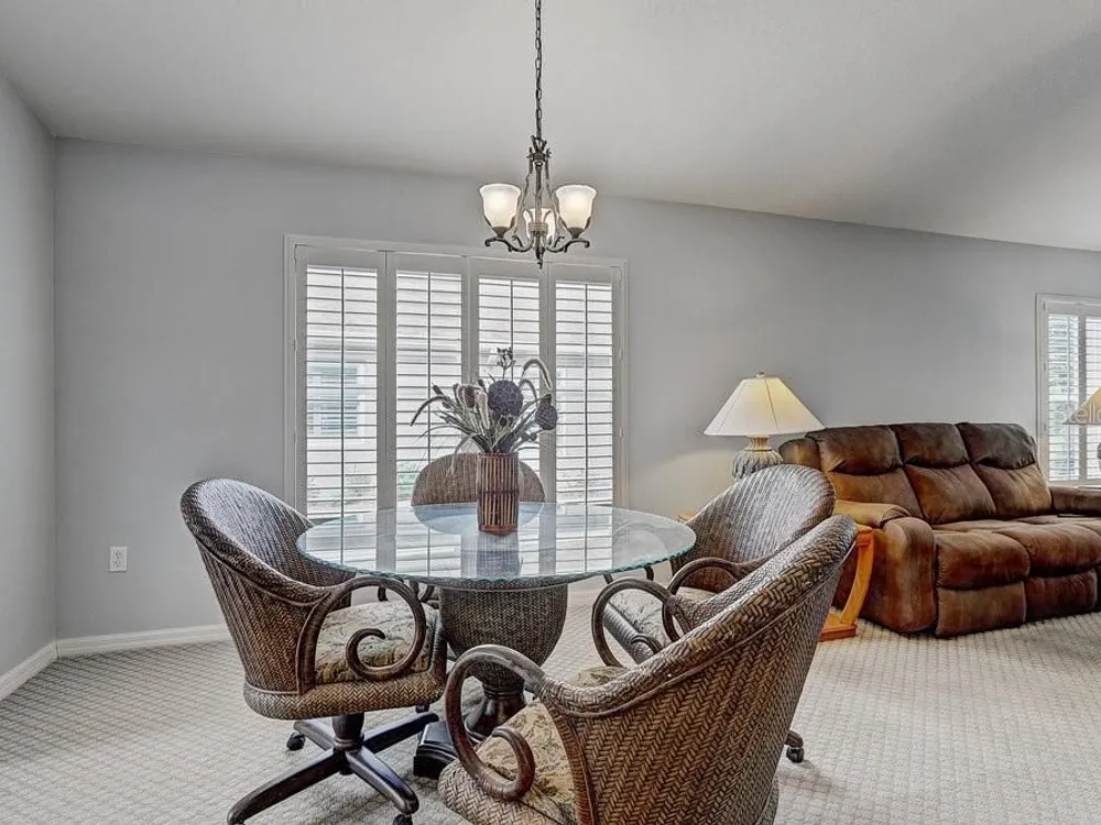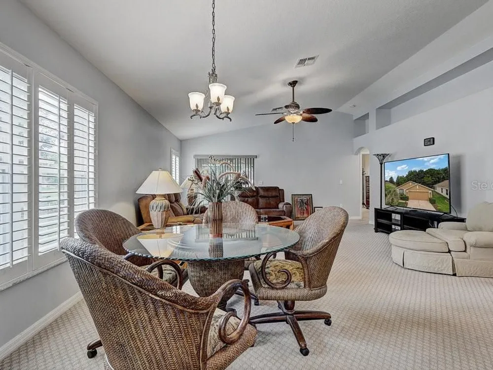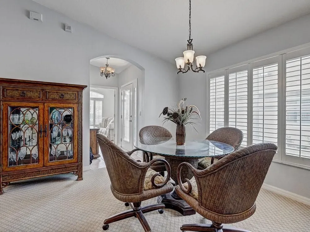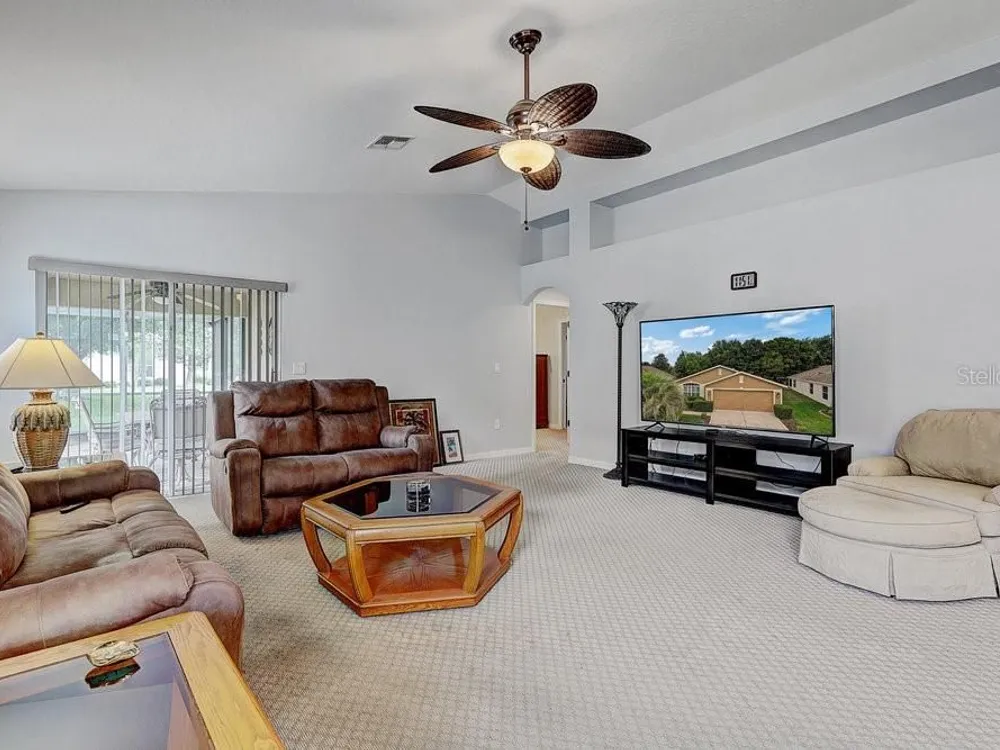 PRICE DECREASE! Welcome to this furnished, turnkey 2-bedroom + den home in the gated, 55+ Wellington at Seven Hills community. As you enter the home, a spacious foyer leads to double doors opening into a versatile Den/Media Room/Office, with a large Great Room/Dining Area featuring vaulted ceilings and architectural arches. The home boasts high ceilings, ceiling fans, plantation shutters, and an oversized lanai. The eat-in kitchen offers abundant cabinetry, under-cabinet lighting, a pantry, and Bosch appliances (microwave and dishwasher less than a year old). The large master suite includes a walk-in closet and master bath with a walk-in shower. The second bedroom, conveniently located near the second bath, is perfect for guests. Additional highlights include a 1998 EZ GO Textron Golf Cart, a laundry room with built-in storage, and a roof replacement scheduled for 2025/2026 by the association. The 18,000 sq. ft. clubhouse features a ballroom, restaurant, billiards, fitness center, library, heated pool, spa, and bocce. Enjoy walking on well-maintained sidewalks through lush landscaping, with HOA fees covering lawn maintenance, exterior painting, sprinkler system, roof replacement (1x), internet, and cable. Located just 15 minutes from the Suncoast, this home is also close to beaches for boating, kayaking, fishing, and nature trails. Move in, unpack, and start living your dream lifestyle today!