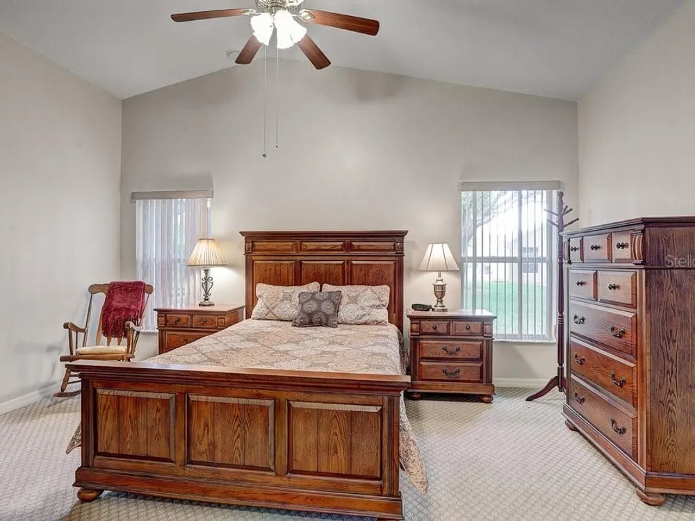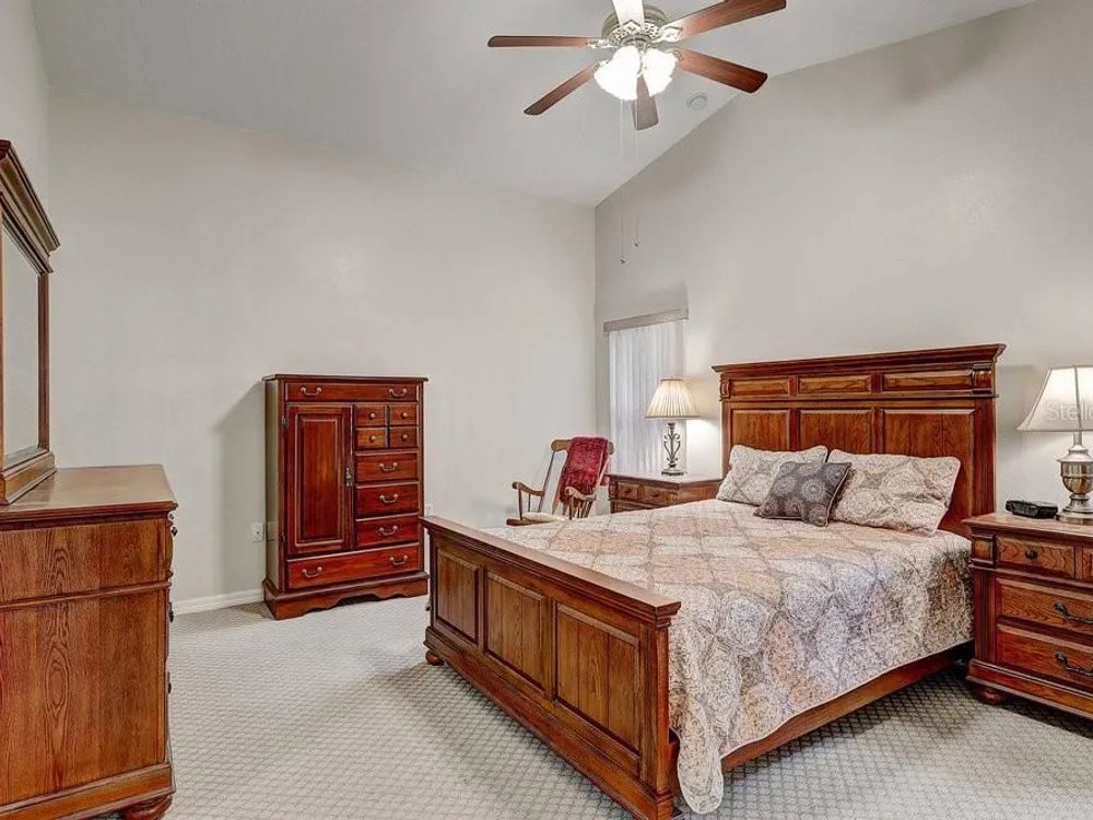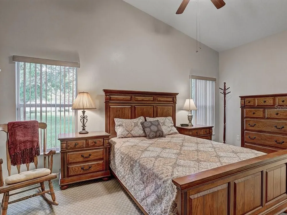 - Built-in Features, Ceiling Fan(s), Eat-in Kitchen, High Ceilings, Living/Dining Room, Open Floorplan, Main Level Primary, Solid-Wood Cabinets, Split Bedrooms, Stone Counters, Thermostat, Vaulted Ceiling(s), Walk-In Closet(s), Window Treatments