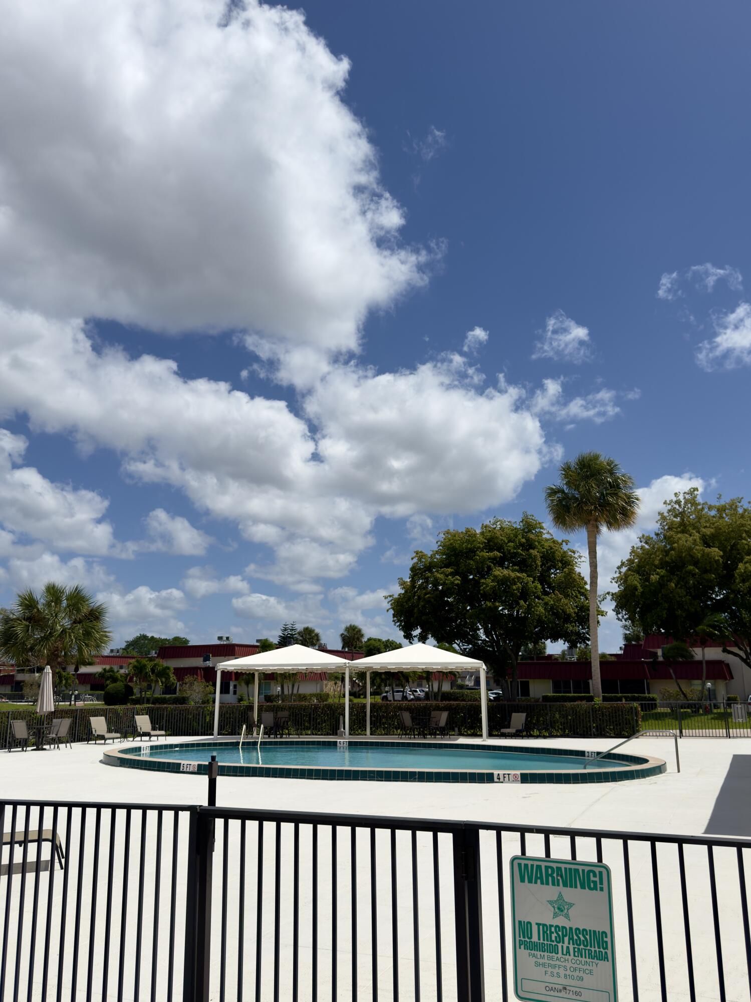 1 bedroom, 1.5 bath condominium, Ground floor with no one on three sides or above you. This end unit is bright, with enclosed lanai. Royal Palm Beach Commons Park across the street, offers disc golf, driving range, bike and walking paths and hosts numerous events and concerts throughout the year. Close to shopping, Wellington mall, restaurants and entertainment.
