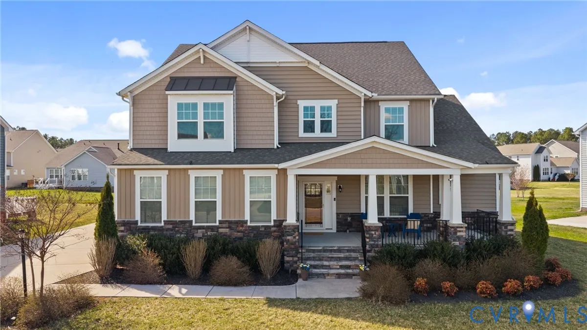 Pristine 5-bedroom, 4.5-bath home located in the riverfront community of Meadowville Landing. This home shows like new and features numerous upgrades including custom window treatments, professional landscaping, a brushed aluminum fence, EV charger, garage epoxy floors, landscape lighting, and a gardening shed. The incredibly functional floor plan offers an open-concept living area that flows seamlessly to the rear screened porch and grilling patio. The sunlit living room features a dramatic coffered ceiling, LED lighting, and a striking accent wall, and opens to the breakfast room and stylish kitchen with two-tone cabinetry, a large island, stainless steel appliances, and a gas cooktop. Off the garage entry is a mud room with drop zone. Off the family room is the spacious owner’s suite, featuring an accent wall, tray ceiling, expansive walk-in closet, ceiling fan, and a private spa-like bath. The second level includes a second primary bedroom with a Carrara marble bath and three additional bedrooms—one with an en-suite bath! An additional rec room loft space has a quaint window seat and access to a walk-in attic. The peaceful riverfront community offers walking trails, fishing ponds, a pool, playgrounds, fitness center, and river access with a boat launch and two docks. Quick access to I-295 and 15 mins to the airport! This exceptional property blends comfort, style, and lifestyle in one of Chesterfield’s most desirable waterfront communities.