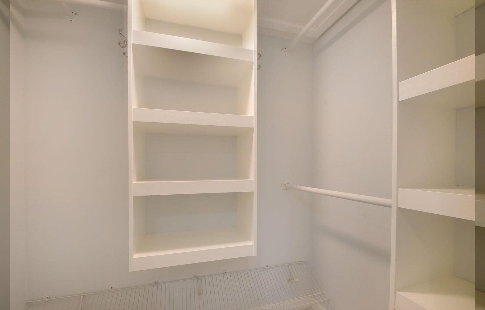 - Built-in Shelving, Entry Level Living Area, Kitchen Island, Walk-In Closet(s), Storage, Tub Shower, Primary Downstairs, Sitting Area In Primary Bedroom
