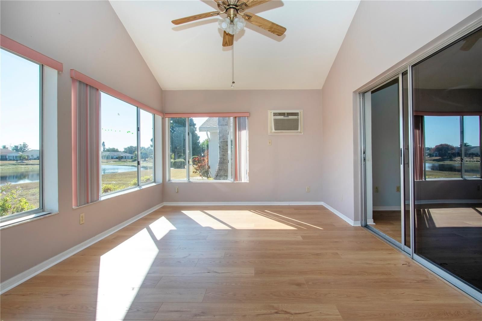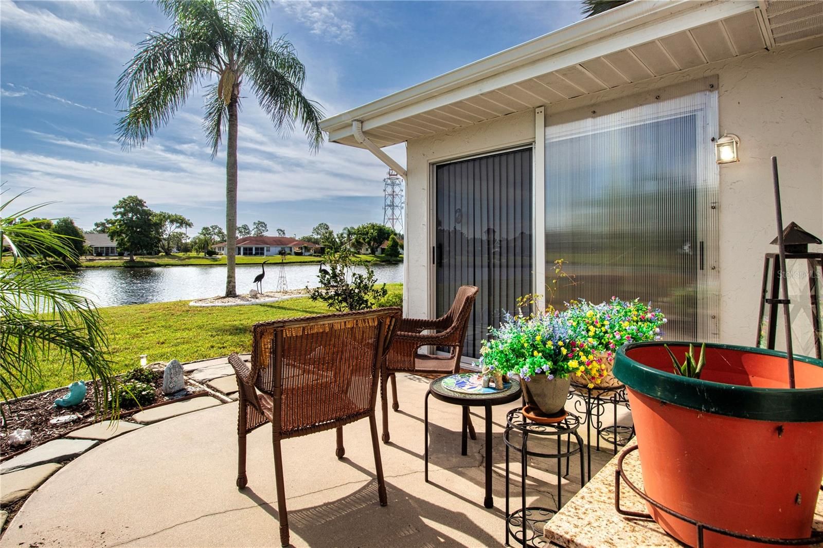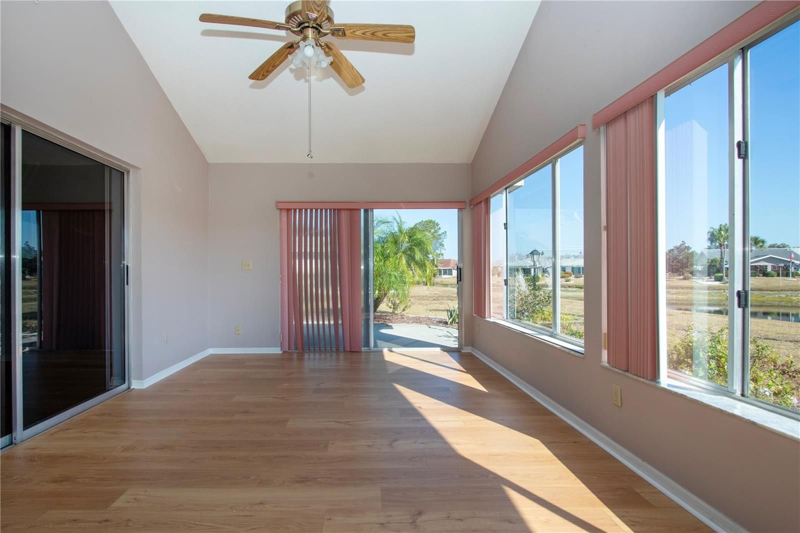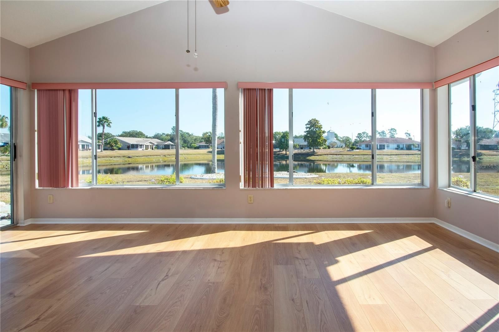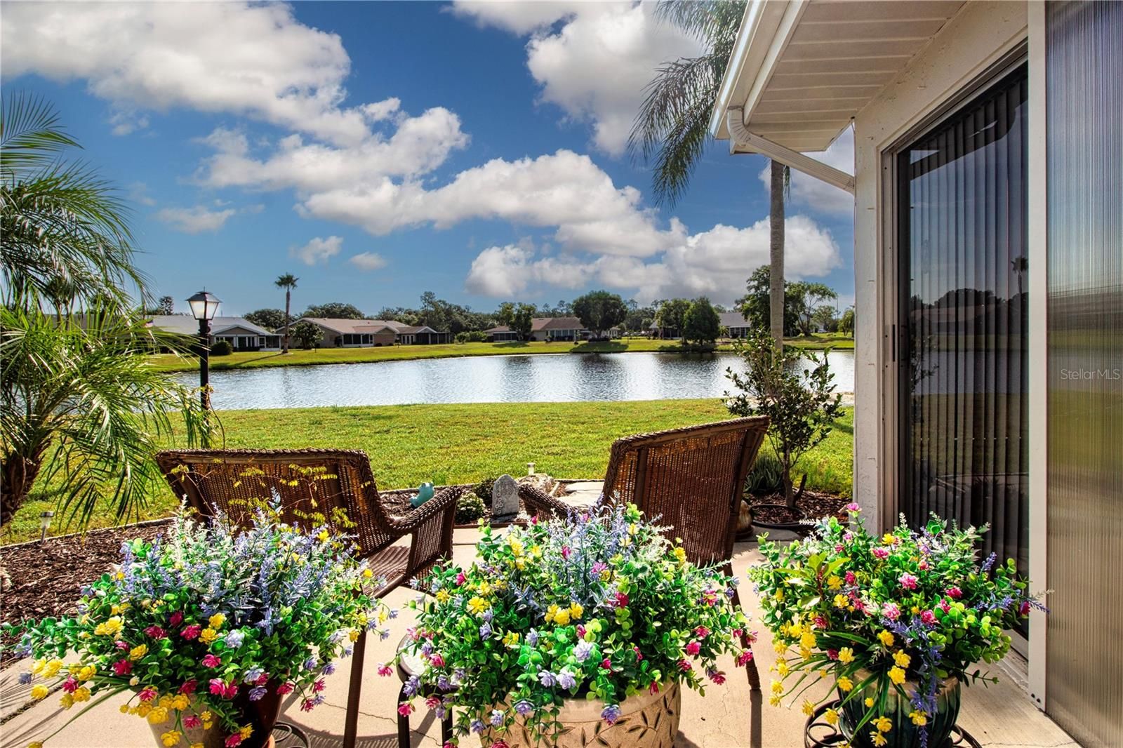 Look!! A newly painted drive and porch on this lovely twin tree model not only with a beautiful water view, but the assumption of a VA loan at 2.75% may also be possible!! The home features a newly painted spacious living room/dining room combo with plantation shutters, neutral decor and brand new laminate flooring! The attractive, efficiently designed kitchen presents nice countertops, newer appliances, recessed lighting, new flooring, a breakfast bar and plenty of cabinet space! The kitchen opens to a family room which overlooks the water and provides access to a large air conditioned Florida room with vaulted ceiling and an additional AC unit. This room also has brand new laminate flooring. From here you can relax and enjoy the water view and watch all of the Florida wildlife! There is also a very nicely landscaped outside patio where you can relax, use your grill and/or entertain guests. The home features a split floor plan with two master suites. The primary master is very private and has its own en suite bath with shower, double sinks and a linen closet. The second suite is very cozy and has an adjacent bath complete with a tub and shower and also has a large linen closet. Add to this a full two car garage and hurricane shutters for all of the windows, and a reverse osmosis system. View this home today and make it your own piece of paradise.