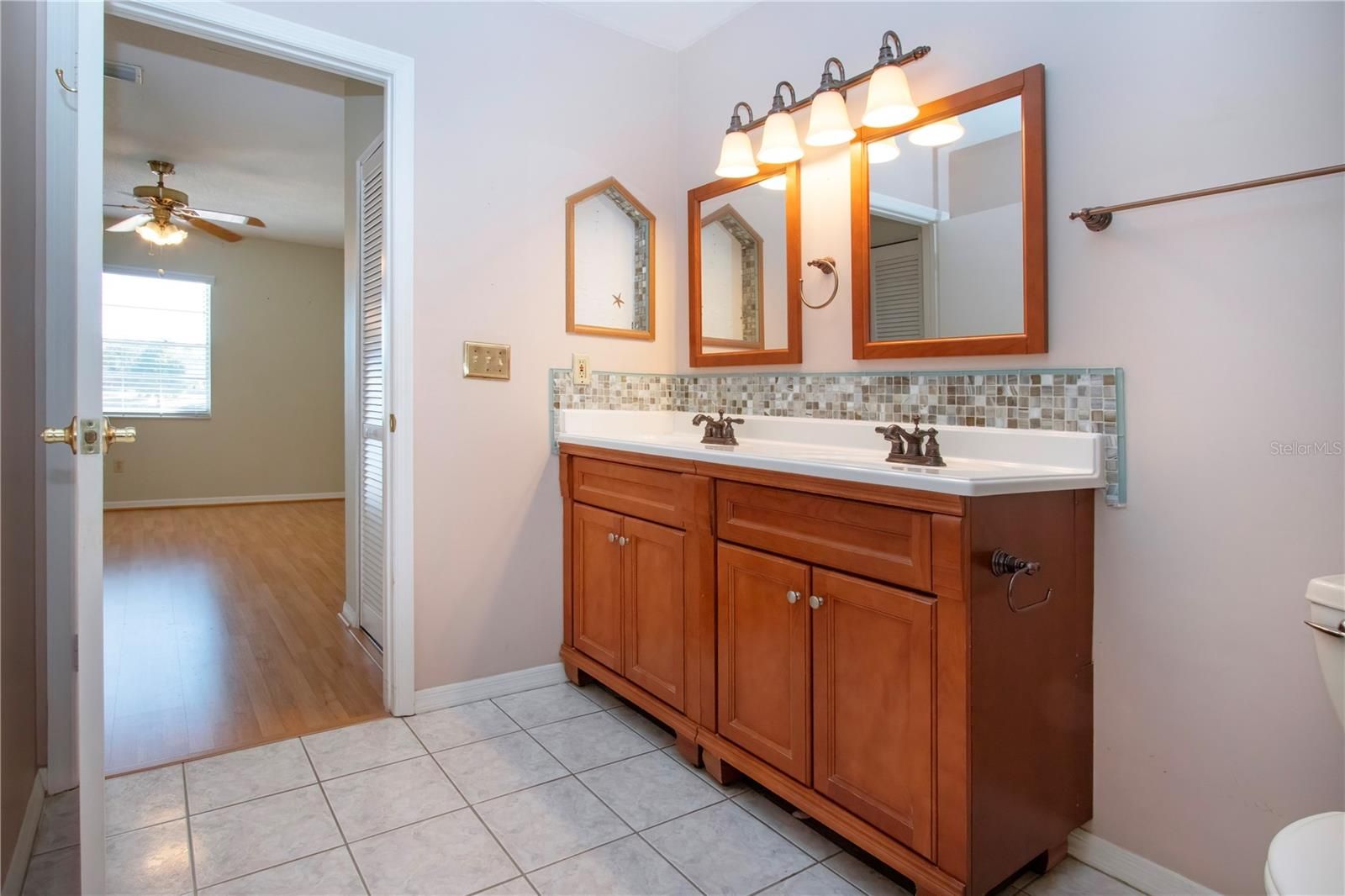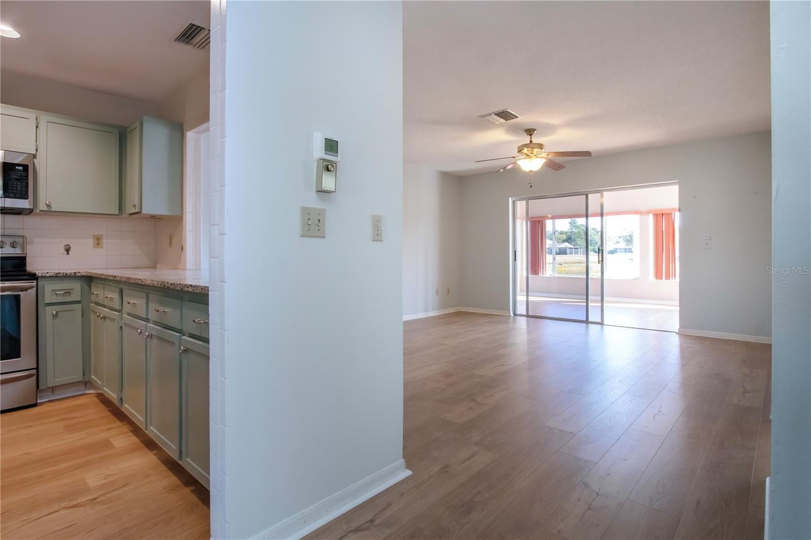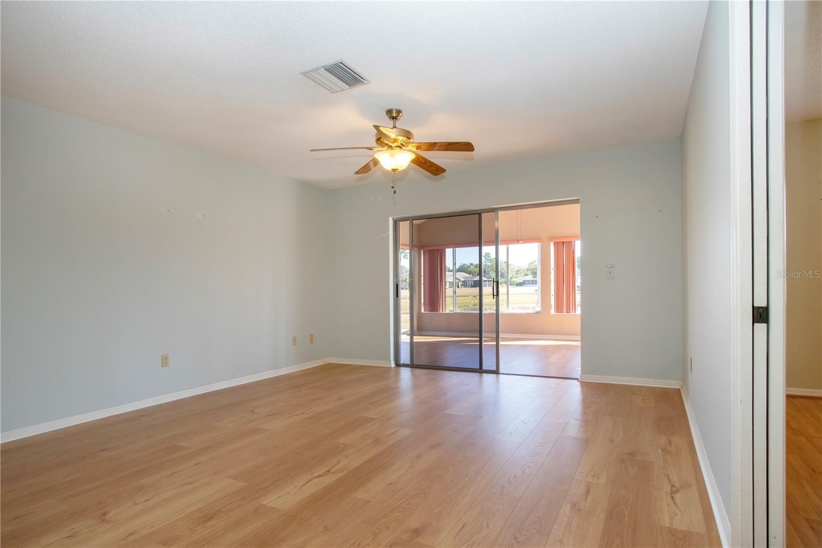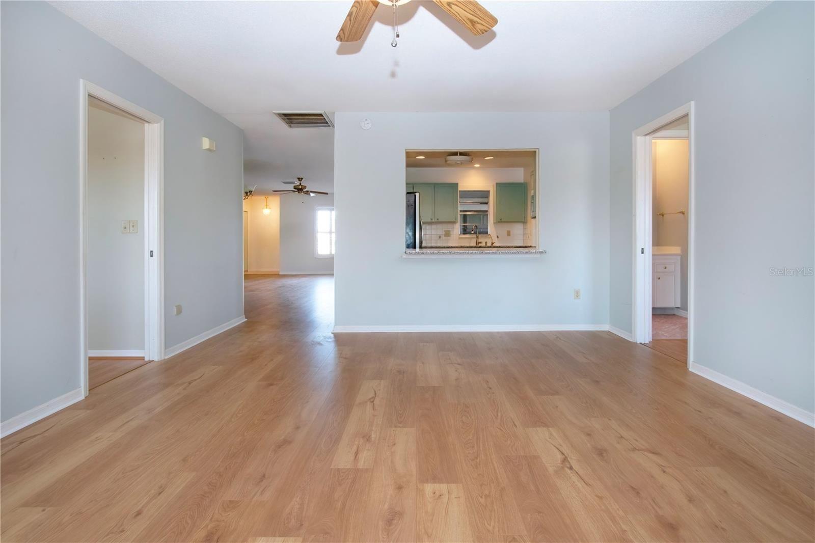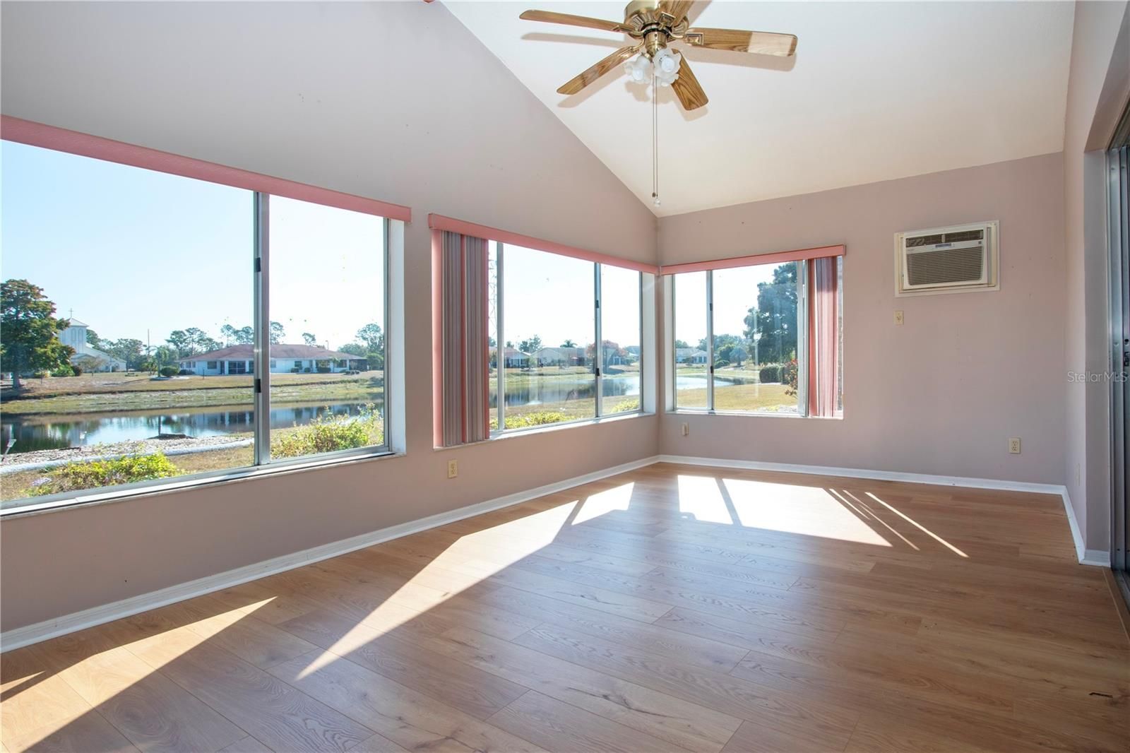 Look!! A newly painted drive and porch on this lovely twin tree model not only with a beautiful water view, but the assumption of a VA loan at 2.75% may also be possible!! The home features a newly painted spacious living room/dining room combo with plantation shutters, neutral decor and brand new laminate flooring! The attractive, efficiently designed kitchen presents nice countertops, newer appliances, recessed lighting, new flooring, a breakfast bar and plenty of cabinet space! The kitchen opens to a family room which overlooks the water and provides access to a large air conditioned Florida room with vaulted ceiling and an additional AC unit. This room also has brand new laminate flooring. From here you can relax and enjoy the water view and watch all of the Florida wildlife! There is also a very nicely landscaped outside patio where you can relax, use your grill and/or entertain guests. The home features a split floor plan with two master suites. The primary master is very private and has its own en suite bath with shower, double sinks and a linen closet. The second suite is very cozy and has an adjacent bath complete with a tub and shower and also has a large linen closet. Add to this a full two car garage and hurricane shutters for all of the windows, and a reverse osmosis system. View this home today and make it your own piece of paradise.