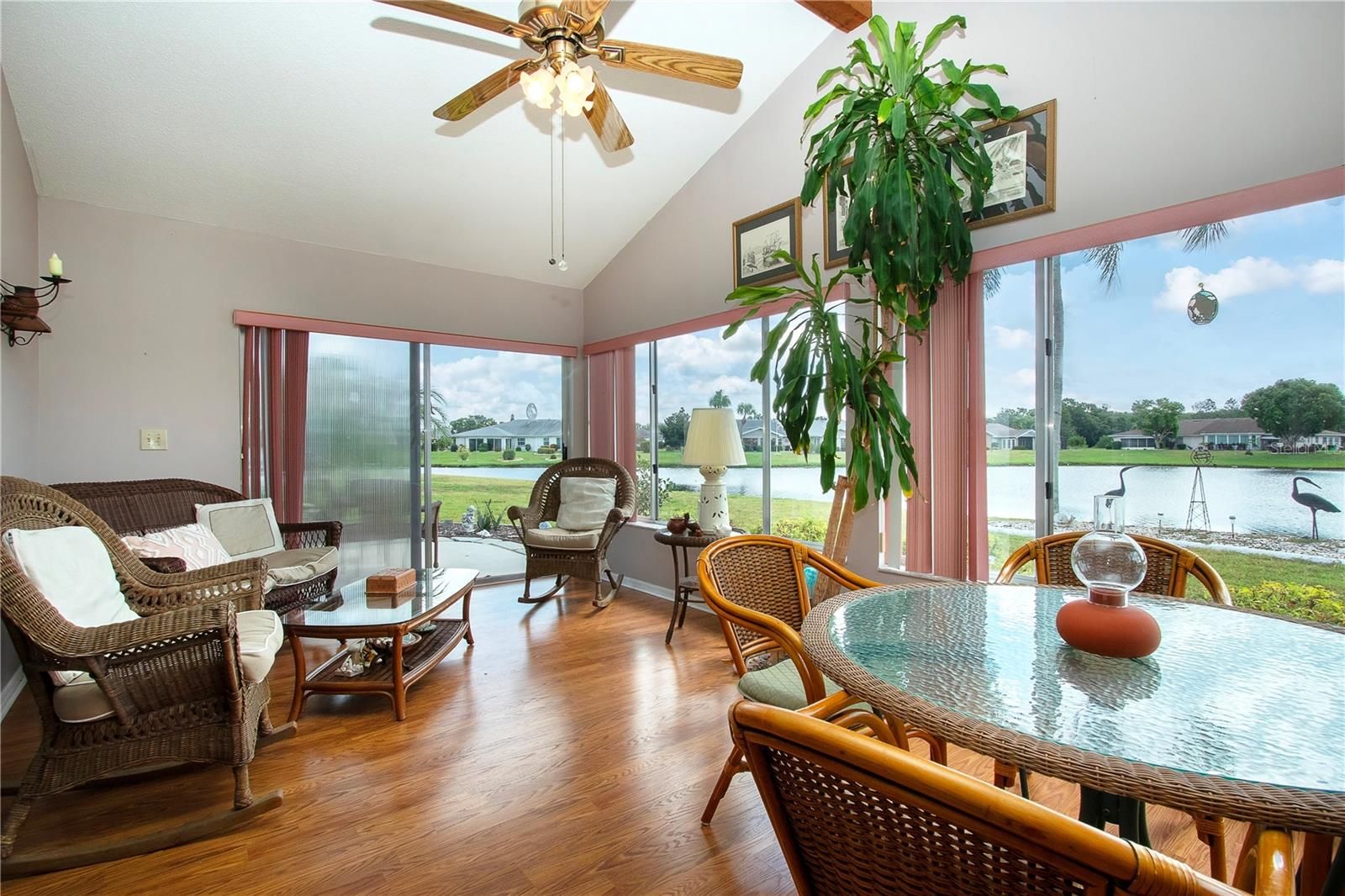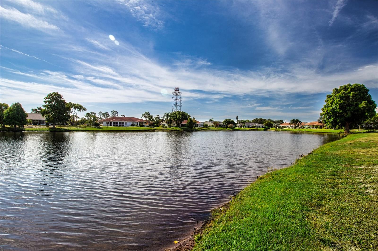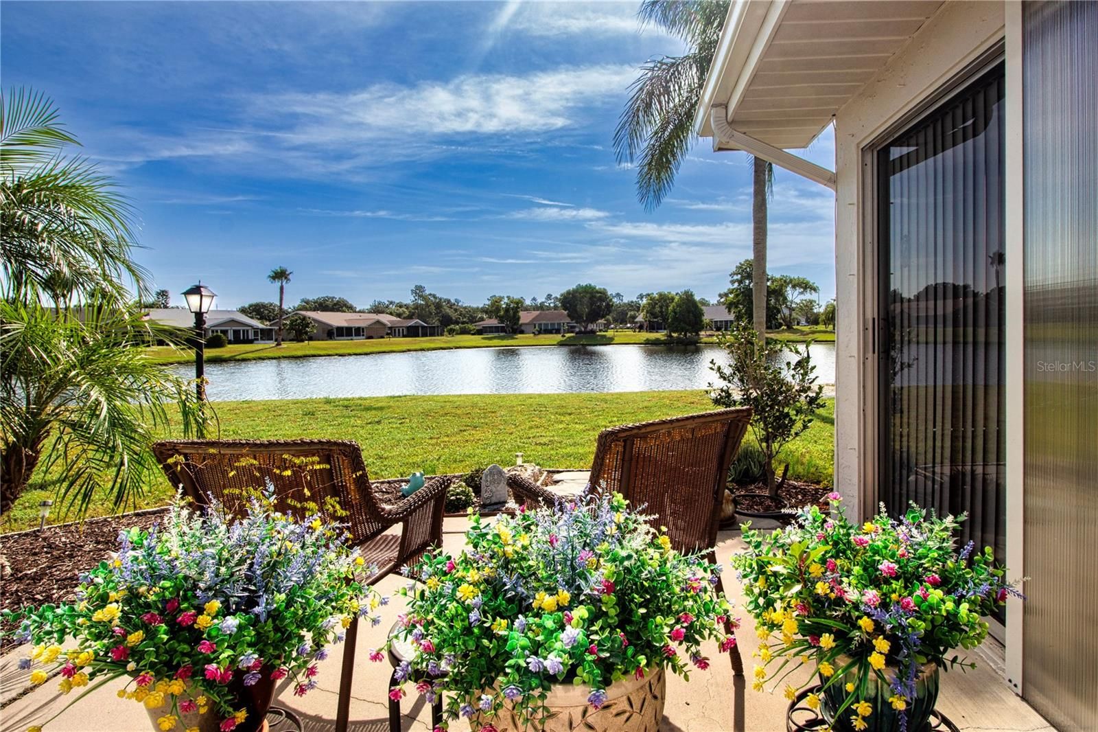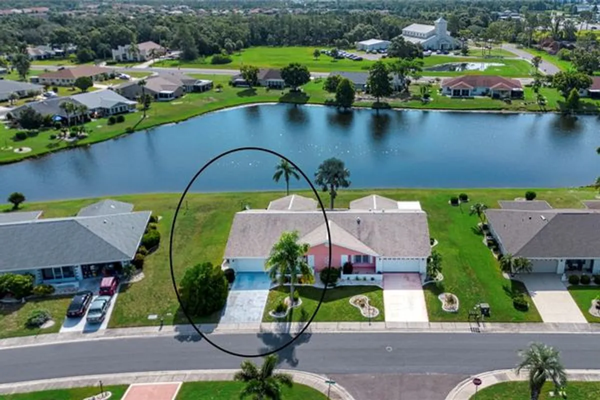 This home is a lovely twin tree model not only with a beautiful water view, but the assumption of a VA loan at 2.75% may also be possible!! The home features a spacious living room/dining room combo with plantation shutters, neutral decor and brand new laminate flooring! The attractive, efficiently designed kitchen presents nice countertops, newer appliances, recessed lighting, new flooring, a breakfast bar and plenty of cabinet space! The kitchen opens to a family room which overlooks the water and provides access to a large air conditioned Florida room with vaulted ceiling and an additional AC unit. This room also has brand new laminate flooring. From here you can relax and enjoy the water view and watch all of the Florida wildlife! There is also a very nicely landscaped outside patio where you can relax, use your grill and/or entertain guests. The home features a split floor plan with two master suites. The primary master is very private and has its own en suite bath with shower, double sinks and a linen closet. The second suite is very cozy and has an adjacent bath complete with a tub and shower and also has a large linen closet. Add to this a full two car garage and hurricane shutters for all of the windows, and a reverse osmosis system. View this home today and make it your own piece of paradise.