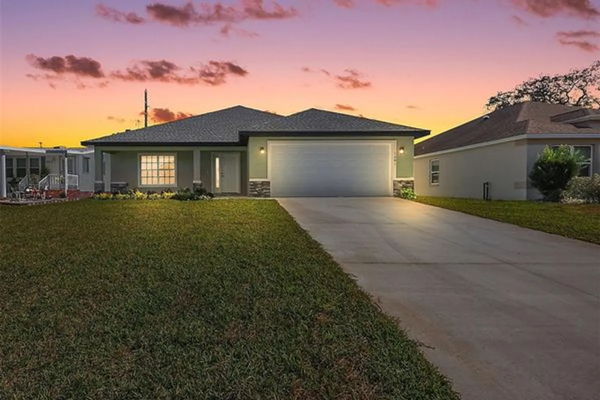 FRESH, MODERN, and MOVE-IN READY - THIS STUNNING, NEW CONSTRUCTION HOME (2025) IS WAITING FOR IT’S FIRST OWNER! Thoughtfully designed with CONTEMPORARY finishes, EXCEPTIONAL craftsmanship, and TIMELESS details this GORGEOUS 3/2 Monarch II, located in the highly desirable Village of Silver Lake, offers comfort, style, and functionality throughout! JUST MINUTES from Spanish Springs Town Square with shopping, dining, and live nightly entertainment! The IMPRESSIVE exterior showcases STRIKING STONE ACCENTS and a QUAINT FRONT PORCH - the perfect spot to RELAX and ENJOY the BEAUTIFUL Florida weather! A side-lit entry door welcomes you into the foyer featuring a convenient ENTRY CLOSET. The SPECTACULAR OPEN CONCEPT LAYOUT of the living, dining, and kitchen areas is highlighted by a unified HIGH TRAY ceiling, creating an ELEVATED and SPACIOUS feel. MODERN, GREIGE, PLANK-STYLE flooring and CONTEMPORARY lighting fixtures and ceiling fans flow seamlessly from room to room. The gourmet kitchen offers a perfect blend of beauty and efficiency boasting ELEGANT, XTERRA BLUE, SHAKER cabinetry; SLEEK, GRANITE countertops; STAINLESS appliances; PANTRY closet; and an EXPANSIVE, COUNTER-HEIGHT, CENTER ISLAND with additional cabinetry, prep space, and EAT-IN seating area. The adjacent dining room offers EASY ACCESS to the rear lanai through sliding glass doors. This FANTASTIC extended living space offers the Ideal area for RELAXING with your morning coffee or ENJOYING fun-filled OUTDOOR ENTERTAINING with friends and family! Back inside, the LUXURIOUS primary bedroom features a TRAY ceiling, two windows for NATURAL LIGHT, and a WALK-IN closet. It’s en-suite bathroom showcases XTERRA BLUE, SHAKER cabinetry, GRANITE countertops, DOUBLE sinks, a TILED WALK-IN shower, and an ADDITIONAL hallway STORAGE closet just outside the suite. Bedrooms two and three are located in a PRIVATE separate corridor, each offering built-in closets and convenient access to the home’s second full bathroom. This bathroom is finished with an XTERRA BLUE, SHAKER vanity with GRANITE top, a TILED tub/shower combination, and a hallway LINEN closet. The INTERIOR LAUNDRY room provides both functionality and convenience with a UTILITY SINK and SHELVING, and offers direct access to the two-car garage boasting PLENTY of room for parking and storage! DON’T MISS YOUR OPPORTUNITY - BE THE FIRST TO CALL THIS INCREDIBLE NEW CONSTRUCTION HOME YOUR OWN! The Village of Silver Lake is IDEALLY LOCATED JUST MINUTES from Spanish Springs Town Square with shopping, dining, and live nightly entertainment! Close to Orange Blossom Country Club; Hilltop and Silver Lake Executive Golf Courses; Paradise Regional Recreation Center; and Silver Lake Village Recreation Center; ONLY MINUTES from Hwy 441/27 boasting an abundance of stores, restaurants, banks, medical, and more! PLEASE WATCH OUR WALKTHROUGH VIDEO of this FABULOUS NEW CONSTRUCTION HOME in a FANTASTIC LOCATION and call today to schedule your Private Showing or Virtual Tour!