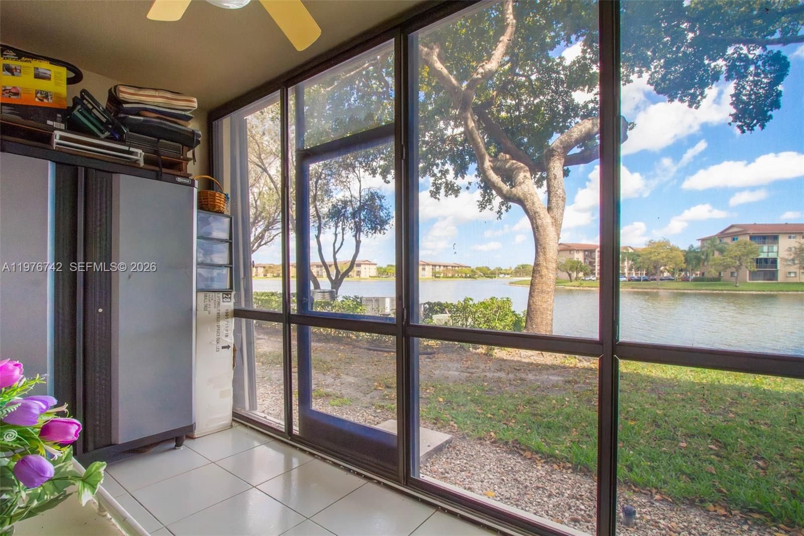 Welcome to Century Village of Pembroke Pines — where resort-style living meets everyday comfort! This beautifully maintained lake front 2/2 is move-in ready and checks every box. Your parking spot is J20, literally steps from the walkway & your front door. Featuring full hurricane accordion shutters throughout for year-round peace of mind, the unit has been lovingly cared for and shows true pride of ownership. Spacious walk in closets in both bedrooms plus room for a sofa in the primary suite! Your porch has a protective cover on the screens to keep rain out allowing for beautiful & comfy furniture on the patio. Another added feature is the washer/dryer inside your condo. Century Village of Pembroke Pines is one of South Florida's premier 55+ communities, offering an unmatched array of amenities including a clubhouse, multiple pools, including an indoor heated pool, tennis & pickleball courts, fitness center, on-site entertainment in Broadway like theater, & a full social calendar that keeps life vibrant and active. With 24-hour gated security and beautifully landscaped grounds, you'll feel at ease from the moment you arrive. Ideally located in the heart of Pembroke Pines, you're just minutes from top-rated shopping, dining, medical facilities, and major highways. Whether you're looking for a full-time residence or a seasonal retreat, this gem offers the perfect blend of comfort, convenience, and community. Seize this opportunity — units like this don't last long!
