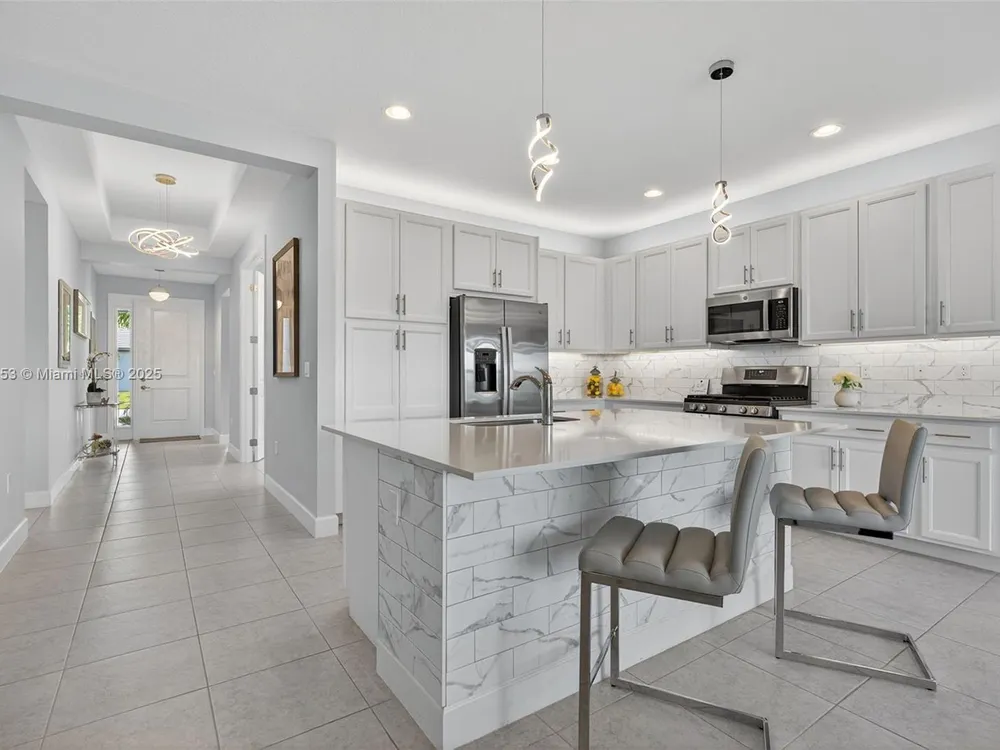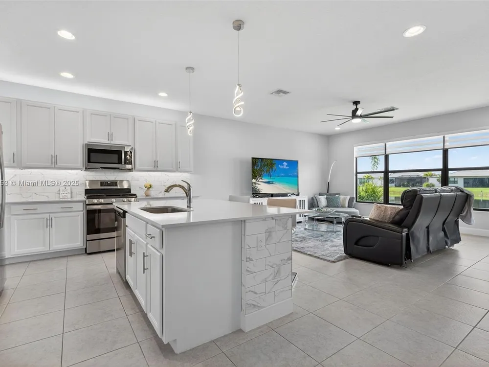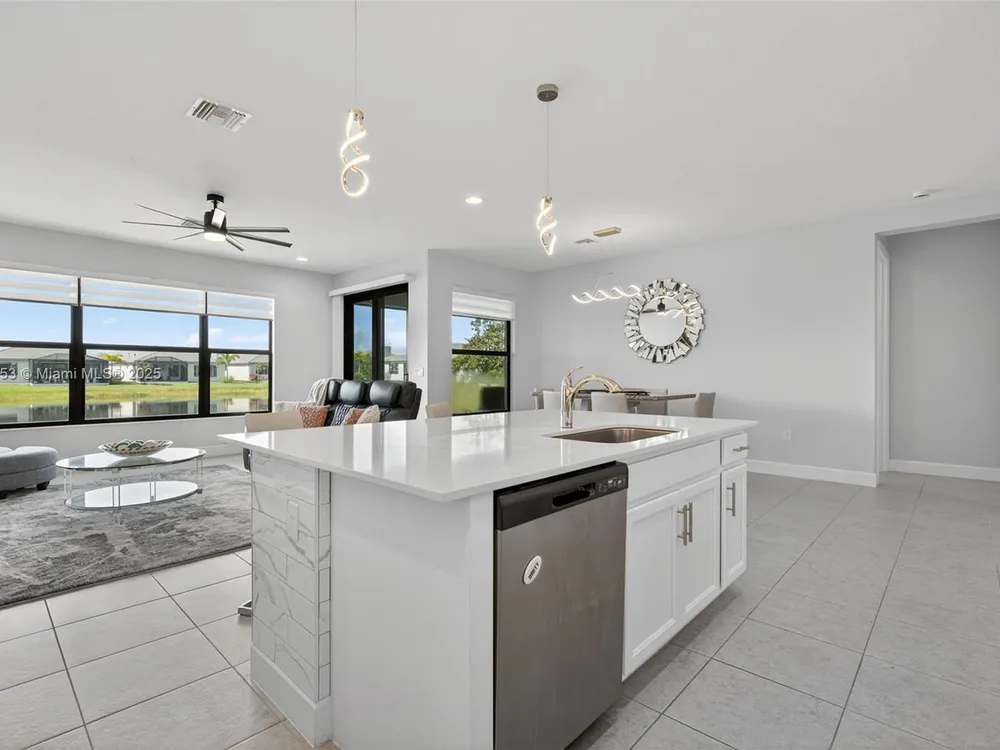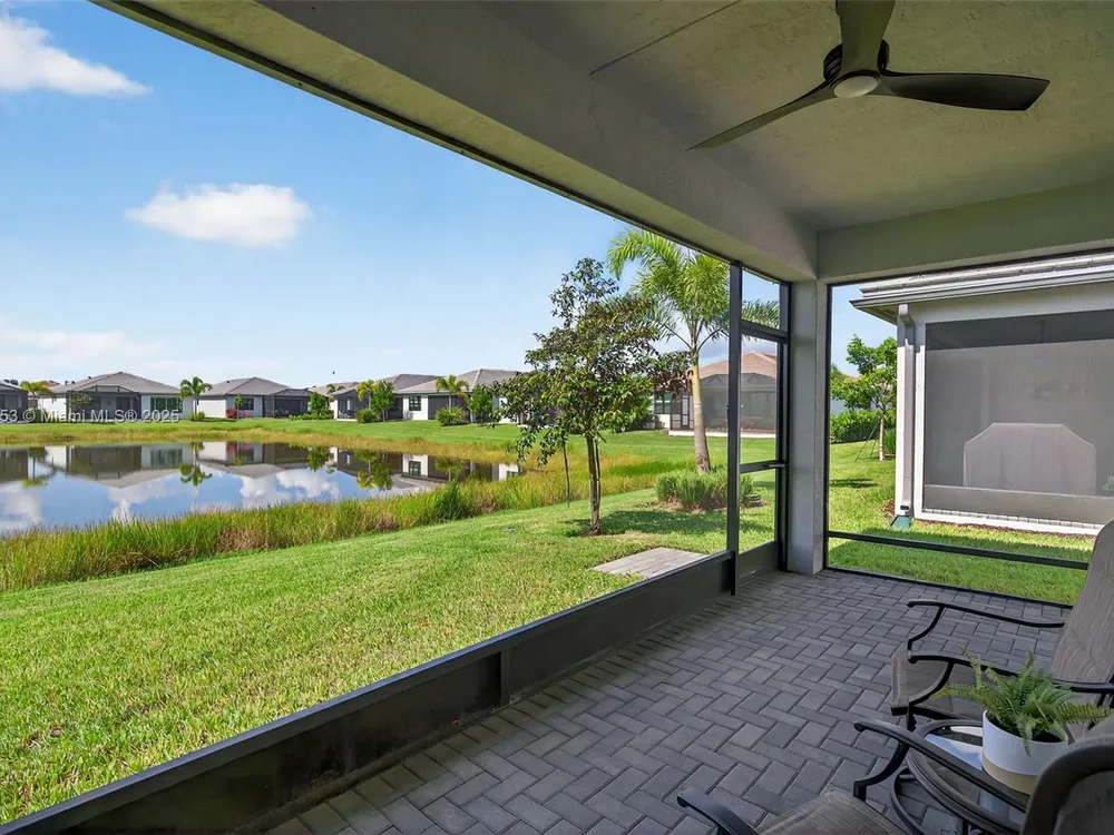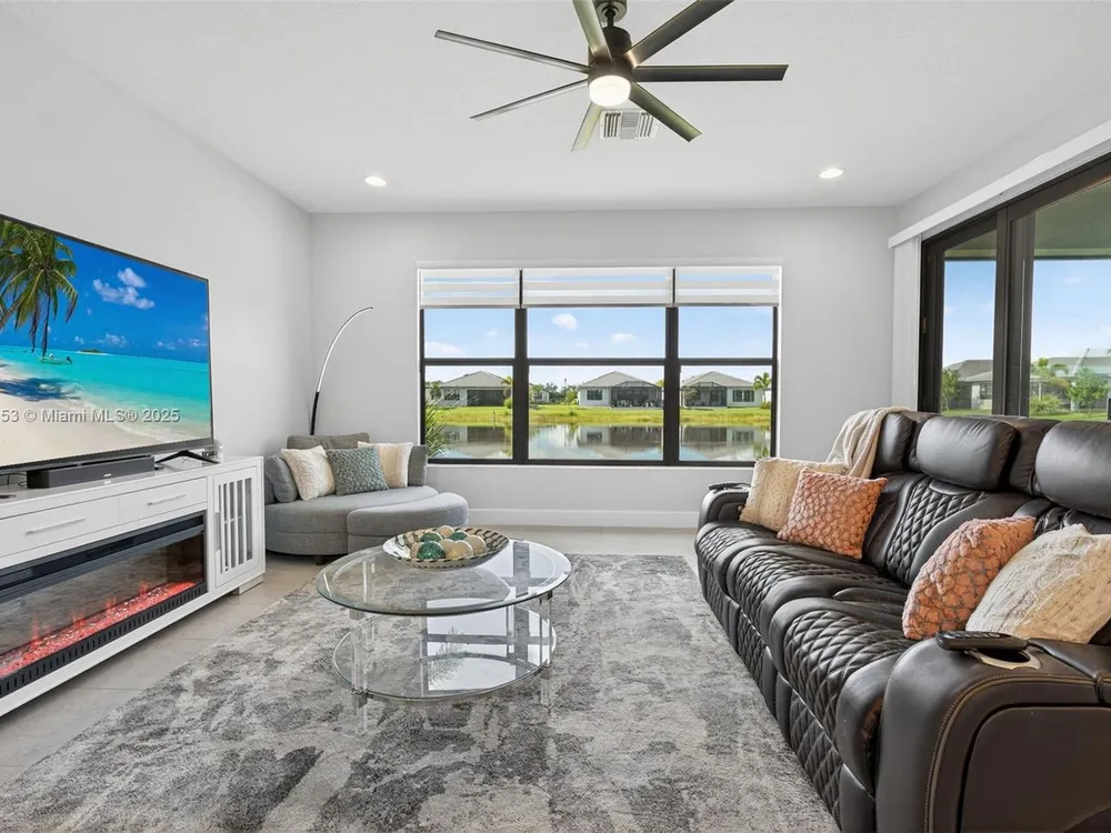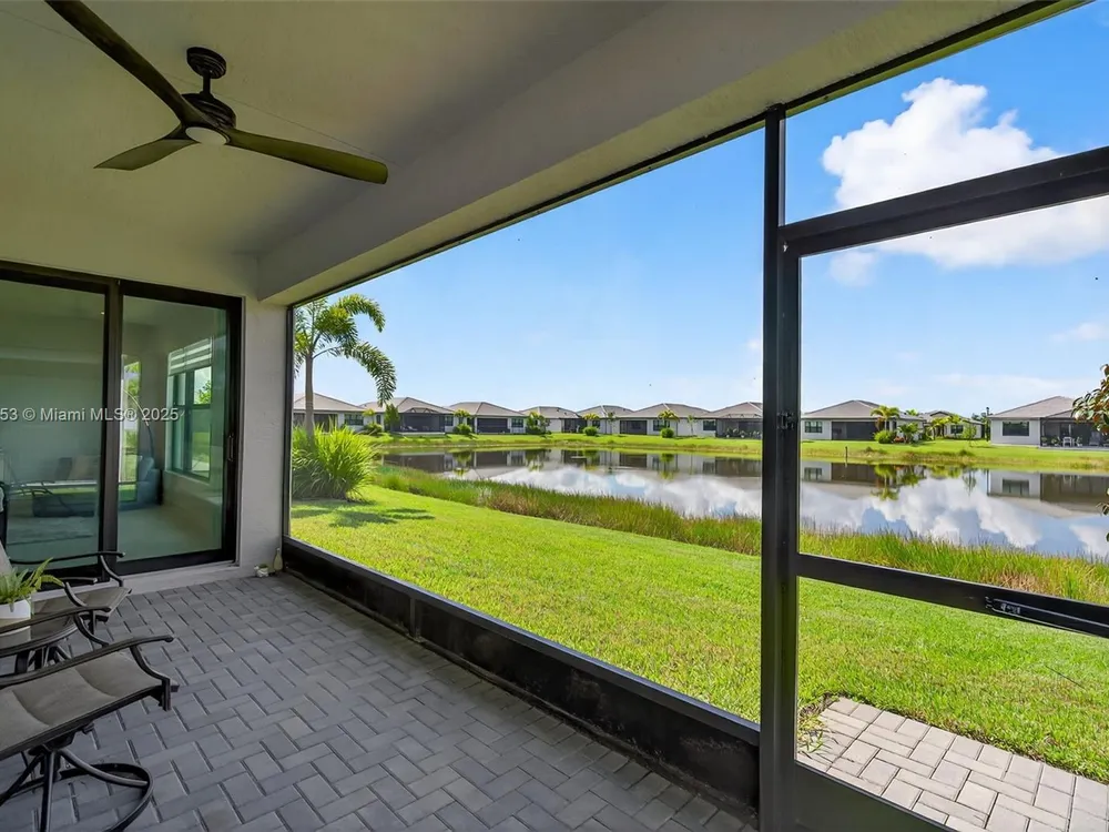 Come tour this beautiful Sanderling model in the coveted Valencia Walk at Riverland! Step inside to find sleek tile floors throughout and stunning lake views that set the scene for true Florida living. The chef’s kitchen wows with a tiled backsplash, coordinating island, built-in pantry, and upgraded cabinetry. Bathrooms shine with designer tile, upgraded finishes, and an upgraded secondary shower. Custom blinds, chic lighting, and a private easement lot make this home a standout. Don’t wait—come live the Riverland Lifestyle today!