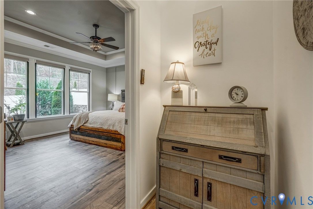 Welcome to 12015 Talavera Terrace in the highly sought-after Mosaic at West Creek, Manakin Sabot's premier 55+ community! Every detail of this exceptional townhome has been thoughtfully designed, with upgrades in every single room. From the moment you arrive, you’ll notice the care and craftsmanship that make this home truly stand out—inside and out. The outdoor spaces offer a peaceful retreat featuring a fully fenced yard, meticulously maintained gardens, a built-in grill, and a screened porch upgraded to a true three-season room for year-round enjoyment. Inside, you’ll find elegant living spaces enhanced by upgraded lighting, crown molding, and window treatments throughout. The family room features a tray ceiling and a shiplap fireplace that ties seamlessly to the kitchen’s custom range hood and island—design details carried throughout the home. The kitchen shines with quartz countertops, a spacious island, and a pantry with custom built-in shelving. Each bedroom includes a ceiling fan, crown molding, and a decorative accent wall. Every element has been intentionally designed—down to the upgraded light switches and dimmers that create the perfect ambiance in every space. The primary suite offers a spa-like bath with dual vanities and a large walk-in closet complete with a custom closet system. Upstairs, a 31’ x 12’ walk-in attic with built-in shelving provides an impressive amount of storage. Additional highlights include gutter guards, glass storm doors on the front and back, a custom laundry room and drop zone with wainscoting and storage drawer. No detail has been overlooked—this home offers luxury, privacy, and comfort at every turn. Residents have access to the Connexion Clubhouse, fitness center, yoga studio, gathering areas, a salt-treated pool and hot tub, and pickleball courts. The community also features trails, a full-size dog park, and The Conservatory with year-round activities--don’t miss your chance to live in one of Goochland’s most desirable communities!