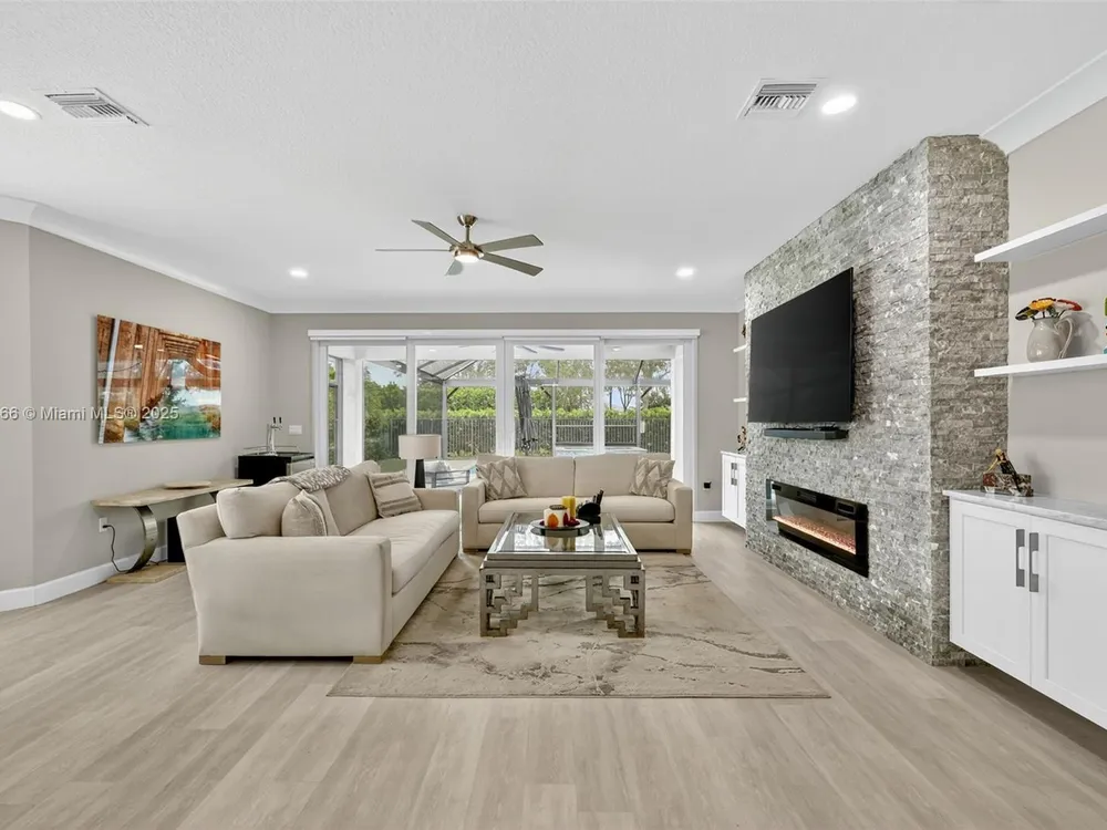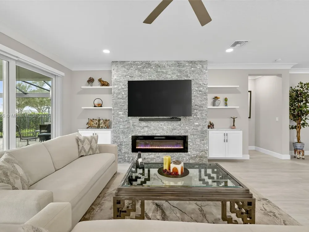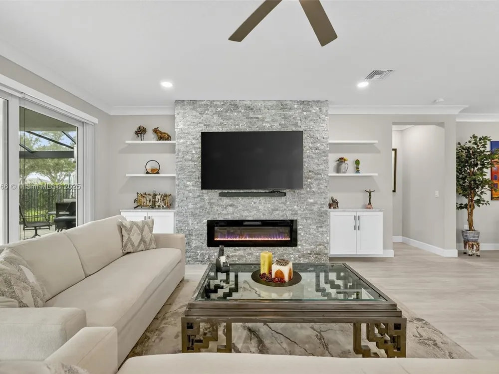 Discover this rarely available Atlantica model pool home—an exceptional home designed for style, comfort, and privacy. Enjoy your screened pool and lanai overlooking the scenic Paseo with no homes behind you. Inside, you’ll find a stunning stone wall with fireplace, a reimagined island with microwave drawer, a custom kitchen with marble countertops, and a luxurious primary bath featuring leathered granite. Designer wallpaper, elegant finishes, and countless upgrades make this custom home a true standout. Don’t miss your chance with this one!