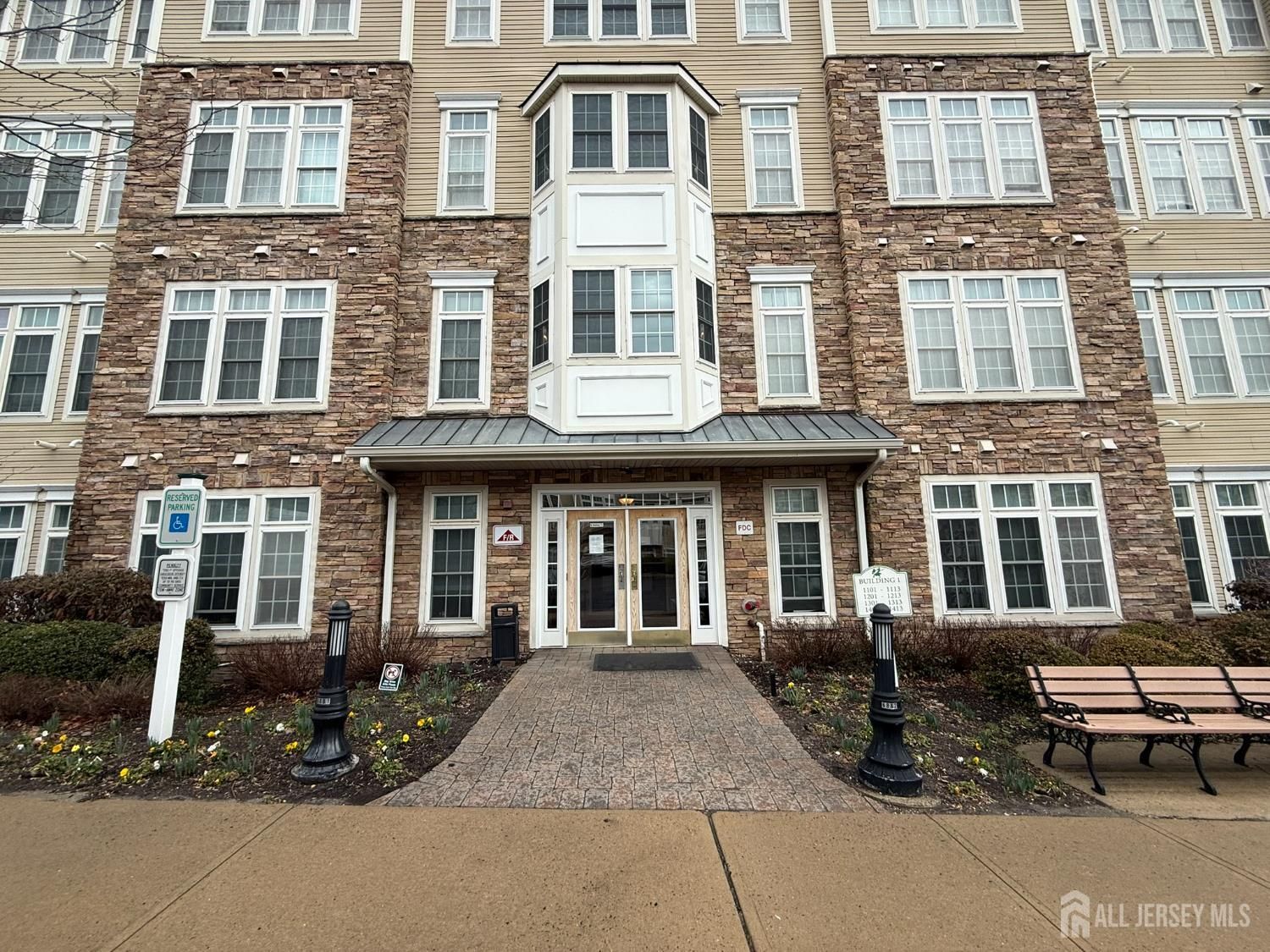 Welcome to luxury living in this prestigious 55+ gated community in desirable East Brunswick. This rare, one-of-a-kind corner Farrington Model on the second floor is in mint, move-in condition and offers an exceptional blend of elegance and comfort. This beautifully designed home features 2 spacious bedrooms, 2 full bathrooms, and a versatile library/den. A welcoming foyer leads to the elegant Great Room, highlighted by a dramatic wall of windows that fills the space with natural light. The custom-designed kitchen showcases ceiling-height cabinetry, stainless steel appliances, granite countertops and backsplash, and a convenient breakfast bar, perfect for everyday living and entertaining. The kitchen flows seamlessly into the stunning hexagonal formal dining room, creating a sophisticated space for gatherings. The luxurious primary suite features a California-style walk-in closet and a spa-inspired en-suite bathroom with a double step-in shower, exquisite tile work, and dual shower heads. Throughout the home you'll find numerous upgrades, including dark oak engineered hardwood floors, custom millwork, ceramic tile, recessed lighting, and stunning Venetian plaster walls. Crystal sconces and designer lighting add a refined touch, creating a truly elegant and inviting atmosphere. Residents enjoy access to a fabulous clubhouse offering resort-style amenities including a fitness center, saunas, billiards, heated outdoor pool and spa, bocce court, putting green, and more. Conveniently located near transportation, shopping, and restaurants, and less than one hour from NYC. Additional features include elevator access, one-car garage, and private storage. Pets are welcome. A truly exceptional home showcasing style, sophistication, and pride of ownership. A must see!