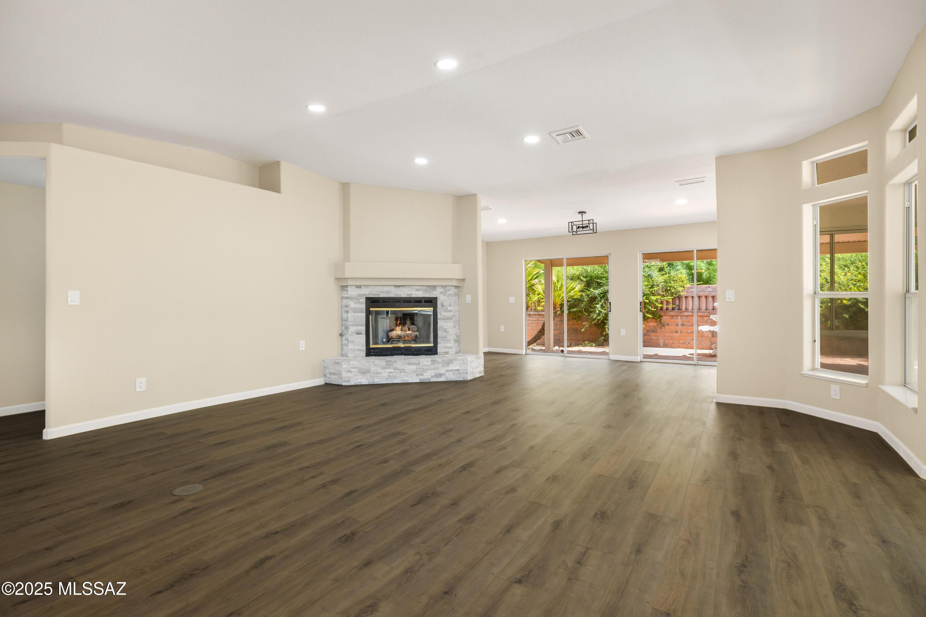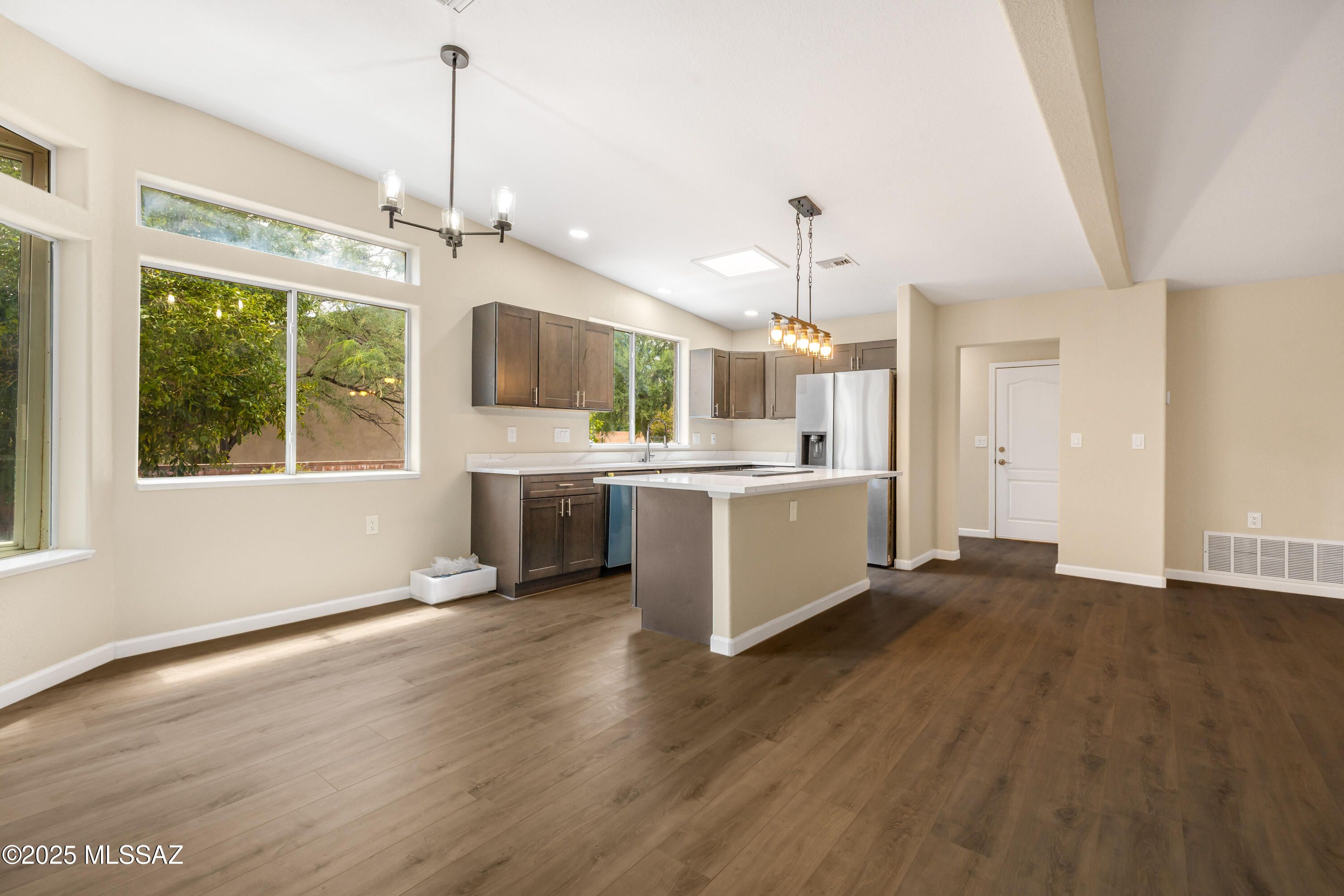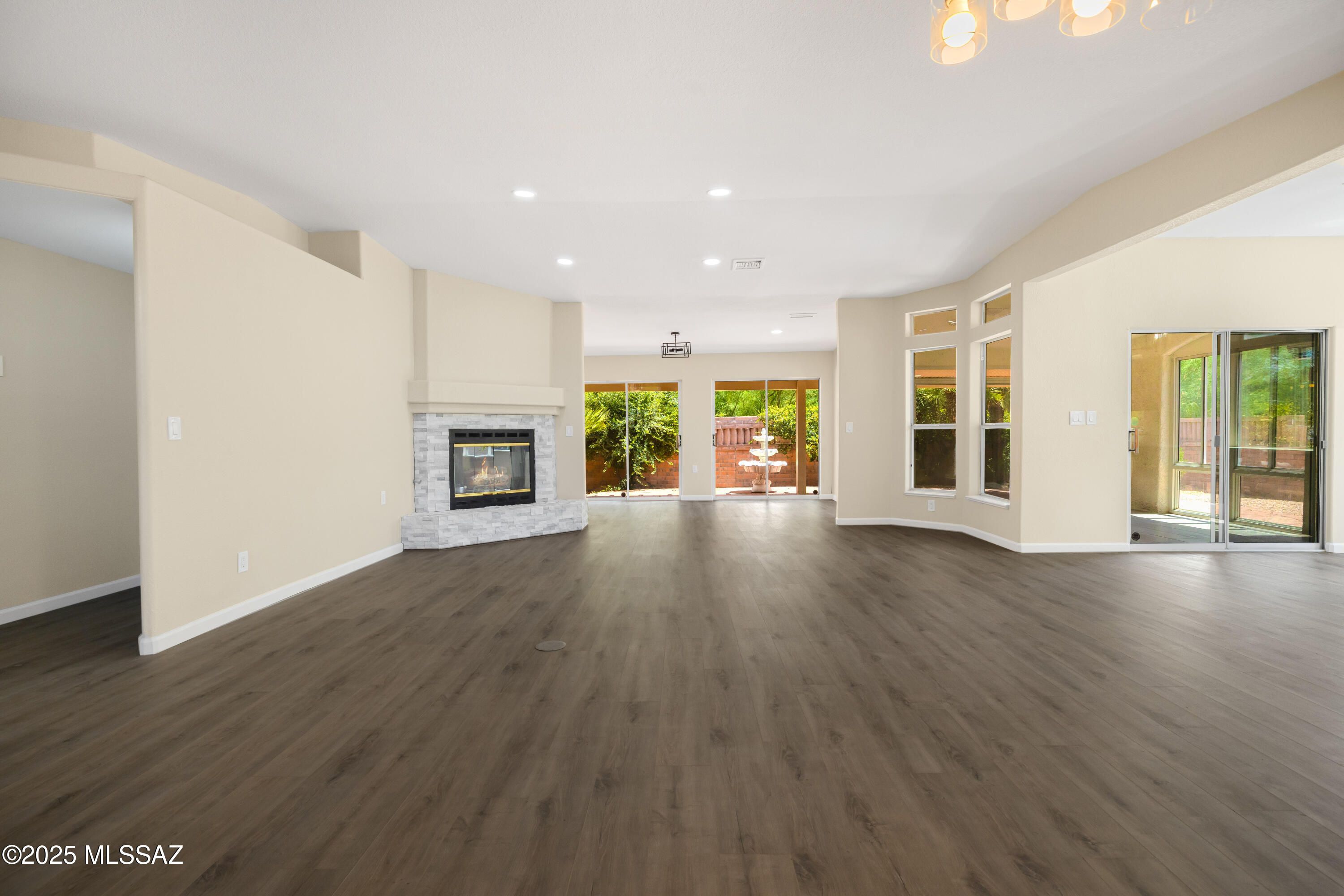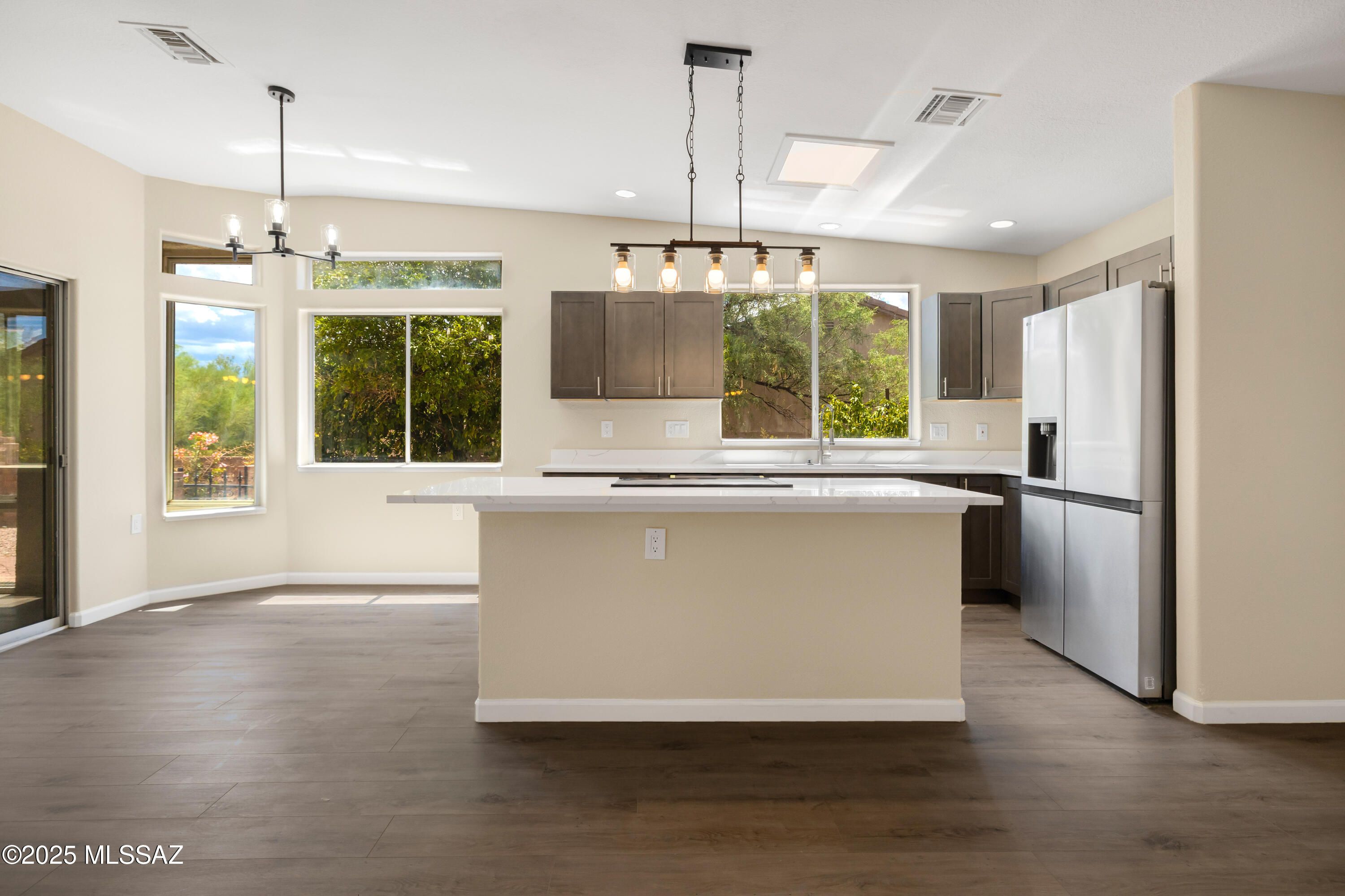 This better-than-new beauty nestled in the desired Country Club Vistas in a premium corner lot awaits you! With modern aesthetics, but keeping all the charm, and manicured landscaping this home is very welcoming. Upon entering the soaring high vaulted ceilings and natural light bathe the home. With many luxurious features such as luxury wood-like flooring, recessed lighting, premium fixtures and a soothing palette. The bright great room sets the tone for family gatherings, and the exposed granite fireplace provides beauty. The gorgeous kitchen featuring plenty of dark wood cabinetry, exquisite Calcutta quartz counters, new high end SS appliances, and a center island adorned w/ pendant light fixtures over the breakfast bar is a chefs dream. With a formal dining space thats ideal for family