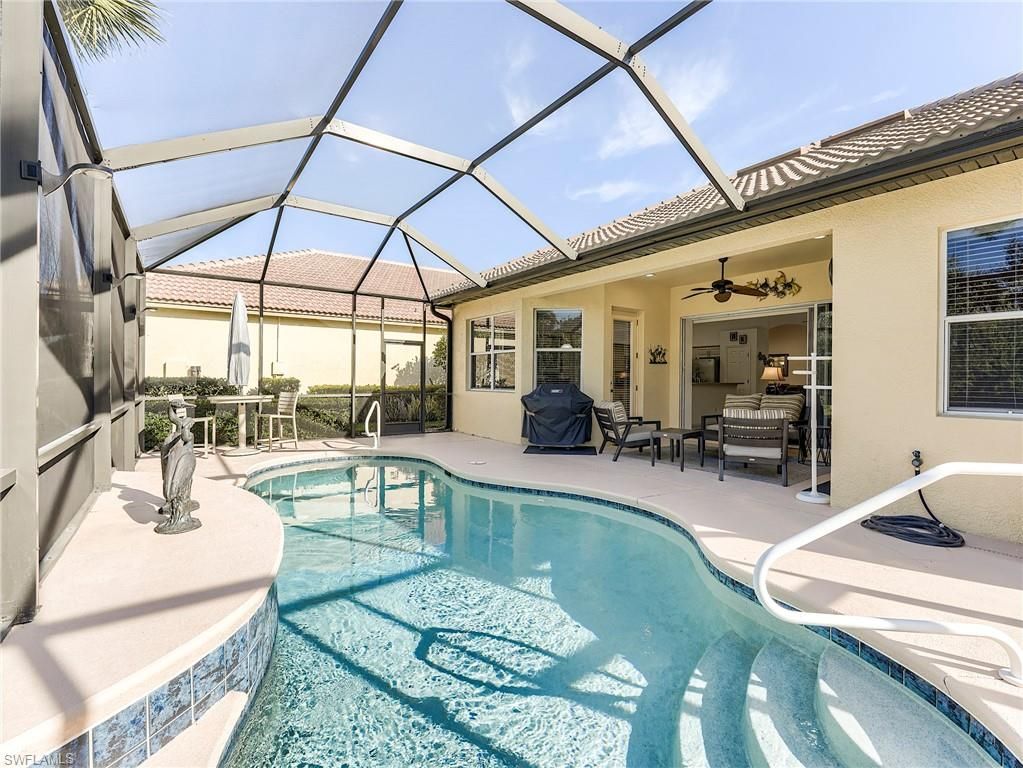 Looking for your own slice of Florida paradise? This 3 bedroom, 3 bathroom home checks all the boxes—and then some. With nearly 2,000 square feet and an open floor plan designed for easy living, this home feels bright, welcoming, and effortlessly functional. The kitchen anchors the great room with stainless steel appliances, solid surface counters, and a reverse osmosis system, making it just as practical as it is inviting. Tile floors in the main living areas keep things cool and low-maintenance, while tray ceilings add a touch of architectural charm. But the real showstopper? Step outside to your private screened lanai, where a heated saltwater pool, above-ground hot tub, and peaceful preserve view set the scene for relaxed afternoons and unforgettable evenings. No rear neighbors—just palm trees, greenery, and total privacy. With a brand new roof and a layout that works for guests, family, or seasonal living, this home is ready to be enjoyed from day one. Located in the highly desirable gated community of Verandah, residents have access to numerous amenities including 36 holes of championship golf, 5 Har-Tru tennis courts, 8 pickleball courts, 2 bocce courts, 2 restaurants, kayaks, 9 miles of walking and biking trails and so much more! Make your appointment to see this one today!