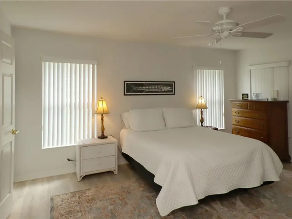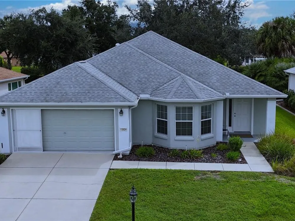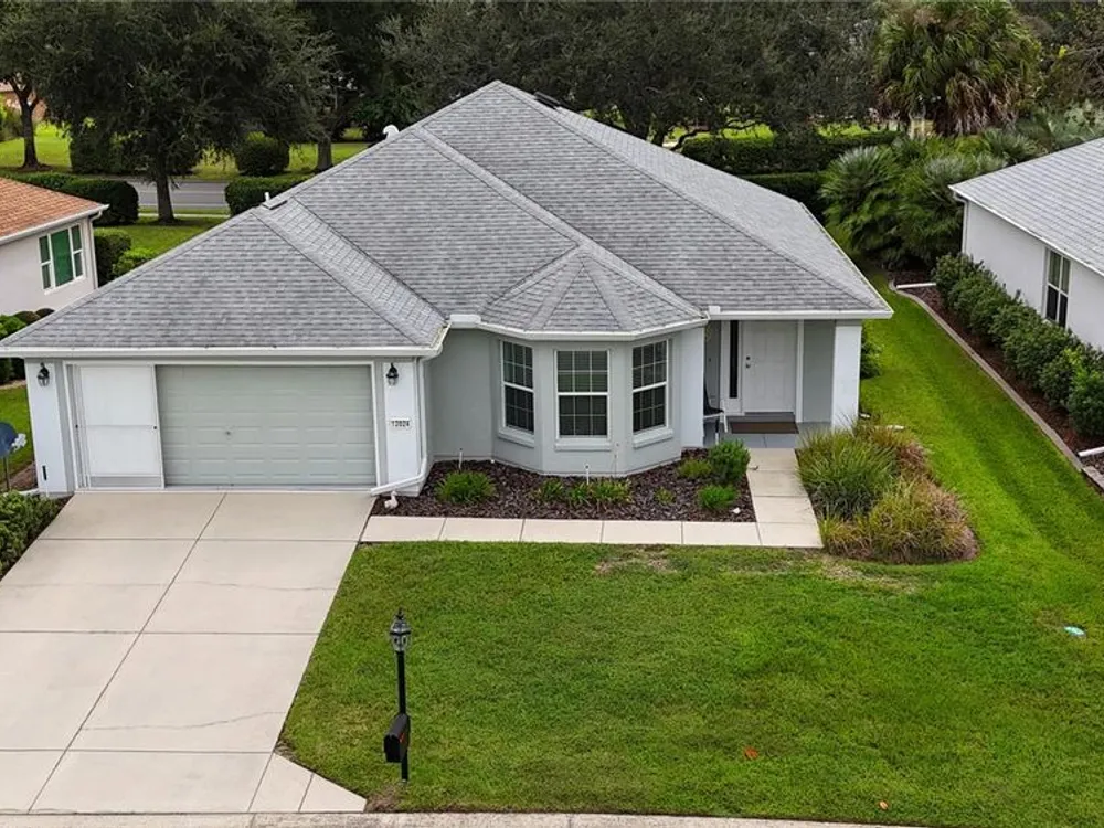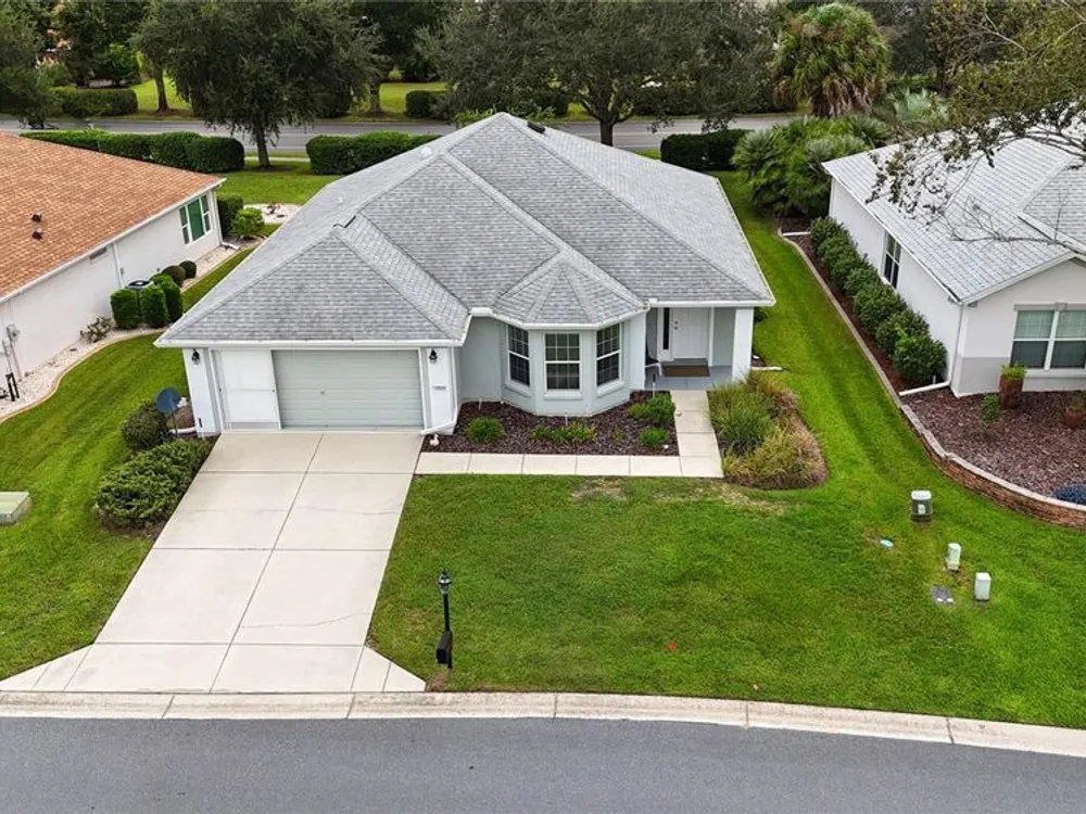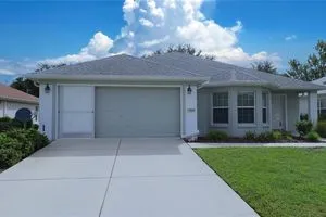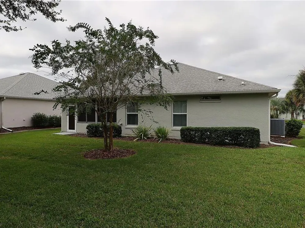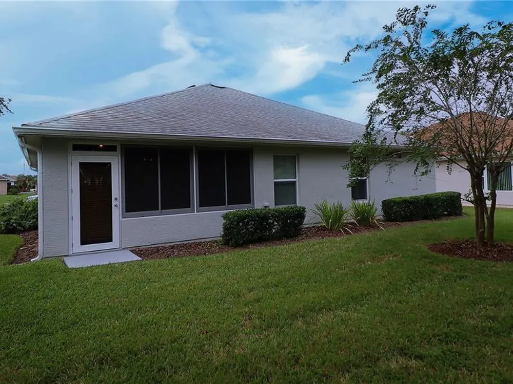 This is a great way to start enjoying the awesome snowbird season in Florida. This concrete block and stucco, 2/2/2 Challedon model fills the bill. Not too big and not too small. Located close to the back gate with access to CR 25. Great front eat-in kitchen with bay window built specifically to house the breakfast table and enjoy watching the world go by. Large double door pantry, Quartz countertops and large bowl sink. Upgraded appliances. Combination living/dining room and is flexible enough to accommodate your needs and wants. Use it as a dining room or as this homeowner is doing, use it as a reading nook. Inside laundry complete with washer and dryer and upper storage cabinetry. Large primary suite (laminate flooring) with en-suite bath (ceramic tile) featuring double raised vanity, large step-in shower, water closet and walk-in closet. Guest room also features laminate flooring. Guest bath has shower/tub combo, raised toilet and raised single sink vanity. Enclosed climate controlled lanai with great eastern exposure with vertical blinds for privacy. Two-car garage has privacy screens and keyless entry. This home has been re-piped in the ceiling and side walls. HVAC 2018. Shingles, gutters and downspouts 2021. Exterior painted 2020. Lots of activities in this community. One can do as much as you want or nothing at all. Completely up to you. Check out our Community Center, Restaurant (Liberty Grill) and the Pro Shop (4 - 9 hole golf courses). Three heated swimming pools, fitness center, pickleball, tennis, softball, bocce, shuffleboard and so much more. Walking trails, sidewalks and dog park. Make this home today.