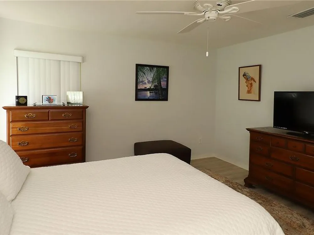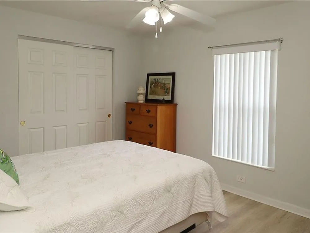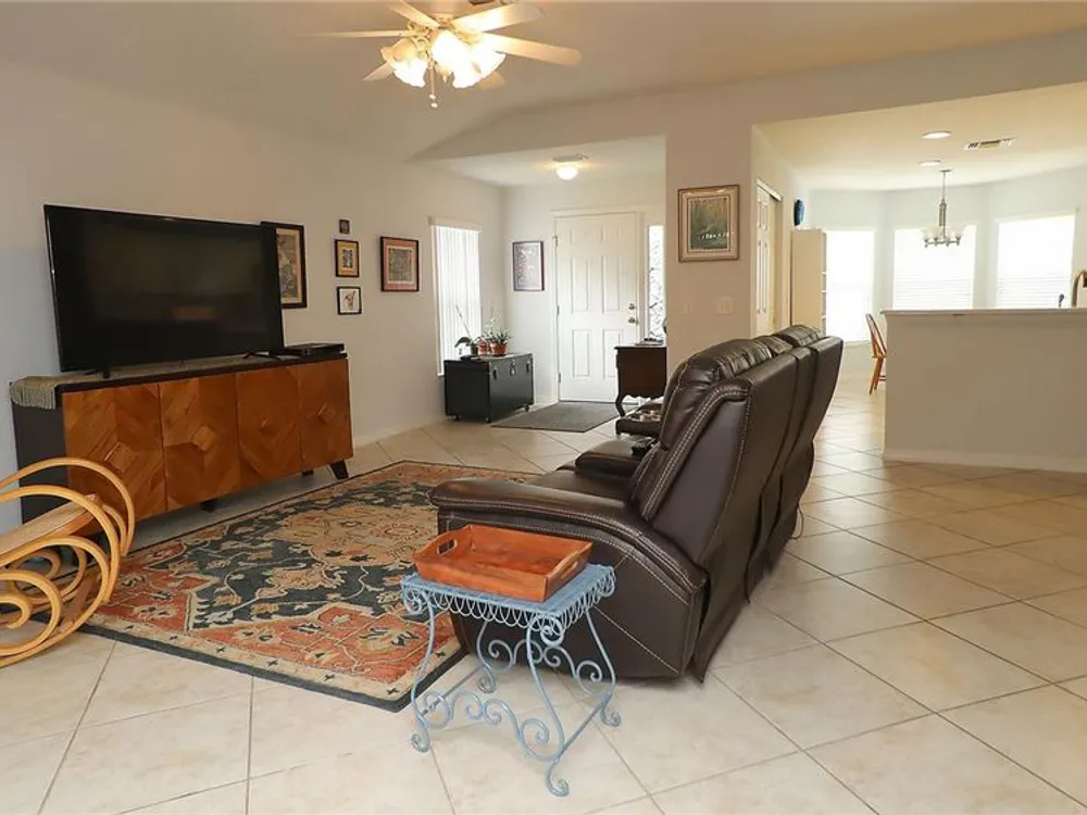 - Ceiling Fan(s), Eat-in Kitchen, In-Wall Pest Control, Kitchen/Family Room Combo, Open Floorplan, Main Level Primary, Solid Surface Counters, Walk-In Closet(s), Window Treatments