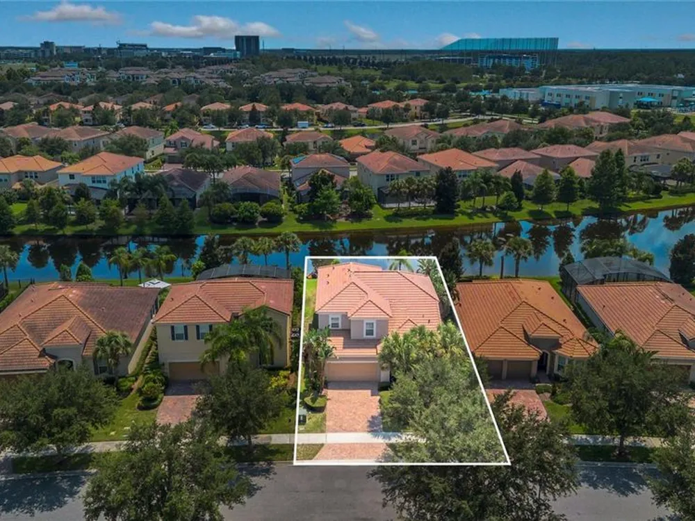Welcome to this spacious two-story single-family home in the gated, resort-style, maintenance-free community of VillageWalk at Lake Nona. This residence offers 3 bedrooms, an office/flex 4th bedroom, 2.5 bathrooms, a 2-car garage, and approximately 3,015 square feet of living space. Step outside to the covered patio, which overlooks a large backyard and tranquil pond—the perfect spot to relax or enjoy outdoor gatherings. Upon entry, you'll find a den with French doors to the left—perfect for a home office or guest room. A convenient half bath is located just off the hallway. The kitchen is thoughtfully designed with granite countertops, 42” cabinets, stainless steel appliances, and two spacious islands—all overlooking the open-concept dining and living areas, ideal for entertaining or everyday living. A cozy bonus space next to the kitchen can serve as a study or additional office. Upstairs, the primary suite enjoys serene pond views and boasts a luxurious bath with a walk-in shower, soaking tub, and dual granite vanities. A versatile loft offers space for a media room or lounge, while two additional bedrooms and a full bathroom complete the second floor. Residents enjoy an unmatched lifestyle with amenities including a 24-hour guarded gate, two swimming pools (one a heated lap pool), tennis and basketball courts, a fitness center, scenic walking and biking trails, a day spa, gas station, and more. HOA fees cover lawn care, irrigation, basic cable, internet, and full access to community facilities. Ideally located just minutes from Medical City, Orlando International Airport, the USTA National Campus, top-rated golf courses, major highways, shopping, and dining—this home offers low-maintenance living in one of Lake Nona’s most desirable communities. Don’t miss it!