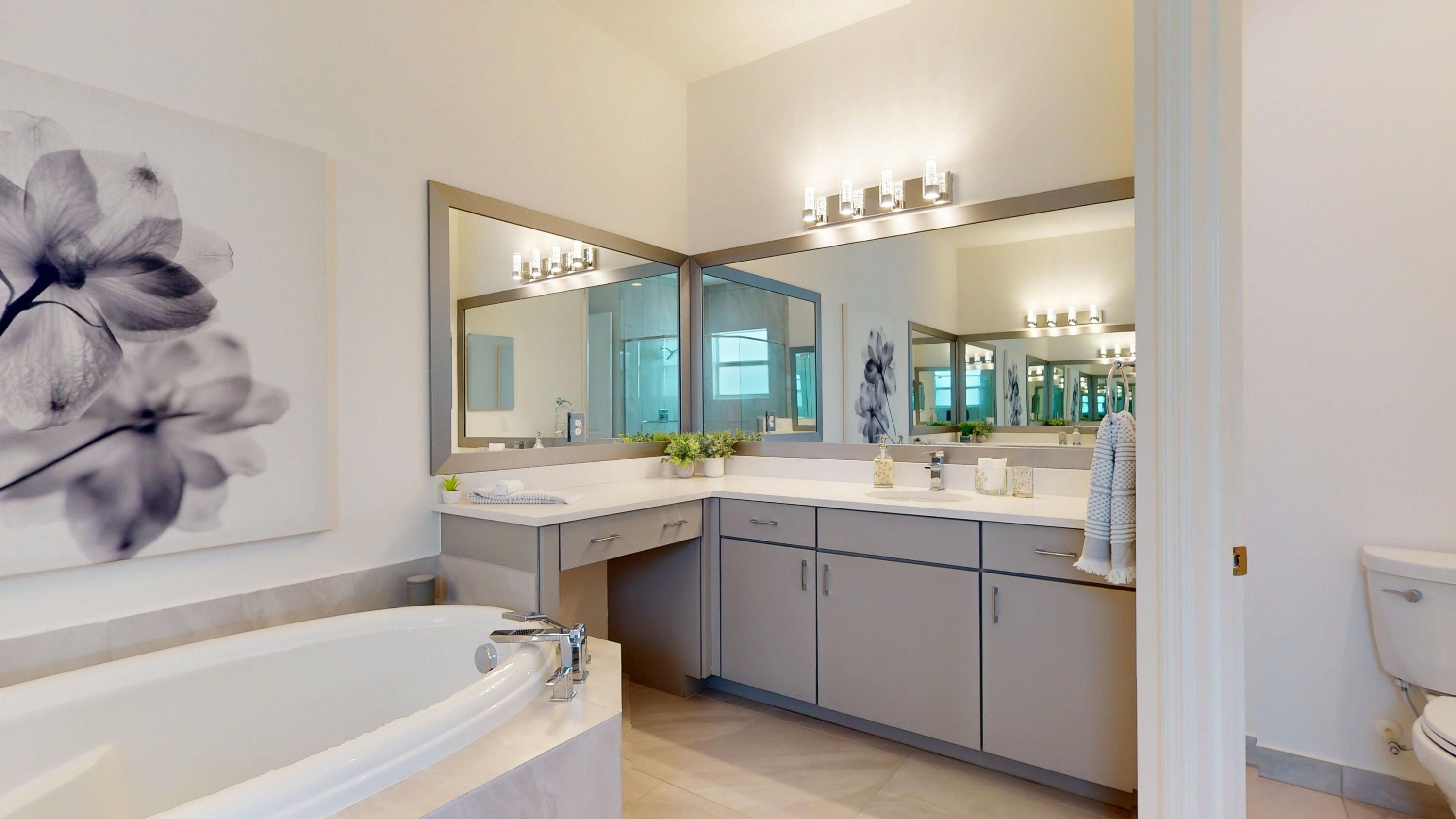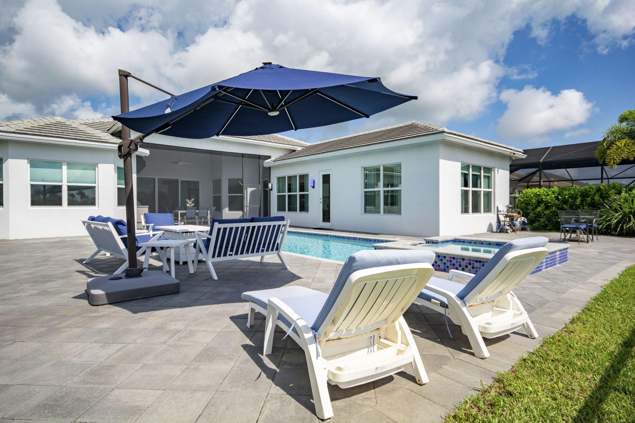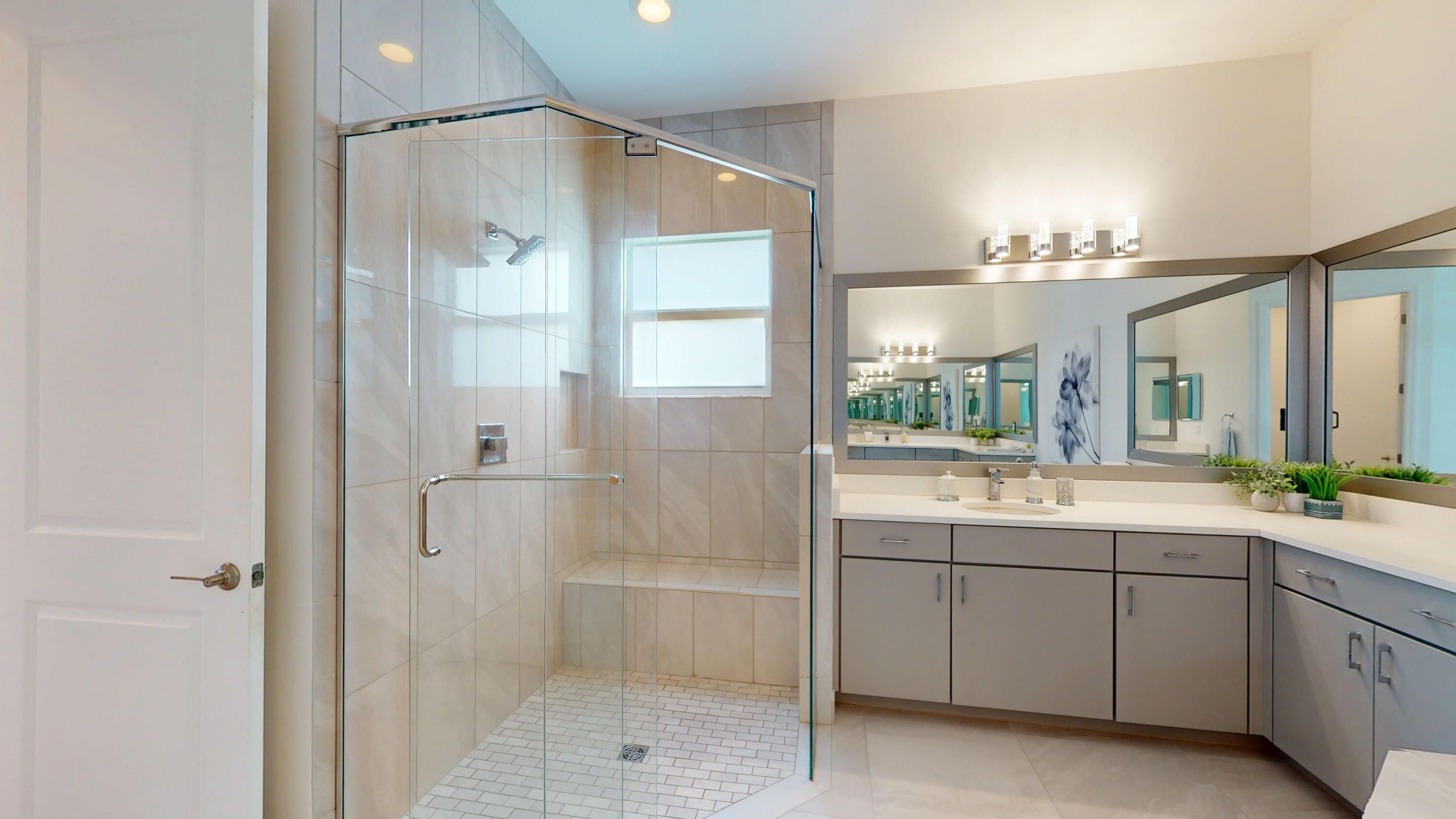 Experience luxury living in this exceptional GL Homes Charleston Grande, the largest model in Valencia Grove at Riverland, part of the Crown Collection. A premier 55+ resort-style community with low HOA fees. Over $300,000 in upgrades, this exquisite 3-bedroom, 4-bathroom home with a versatile flex room and spacious 3-car garage with a side door entry, is both an entertainer's dream and a tranquil private retreat. Enter through etched glass hurricane-rated double front doors into a thoughtfully designed interior featuring high-end WPC luxury vinyl plank flooring throughout (excluding bathrooms). The expansive open layout includes a formal dining room, a large living area with a convenient floor outlet, and a flex room with French doors—ideal as an office, library, or additional guest suite. The modern gourmet kitchen is a chef's dream, showcasing top-tier quartz countertops with a full-height backsplash, a center island and peninsula perfect for both preparation and casual dining, and GE Café stainless steel appliances including a wall oven, convection microwave, and upgraded exhaust hood. Sleek high-gloss acrylic cabinets with pull-outs are complemented by under and over cabinet lighting, a deep sink with an Insta-hot dispenser, an upgraded faucet, custom pantry shelving, and enhanced lighting with nine high hats and three pendant fixtures. Brand new whole house water filtration system with reverse osmosis. The luxurious primary suite features two oversized walk-in closets with built-ins and pocket doors, bedside sconces, and a spa-inspired ensuite bath. The bathroom includes a flush-entry frameless glass shower, dual quartz vanities, upgraded faucets, a tiled tub surround to match the floor tiles, comfort-height Kohler toilets, obscured glass windows, framed mirrors, and combination ceiling fan/light/vent fixtures. Each of the four full bathrooms feature a full shower and have been meticulously upgraded with floor-to-ceiling premium tile, soft-close cabinetry, and refined finishes. A convenient cabana bath opens to the pool area, while an additional guest bath is thoughtfully positioned at the front of the home. Step outside into your private Florida oasis. The expansive screened-in lanai includes a fully equipped summer kitchen with a grill, sink, burners, and refrigerator ideal for year-round outdoor entertaining. The eastern-facing heated saltwater pool and waterfall spa feature a relaxing sun shelf and are framed by lush clusia hedges for enhanced privacy, all overlooking a peaceful lake. An extended sealed paver driveway, front and rear security lights, and an epoxied garage floor add curb appeal and function. Additional features include a well-equipped laundry room with upgraded GE front-load washer and dryer on pedestals, a utility sink, custom closet systems, a tankless hot water heater and a bonus interior storage room that can be used as a home gym or office. The home also includes dual-zone HVAC, additional Cat 5 cabling, ceiling fans throughout, and numerous thoughtful upgrades for modern living. Riverland sets the standard for luxury active adult living with resort-style amenities that include a 34,000 sq. ft. clubhouse with three resort pools, a full-service restaurant and bar, live entertainment, and dozens of social clubs are just three blocks from this home. The 16-acre fitness campus offers a state-of-the-art gym, indoor and outdoor pools, and wellness programs, while the Arts & Culture Center invites you to explore creative pursuits such as pottery, painting, and cooking. Residents enjoy the miles-long Paseo Greenway, perfect for walking, biking, or cruising in a golf cart without crossing a single street. Coming in 2025, the Riverland Town Center will feature a two-story Publix supermarket, cafés, restaurants, and shops adding even more convenience just moments from your doorstep. Located in a 24-hour guard-gated community close to shopping, dining, and the Treasure Coast's finest beaches and attractions, this one-of-a-kind Charleston Grande home offers both sophistication and warmth. Currently, GL is only building this model in Boynton Beach at a base price of $1,628,000 and even then, you won't find the unparalleled lifestyle and amenities Riverland provides, including five miles of Greenway. Whether you're hosting guests or enjoying quiet moments by the pool, this home offers the ultimate Florida dream. Proof of Funds needed before showing.