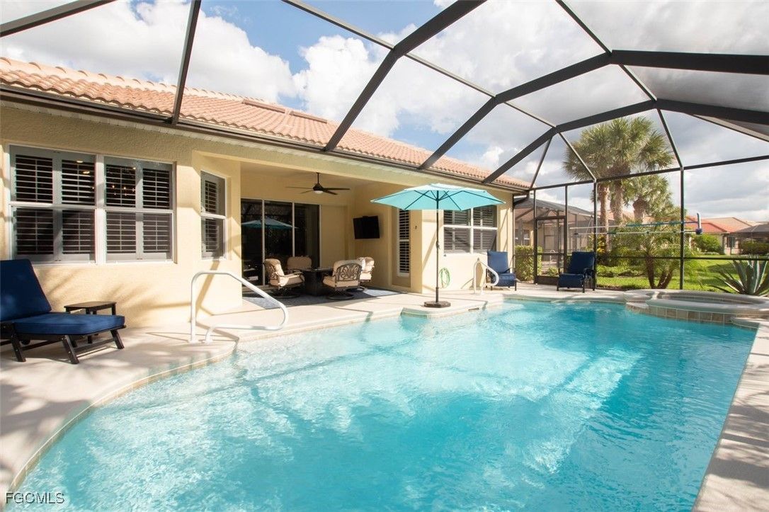 IT DOESN’T GET ANY BETTER THAN THIS TURNKEY HOME. Beautifully furnished with high-end décor and loaded with recent upgrades, this meticulously maintained pool home is sure to impress even the most discerning buyer. Major improvements completed within the past year include a NEWER ROOF, NEWER POOL HEATER, NEW POOL PUMP and BLOWER, NEWER HVAC SYSTEM, and a freshly resurfaced pool finished with PEBBLE-TEC. The kitchen features newer stainless steel appliances, a modern sink with a designer faucet, and a comfortable eat-in dining area. A recently added custom wet/wine bar enhances the home’s entertaining appeal, while both the interior and exterior have been freshly painted. Offering nearly 2,000 square feet under air, the home includes 3 bedrooms, 3 full bathrooms, and an attached 2-car garage. The screened lanai has been fully refreshed with all NEW SCREENS AND SCREWS, and the lanai deck has been recently refinished—creating a perfect outdoor retreat. Located in the sought-after Verandah community, residents enjoy an exceptional lifestyle featuring two 18-hole championship golf courses, tennis courts, pickleball, bocce ball, a state-of-the-art fitness center, a community pool, and a dog park. Outdoor enthusiasts will love kayaking on the Orange River and exploring 9+ miles of scenic walking and biking trails. Ideally situated near Downtown Fort Myers, the Caloosahatchee River, and both Fort Myers and Punta Gorda airports, this home offers the perfect blend of comfort, convenience, and resort-style living