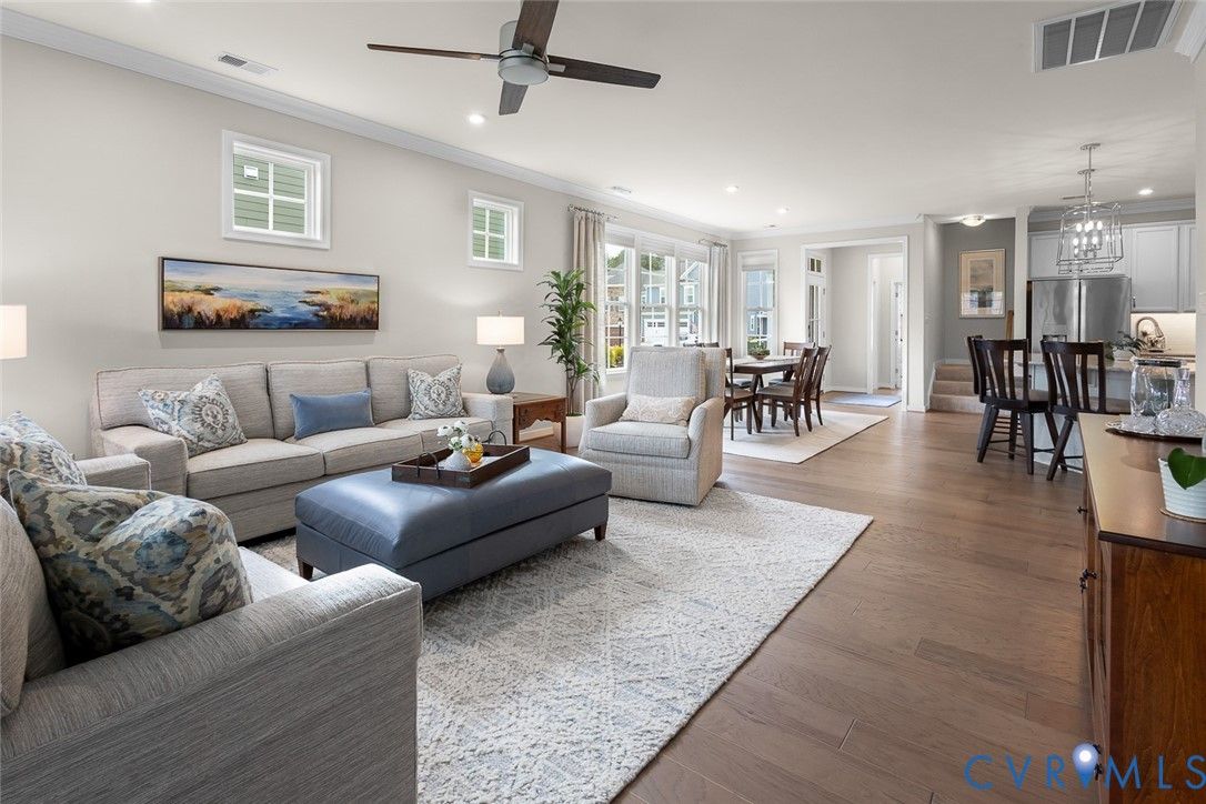 BEAUTIFUL 3 BEDROOM 3 BATH TOWNHOME IN THE 55+ COMMUNITY OF MOSAIC AT WEST CREEK IS READY FOR YOU! This home features an open floor plan with tons of natural light that is perfect for entertaining, visiting with friends or just relaxing! Step in to the foyer that leads you to the kitchen with Quartz C/TOPS, tile backsplash, oversized island with breakfast bar, GE Profile SS APPL, 42" cabinetry and a 6X5 pantry with custom organization. The kitchen opens to the dining area and the family room all with large windows that lead to the 4 season room that faces East to provide morning sunshine and afternoon shade. The primary bedroom is steps away with an en suite bath featuring a double vanity with storage, zero entry tiled shower with bench, toilet closet, linen closet and the 2 WICs (both 7X7). Bedroom 2 with ample closet space, the full hall bath (single vanity with storage,toilet, tub/shower) and the laundry room finish this level. The second level boasts bedroom 3 with ample closet space, a full hall bath (single vanity with storage, toilet, tub/shower) and a 21X19 loft area perfect for office space, library/reading space or relaxation space for a guest. The attached 2 car garage provides extra storage and coverage from the elements. A stamped concrete patio in the back yard is a great spot to enjoy the sunshine! The main living spaces have engineered HDWD and bedrooms and loft space have upgraded Shaw nylon carpet with 8lb pad (2022). Other upgrades/features include 36" vanities, extended attic space, energy saving shades, utility sink in garage. The Mosaic community has loads of amenities (covered by HOA) including 2 club houses, pool, pickleball, bocce ball, walking trails, fire pit, fitness center and yoga studio, trash p/u, roof, exterior maintenance and a dog park. DO NOT MISS THIS OPPORTUNITY TO LIVE IN THE SOUGHT AFTER MOSAIC AT WEST CREEK! SCHEDULE YOUR TOUR TODAY! (W/D and curtains do not​​‌​​​​‌​​‌‌​‌‌​​​‌‌​‌​‌​​‌‌​​​‌ convey)