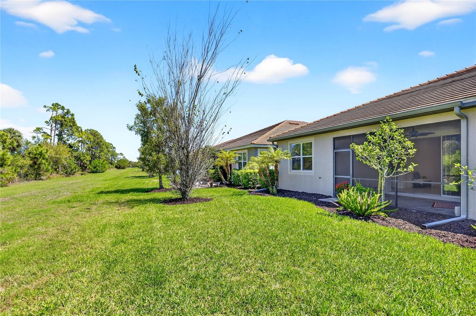 SPACIOUS VILLA WITH TRANQUIL PRESERVE VIEW IN DESIRABLE RENAISSANCE AT WELLEN PARK BUILT IN 2019. This beautifully maintained villa offers 1,687 square feet of thoughtfully designed living space with 2 bedrooms, 2 bathrooms, and a versatile den enclosed with French doors—perfect for a home office or additional guest space. Ideally situated near a quiet cul-de-sac, the location offers added privacy and minimal traffic. Step inside to discover tile flooring throughout the main living areas, complemented by 8-foot doors and 9-foot ceilings that create a bright and inviting atmosphere. The open-concept kitchen is both stylish and functional, featuring granite countertops, stainless steel refrigerator, range, dishwasher, and a newer microwave (approximately 1 year old), along with a spacious pantry. The home also features a less than one-year-old A/C system with ultraviolet light, providing enhanced air quality and energy efficiency. The split floor plan separates the secondary bedroom and bathroom, creating a private guest suite ideal for visitors. Triple pocket sliding doors open seamlessly to the screened lanai, where you can relax and enjoy the serene preserve and Florida’s natural beauty—perfect for both quiet mornings and evening relaxation. The home is located in Flood Zone X (shaded), offering additional confidence and peace of mind. Located within the highly sought-after Renaissance at Wellen Park, residents enjoy a vibrant, resort-style lifestyle with amenities including a clubhouse, pool and spa, fitness center, pickleball, tennis, bocce, and a full calendar of social activities. Just minutes from Downtown Wellen Park, shopping, dining, and the beautiful Gulf Coast beaches, this home offers the perfect blend of luxury, comfort, and convenience.