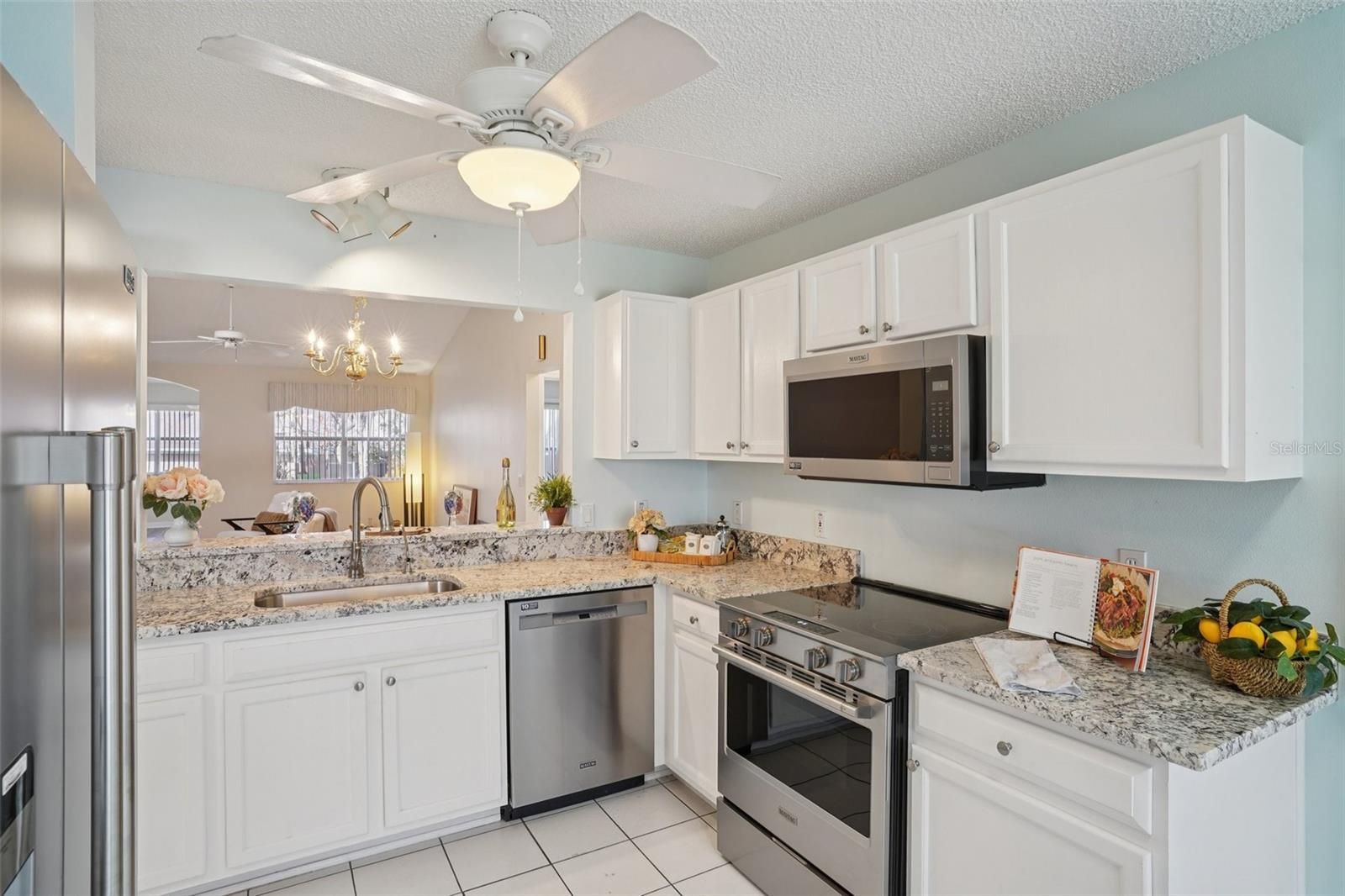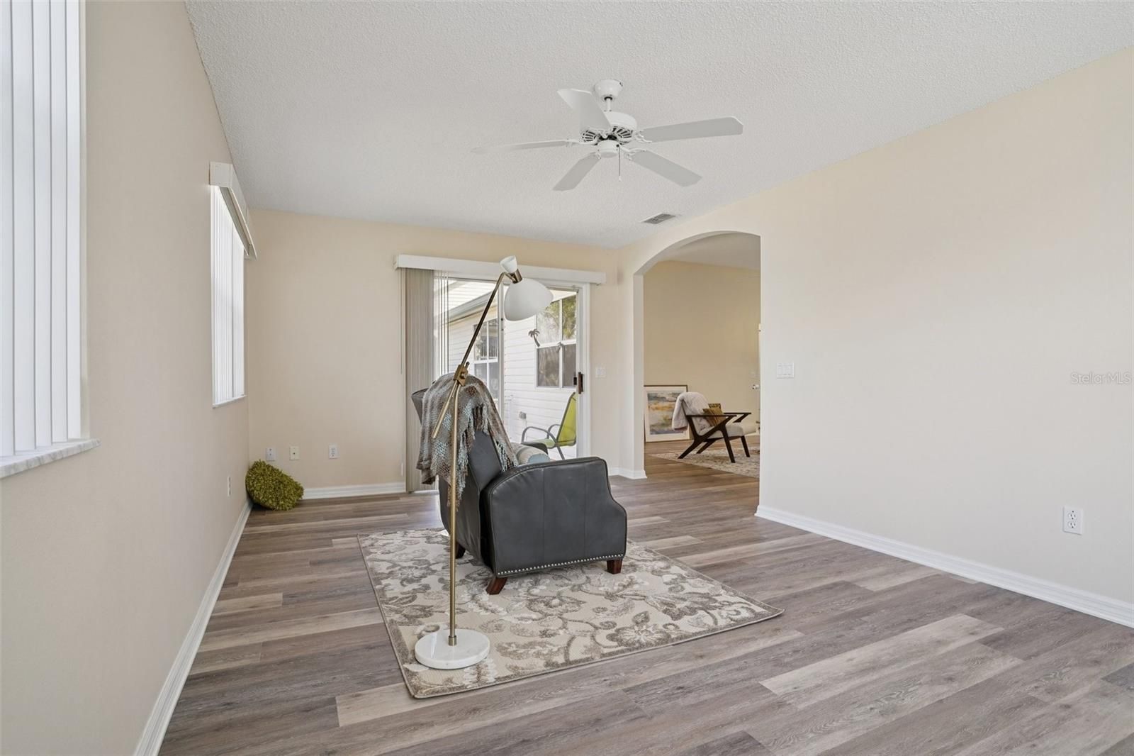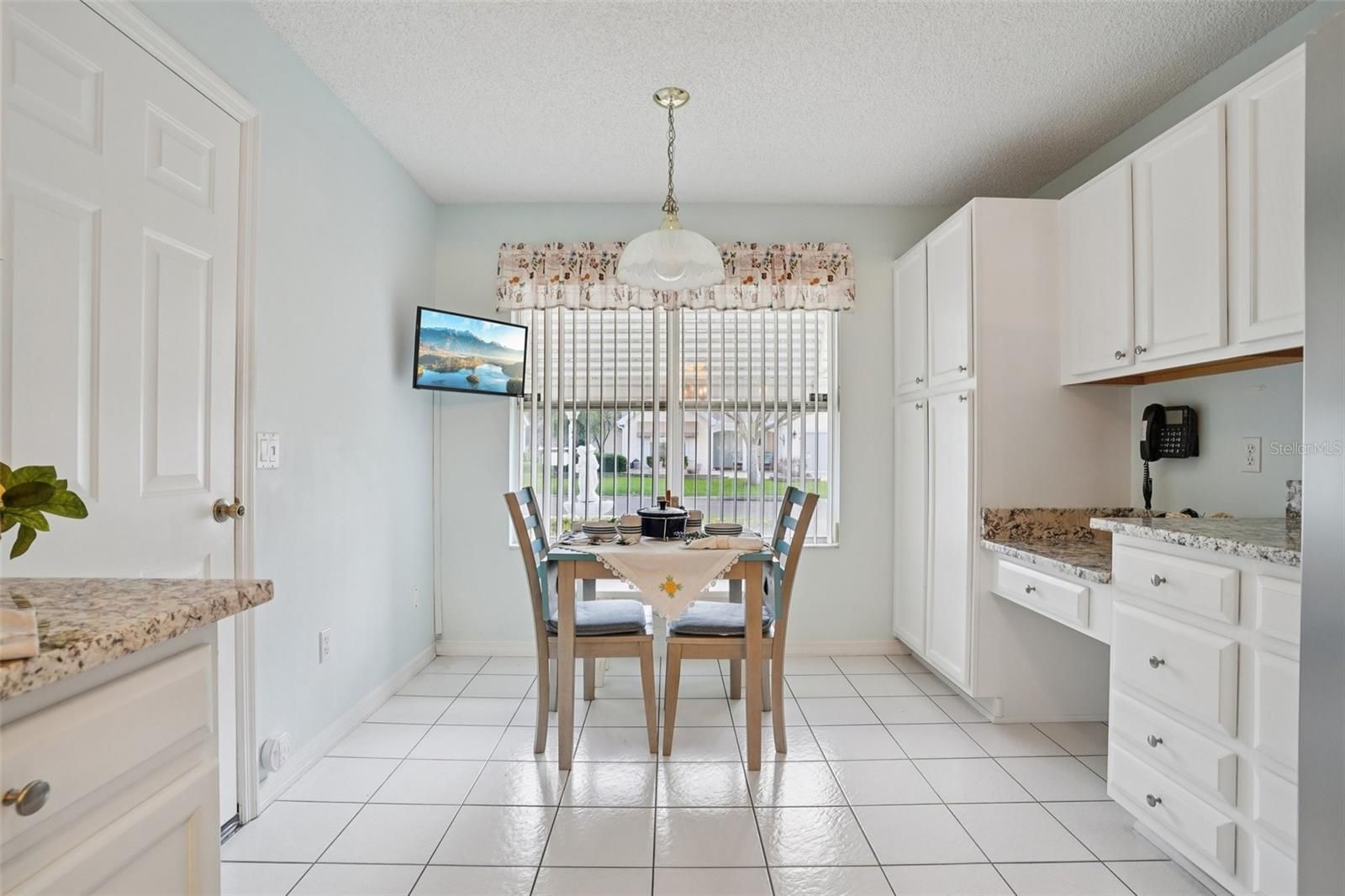 Welcome to this BEAUTIFULLY UPDATED 2-bedroom, 2-bath home located at 1204 Barcelona Drive in The Villages, FL offering 1562 square feet of comfortable living space in the desirable, centrally located VILLAGE of HACIENDA EAST — with the BOND PAID and a NEW ROOF installed 03/04/ 2026! Step inside to discover brand-new LUXURY VINYL PLANK flooring throughout, creating a modern and cohesive look that complements the home’s OPEN SPLIT FLOOR PLAN. The layout provides both privacy and functionality, ideal for entertaining or everyday living. The fully updated kitchen features NEW stainless steel APPLIANCES, NEW GRANITE COUNTERTOPS, a BREAKFAST NOOK for casual dining, BUILT-IN DESK area, and a CLOSET PANTRY for ample storage. A large open pass-through to the living area serves as a generous BREAKFAST BAR maintaining separation of space while keeping the home light and connected. The expansive COMBINATION LIVING/DINING Room is filled with natural light enhanced by the HIGH, ANGLED CEILING featuring a SOLAR TUBE. The bonus FLORIDA ROOM adds to the bright, spacious concept as it opens to a RAISED PATIO featuring a retractable awning and a painted concrete floor that showcases the same STAMPED FLAGSTONE DESIGN featured on the steps and the driveway. The primary suite includes a walk-in closet and ensuite bath with DUAL VANITIES and a large shower. The guest bedroom features a queen-size MURPHY BED, providing flexibility for visitors or use as an office or hobby room. Live video showings provided for out of town buyers. This charming move in ready home won't be on the market long. Act Now!