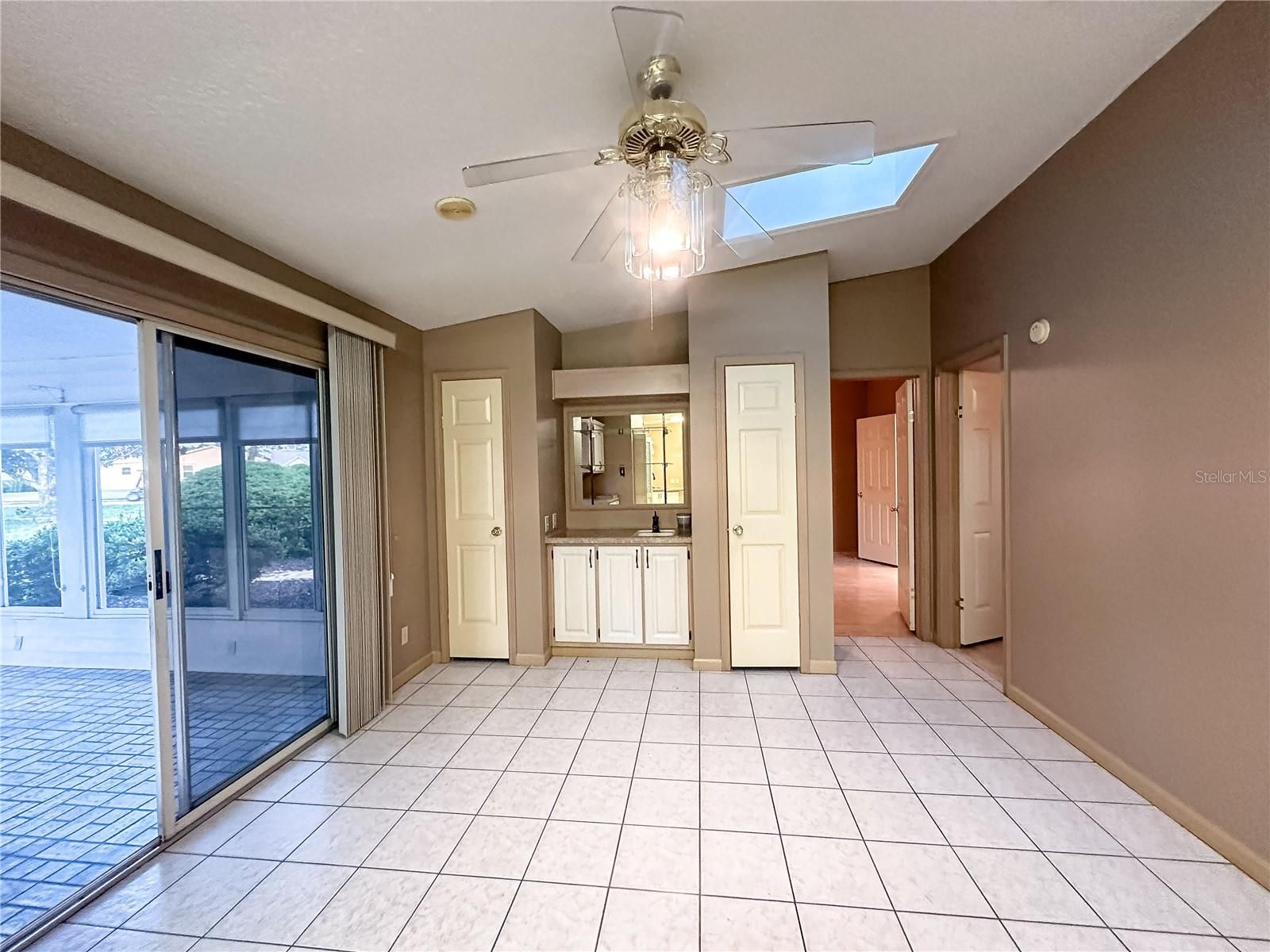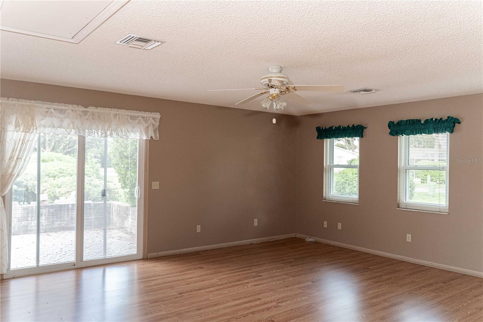 Welcome home to this site-built brick / concrete home nestled in the Village of Del Mar, close proximity to Spanish Springs and Lake-Sumter Landing. AMAZING NEW LOWER PRICE !! This uniquely designed cul-de-sac home has space for all your entertaining and activities with almost 2200 square feet of living space and an additional enclosed lanai and several outdoor areas to enjoy. This home has plenty of storage including several storage closets and pantry in the kitchen. A central cooking station highlights the kitchen. Enjoy music and radio on the surround sound stereo system. A wet bar adjacent to the dining room allows for great entertaining spot - right next to the enclosed lanai to enjoy the outdoor space. This lot is oversized ( over 1/4 acre) and has plenty of room to add on or enhance with a pool/birdcage. The huge primary bedroom has a retreat-style entry so you have your own private TV/sitting/crafting space along with 3 closets - one being equipped with a built-in desk system. Skylights adorn the home providing lots of natural light. The second bedroom has a large walk-in closet and its bathroom is ensuite, yet accessible to your guests as well. Laundry room is separate and has Maytag washer & dryer with tons of storage and workshop space and also an outdoor-style utility sink. You'll love the newer tankless water heater for efficiency. Wood-look laminate flooring and tile in the kitchen and baths along with a neutral color palette provide lots of opportunities to make this special home your own. NO BOND. Roof replaced in 2021. HVAC 2020. This location is 5-10 minutes close to Spanish Springs and Lake-Sumter Landing town centers - and minutes from numerous shopping, dining and health care opportunities.