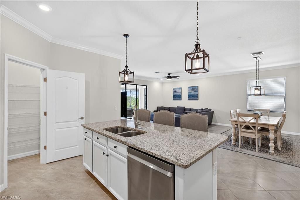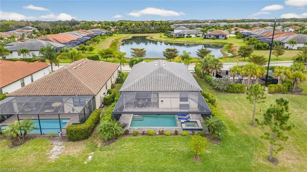 Beautiful furnished custom pool home! This super popular Trevi model features a custom built heated saltwater pool encased in a picture window screened-in lanai. Your new outdoor space will provide the ultimate Florida lifestyle. The open floorpan allows for modern living and with 4-bedrooms, you'll have flexible space for a den, office or workout room if you choose. Porcelain floor tiles throughout the main living spaces. The kitchen features granite countertops, a stainless-steel appliance suite with new dishwasher, a walk-in pantry and tiled backsplash. There is plenty of cabinet space and the owner upgraded Shelf Genie system makes organization a breeze. The large master bedroom was just re-carpeted and features an ensuite with a large walk-in shower and double sinks in the vanity, which is a must have for anyone. Some of the many owner upgrades include Storm Smart motorized screens for securing the lanai, widened paver driveway, screened in front entryway, auto-switch light controls for garage and laundry room, well appointed lighting fixtures and fans (6), Ring security system with cameras, water softener and conditioner, new garbage disposal, and more. All furnishings and decor, as well as 4 televisions, are all included! Live everyday like you're on vacation in the amenity rich community of Arborwood Preserve where you'll enjoy a large resort style pool complete with waterfall and grotto. The town center also offers a pool bar/restaurant, complimentary coffee room, fitness center, yoga studio, two card rooms, theater and art studio. Lighted bocce ball, pickle ball and clay tennis courts will keep you active. You'll live everyday like you're on vacation! Close proximity to RSW Airport, spring training parks, dining, shopping and entertainment. Come see this home in person to appreciate all it has to offer.