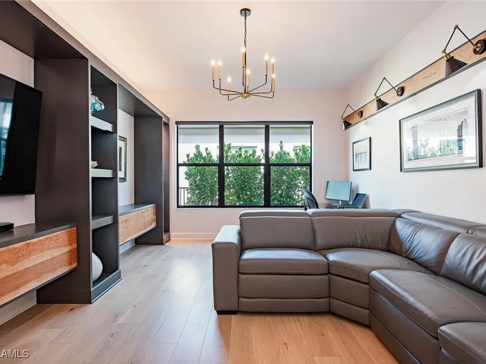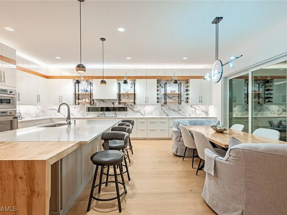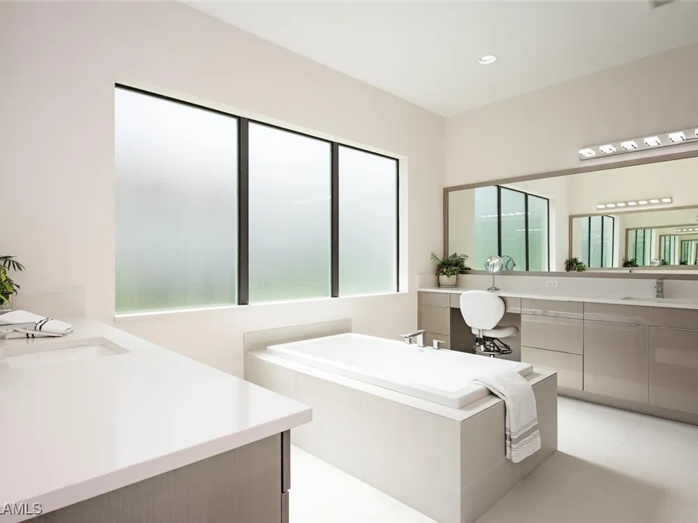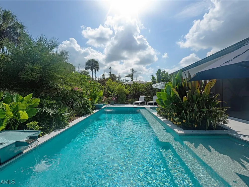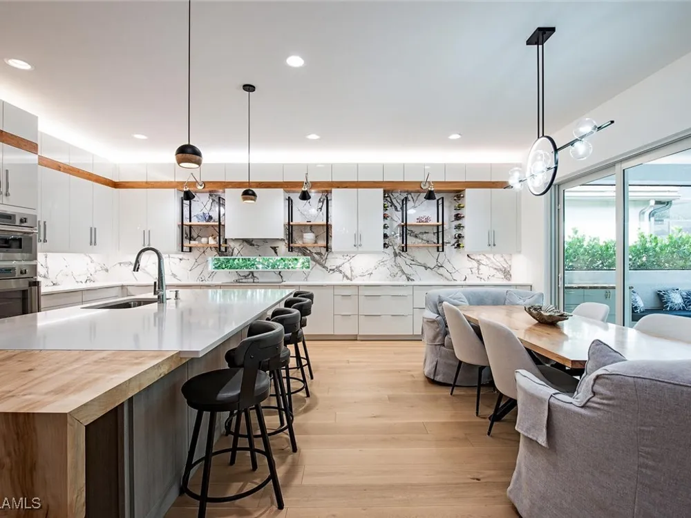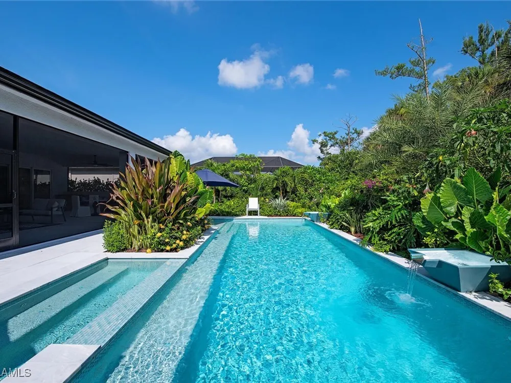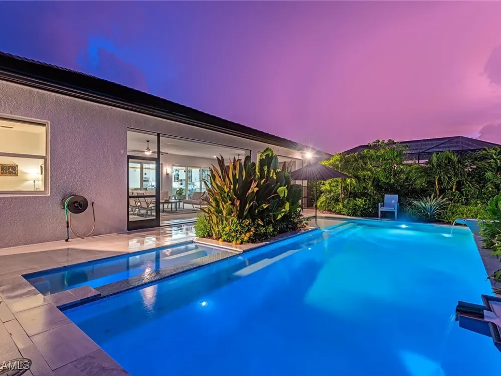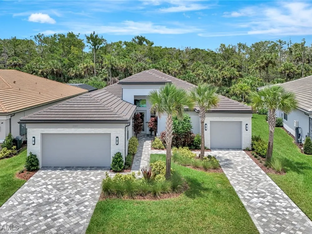 Welcome to one of the most thoughtfully crafted homes in Valencia Trails. Privately nestled along a tranquil preserve, surrounded by lush tropical landscaping, this spectacular Captiva model is a masterpiece, blending modern elegance with peaceful seclusion. Step through the glass front doors into a soaring foyer featuring an intricate marble inlay set seamlessly into the surrounding French white oak hardwood flooring that flows throughout the main living areas. At the heart of the home, a chef’s dream kitchen awaits; designed to impress & equipped to perform. Sleek Eurocraft Reflekt acrylic cabinetry, expanded by 9 feet into the dining space, has soft-close drawers, multiple custom cabinet inserts & pull-outs, and ambient cabinet lighting. A striking porcelain backsplash complements the quartz countertops, while an oversized island offers generous prep space, additional storage & effortless flow for entertaining. The Thermador Professional Series appliance suite includes a side-open convection oven, freedom induction cooktop, speed oven-microwave, Sapphire dishwasher & a column refrigerator. Sub-Zero beverage & freezer drawers and a custom vented hood also deliver professional-grade performance. The great room showcases a striking custom feature wall & is framed by views of the lush preserve through impact-rated sliding glass doors. Outside, the thoughtfully graded lanai has a step-free surface for enhanced safety & the White Ice marble pavers offer an elevated, coastal aesthetic. A Kings Starboard cabinet system adds storage & functionality. The saltwater pool is a standout—35 feet in length with an integrated spa, a sundeck & elegant water bowls for a serene, resort-like experience. Heated by gas, the pool & spa are ready for year-round enjoyment. The extended covered lanai is framed by an invisible screen enclosure and the tranquil preserve view makes this outdoor oasis very private & picturesque. The primary suite offers a spa-inspired bath with an oversized rain shower, soaking tub, dual vanities with Eurocraft cabinetry & 3 generously sized custom walk-in closets. There are 3 additional en-suite guest bedrooms, one featuring built-in bunk beds. An expansive den with a custom built-in entertainment wall provides flexible space for a home office, media room, or additional living area. Fine features include solid core doors, hurricane impact windows & doors, extensive millwork & shiplap, curated lighting accents, epoxy garage flooring, tankless water heater, fenced dog-run & a custom finished laundry space with GE pedestaled washer/dryer. Valencia Trails is more than a community—it's a lifestyle. This exclusive 55+ neighborhood features world-class amenities, including a 43,000 SF clubhouse with gourmet restaurant, poolside bar, resort-style pools, fitness center, pickleball, tennis, bocce, yoga, art studio, cooking classes, spa, dog park & a vibrant social calendar. This is your invitation to live where everyday feels like a resort getaway.