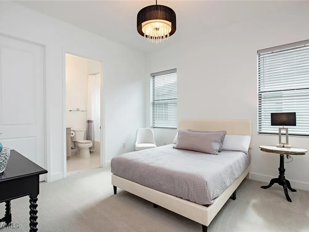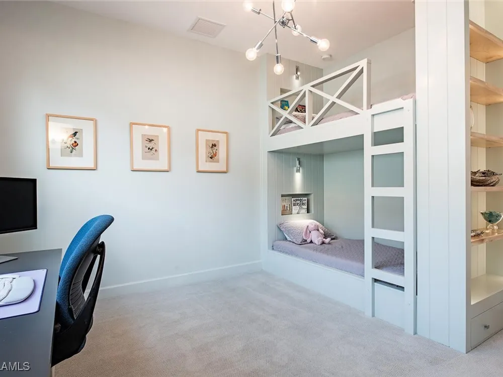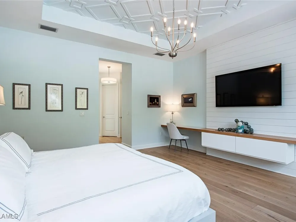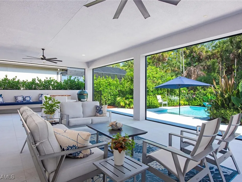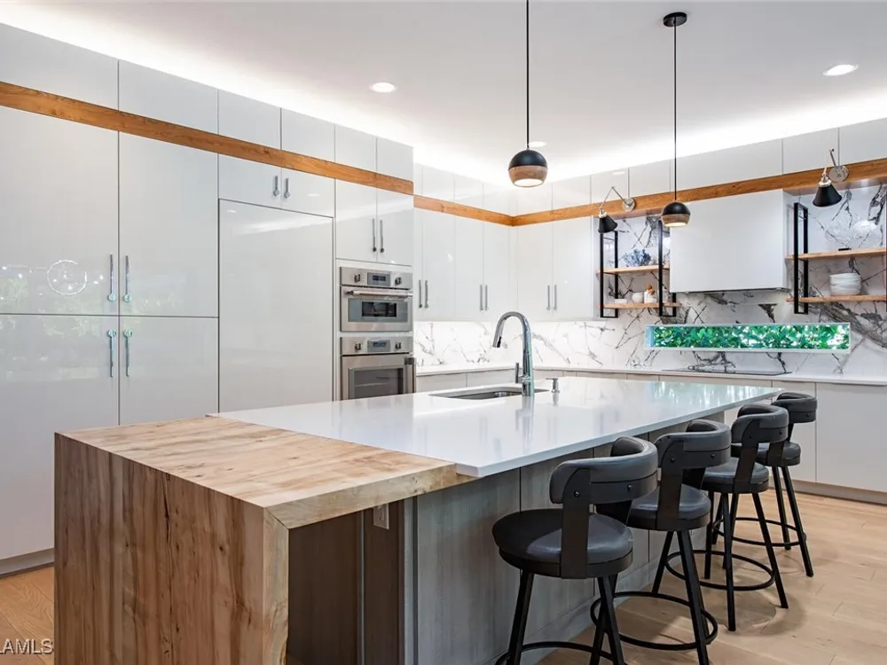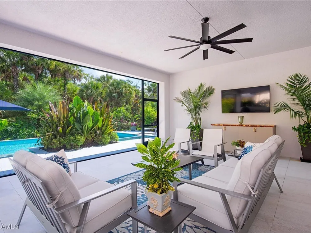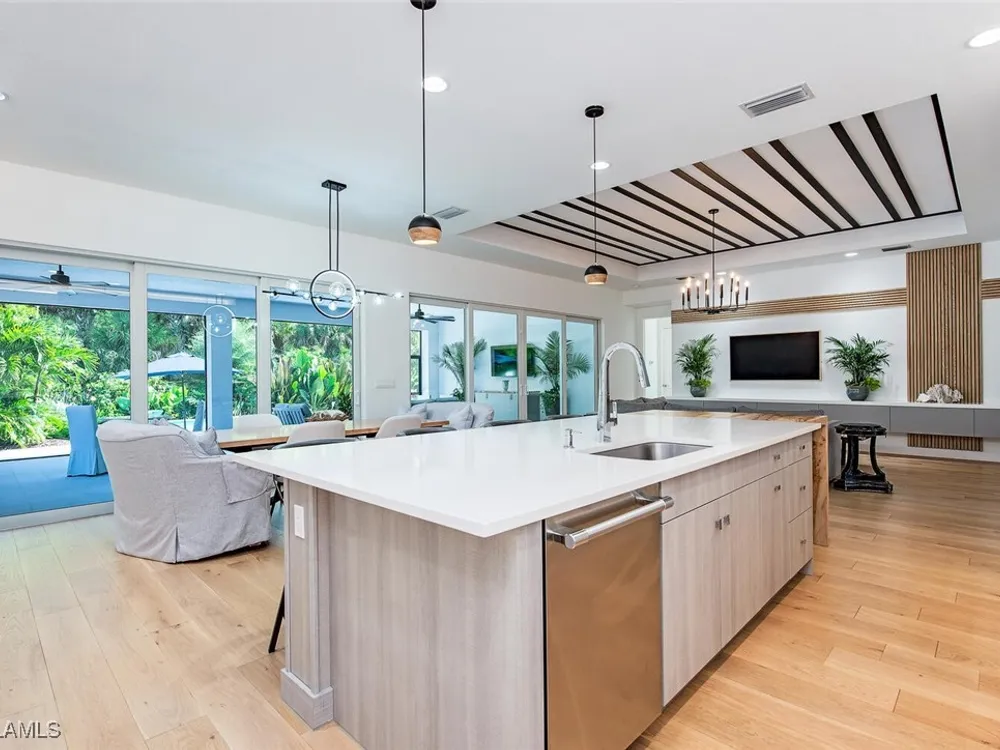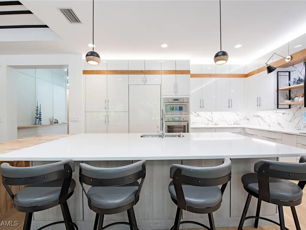 Welcome to one of the most thoughtfully crafted homes in Valencia Trails. Privately nestled along a tranquil preserve, surrounded by lush tropical landscaping, this spectacular Captiva model is a masterpiece, blending modern elegance with peaceful seclusion. Step through the glass front doors into a soaring foyer featuring an intricate marble inlay set seamlessly into the surrounding French white oak hardwood flooring that flows throughout the main living areas. At the heart of the home, a chef’s dream kitchen awaits; designed to impress & equipped to perform. Sleek Eurocraft Reflekt acrylic cabinetry, expanded by 9 feet into the dining space, has soft-close drawers, multiple custom cabinet inserts & pull-outs, and ambient cabinet lighting. A striking porcelain backsplash complements the quartz countertops, while an oversized island offers generous prep space, additional storage & effortless flow for entertaining. The Thermador Professional Series appliance suite includes a side-open convection oven, freedom induction cooktop, speed oven-microwave, Sapphire dishwasher & a column refrigerator. Sub-Zero beverage & freezer drawers and a custom vented hood also deliver professional-grade performance. The great room showcases a striking custom feature wall & is framed by views of the lush preserve through impact-rated sliding glass doors. Outside, the thoughtfully graded lanai has a step-free surface for enhanced safety & the White Ice marble pavers offer an elevated, coastal aesthetic. A Kings Starboard cabinet system adds storage & functionality. The saltwater pool is a standout—35 feet in length with an integrated spa, a sundeck & elegant water bowls for a serene, resort-like experience. Heated by gas, the pool & spa are ready for year-round enjoyment. The extended covered lanai is framed by an invisible screen enclosure and the tranquil preserve view makes this outdoor oasis very private & picturesque. The primary suite offers a spa-inspired bath with an oversized rain shower, soaking tub, dual vanities with Eurocraft cabinetry & 3 generously sized custom walk-in closets. There are 3 additional en-suite guest bedrooms, one featuring built-in bunk beds. An expansive den with a custom built-in entertainment wall provides flexible space for a home office, media room, or additional living area. Fine features include solid core doors, hurricane impact windows & doors, extensive millwork & shiplap, curated lighting accents, epoxy garage flooring, tankless water heater, fenced dog-run & a custom finished laundry space with GE pedestaled washer/dryer. Valencia Trails is more than a community—it's a lifestyle. This exclusive 55+ neighborhood features world-class amenities, including a 43,000 SF clubhouse with gourmet restaurant, poolside bar, resort-style pools, fitness center, pickleball, tennis, bocce, yoga, art studio, cooking classes, spa, dog park & a vibrant social calendar. This is your invitation to live where everyday feels like a resort getaway.